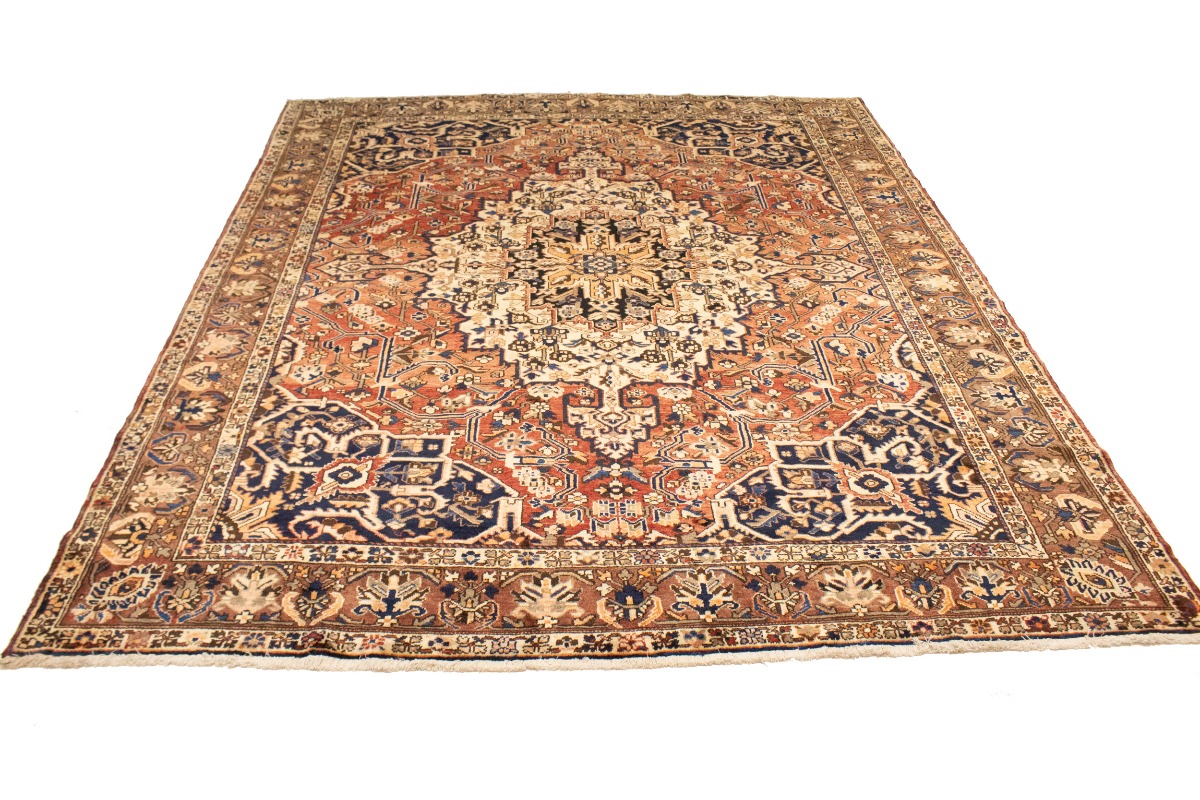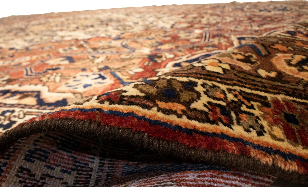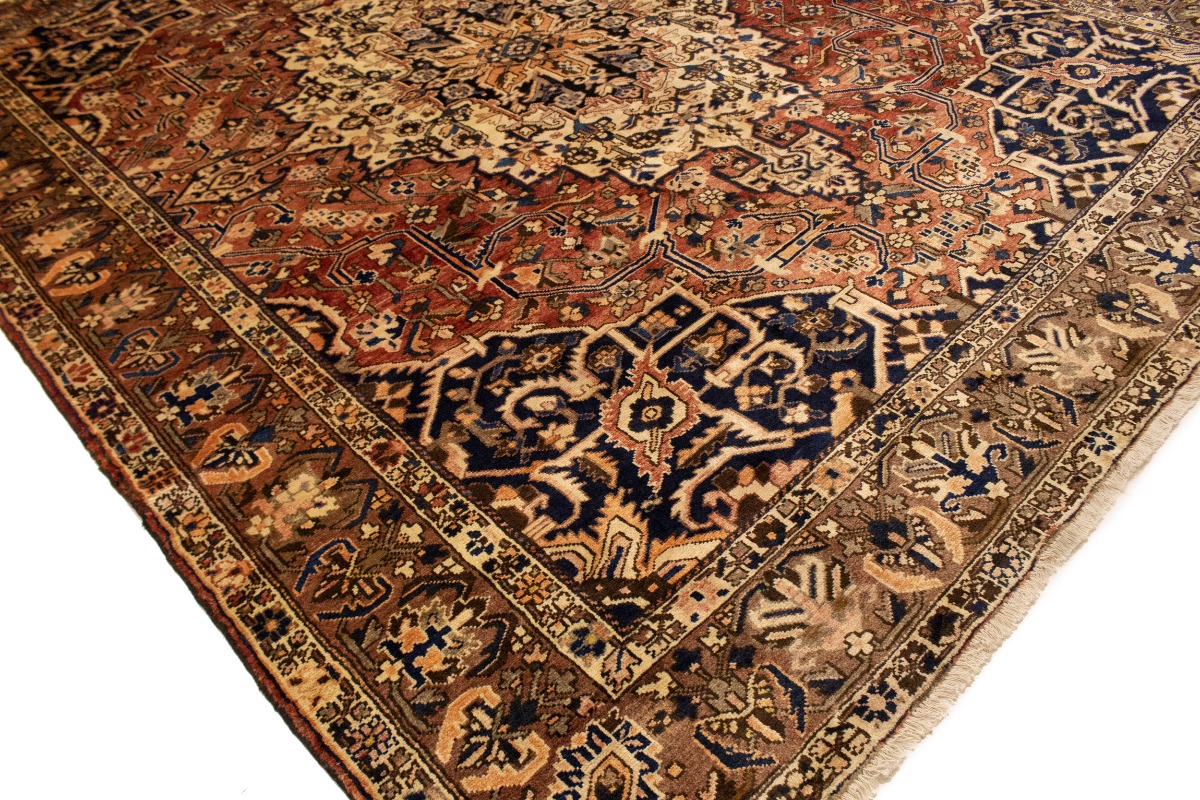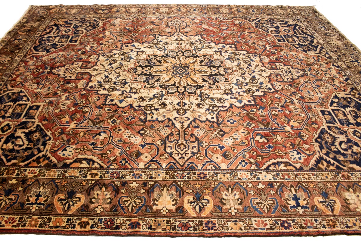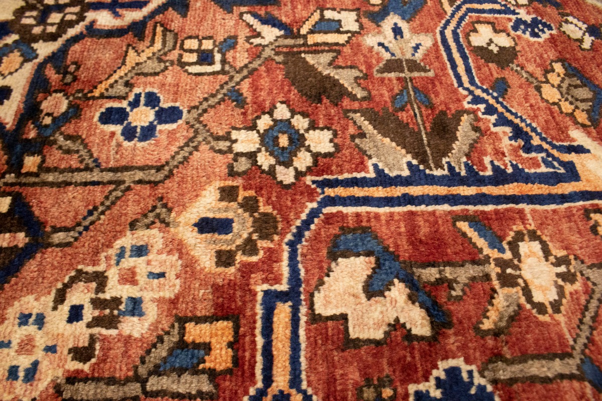 This authentic 10'6X12'7 brick red vintage Persian rug was finely knotted by the hands of weavers influenced by a variety of amazing artistic designs, to recreate the aged look of the exceptional piece with a richness of color and embellished background field. What set this tribal Oriental area rug from the others are the material and dye used (wool pile and cotton foundation), knot count, antique designs, fantastic grades, and its regional historical connection: it has deep roots, from the story of the people who produced it to the meaning of the symbols and colors displayed across its canvas that have been praised for centuries. This home décor carpet will be completely cozy and inviting that never will go out of style! Also, this Oriental rug would be among your most valuable treasures, it is a great investment that increase in value over time, and it will last a lifetime because was woven with high-quality, all-natural wool; it won’t rip, tear, or shed. Eco-friendly, opulent yet affordable; this Persian rug will give you an extra pop of character to help define your home environment with luxury and warmth that will capture the eyes and attention of your audience (homeowners, designers, decorators, family and friends). EB-5588