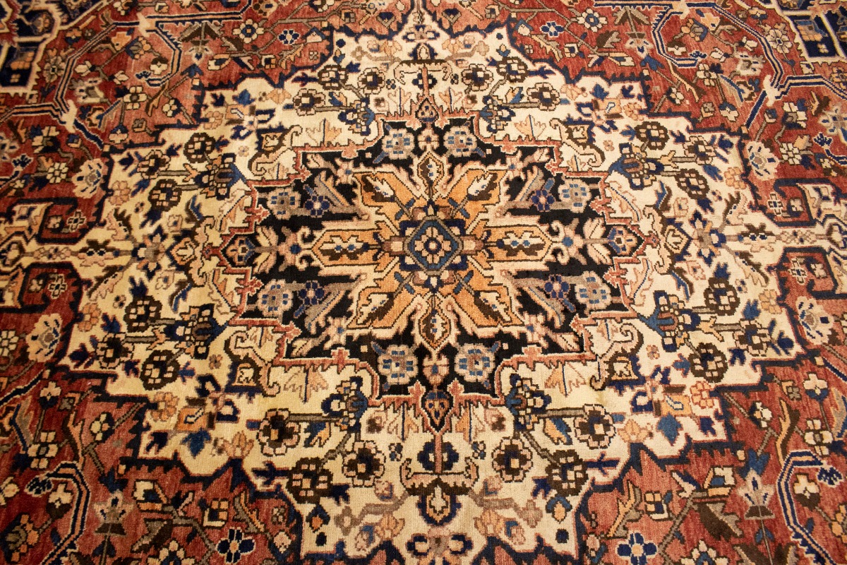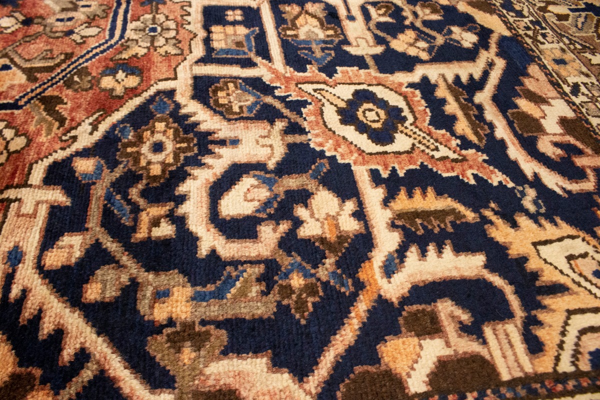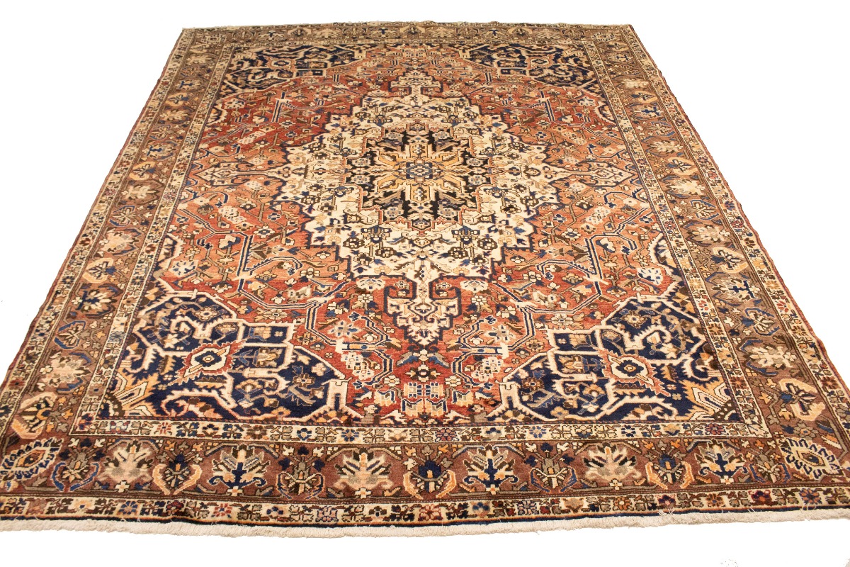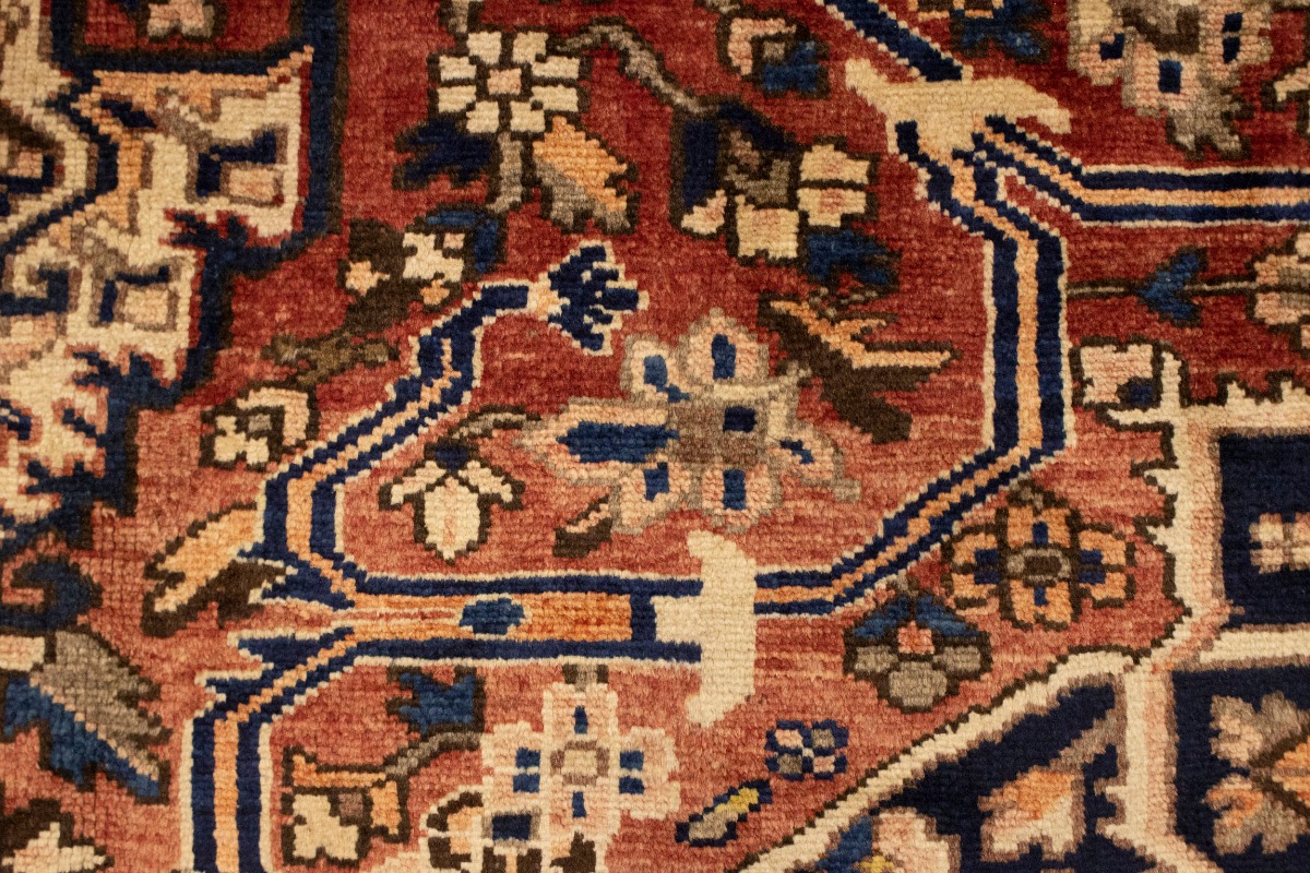 This authentic 10'6X12'7 brick red vintage Persian rug was finely knotted by the hands of weavers influenced by a variety of amazing artistic designs, to recreate the aged look of the exceptional piece with a richness of color and embellished background field. What set this tribal Oriental area rug from the others are the material and dye used (wool pile and cotton foundation), knot count, antique designs, fantastic grades, and its regional historical connection: it has deep roots, from the story of the people who produced it to the meaning of the symbols and colors displayed across its canvas that have been praised for centuries. This home décor carpet will be completely cozy and inviting that never will go out of style! Also, this Oriental rug would be among your most valuable treasures, it is a great investment that increase in value over time, and it will last a lifetime because was woven with high-quality, all-natural wool; it won’t rip, tear, or shed. Eco-friendly, opulent yet affordable; this Persian rug will give you an extra pop of character to help define your home environment with luxury and warmth that will capture the eyes and attention of your audience (homeowners, designers, decorators, family and friends). EB-5588