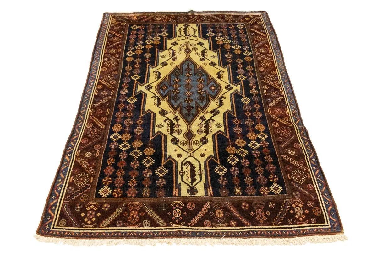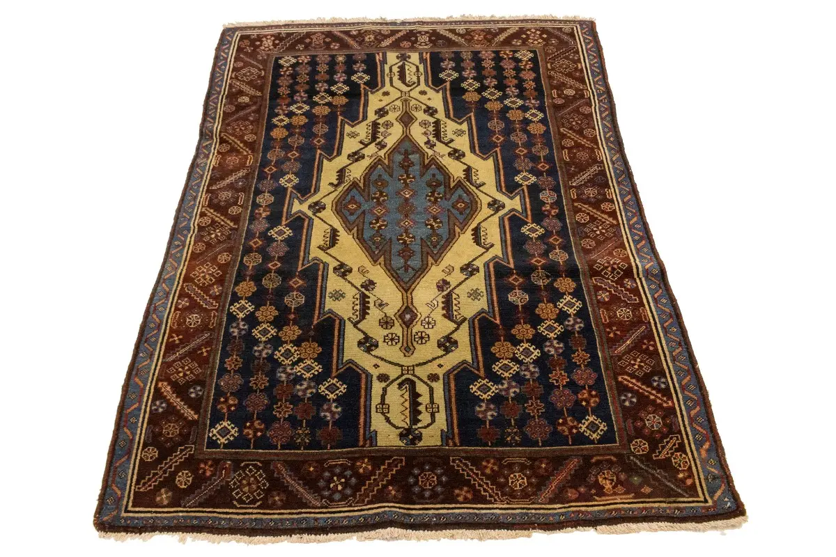 Antique Cream Tribal 4X6 Mazlaghan Persian Rug