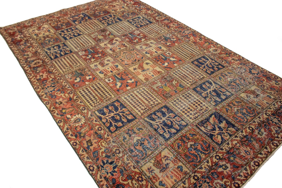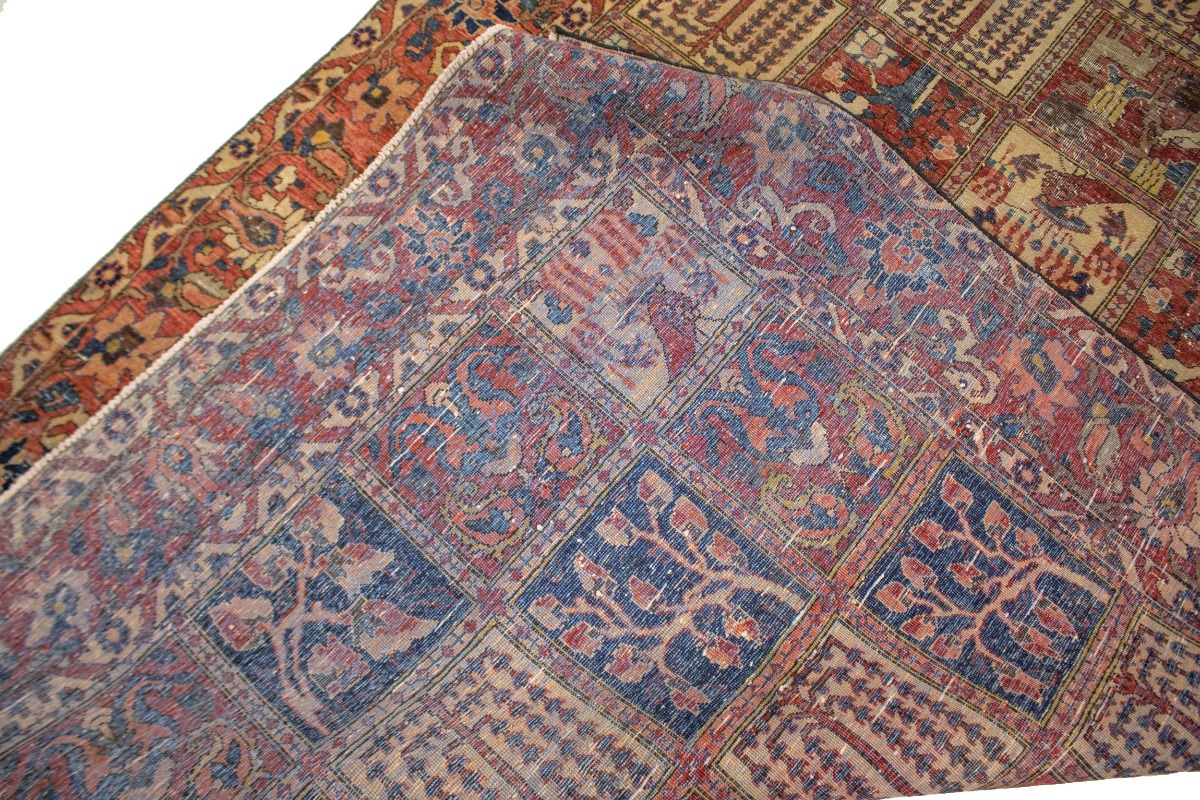 Handmade antique 7X11 red Persian rug made with vegetable dyes (fine wool pile and cotton foundation), superior knot count, and appealing ancient designs. This Oriental rug never will go out of style and would be among your most valuable treasures.