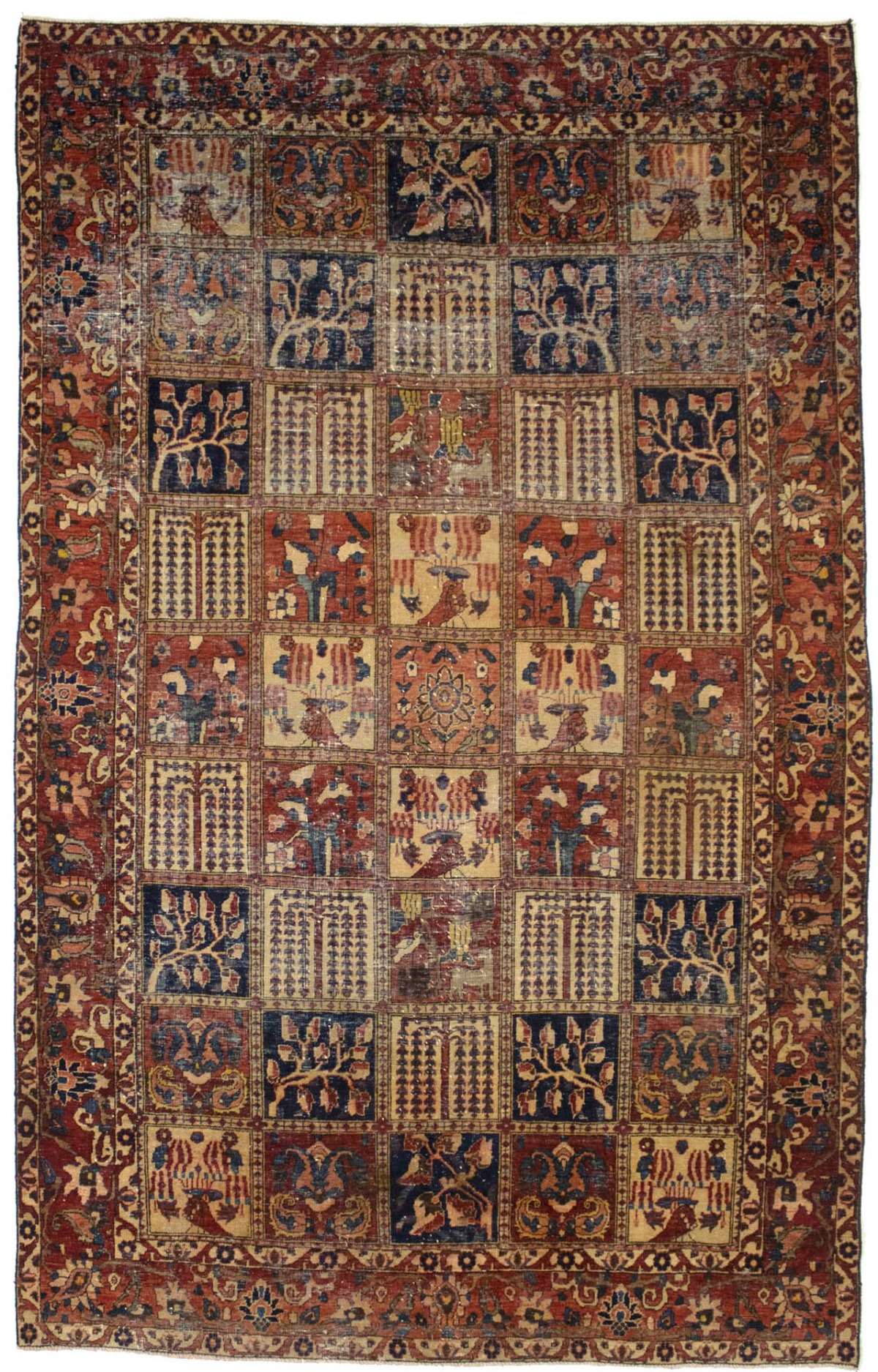 Antique Distressed Muted Tribal 7X11 Bakhtiari Persian Rug