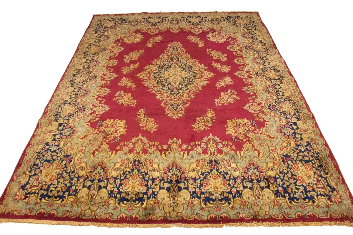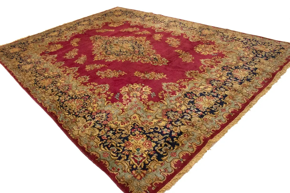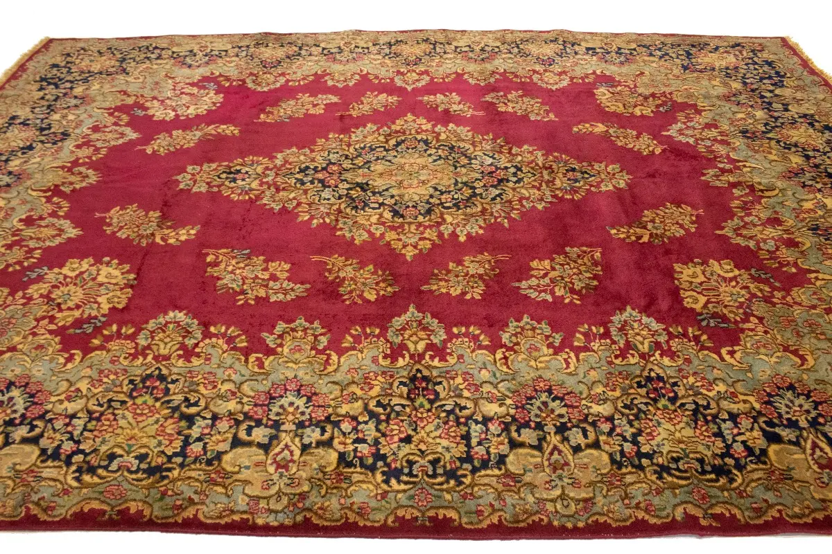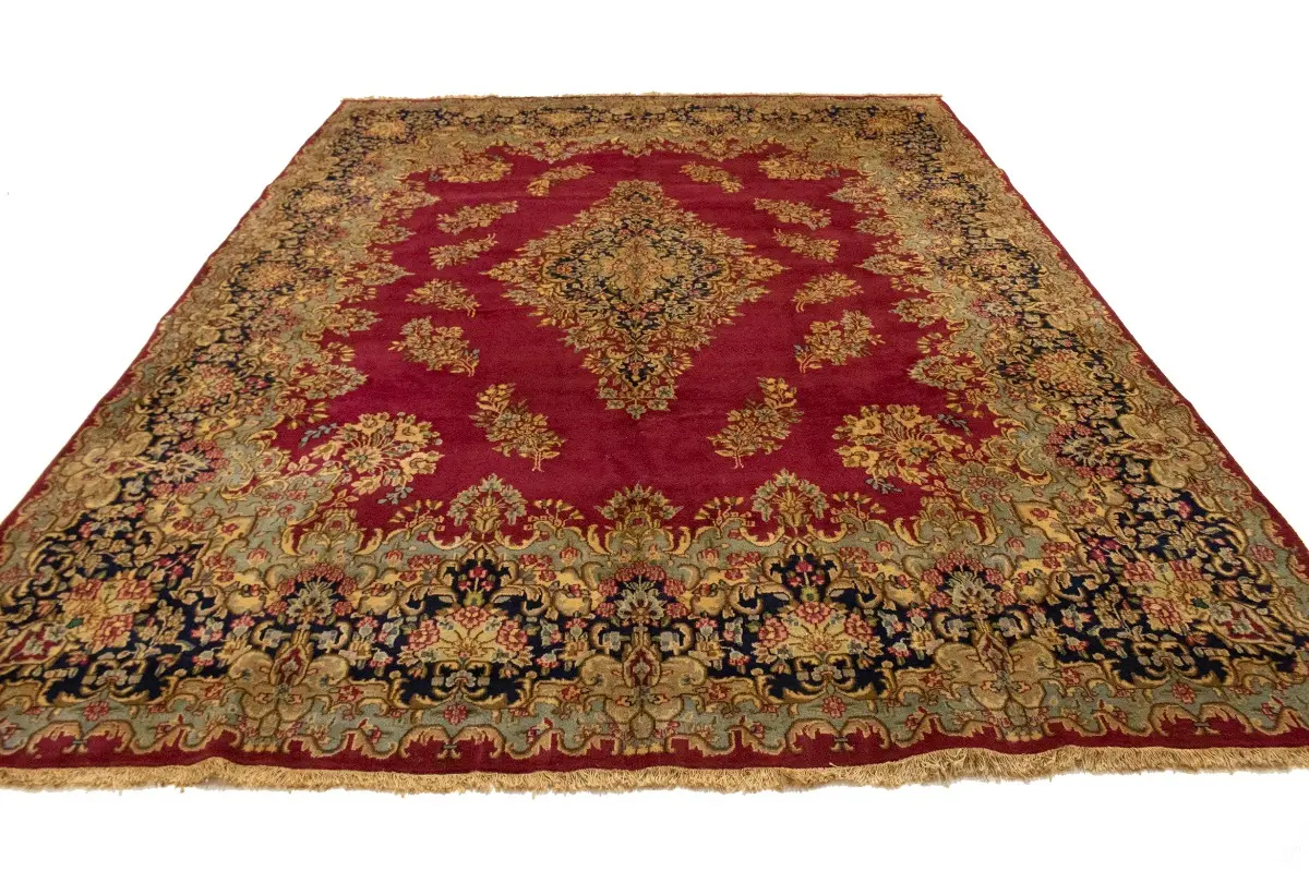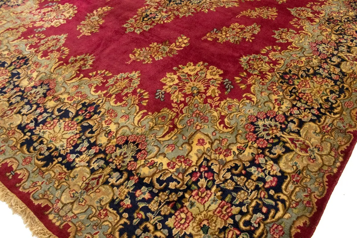 Antique Fuchsia Red Floral Classic 10X13 Kerman Persian Rug