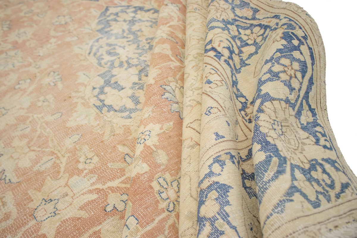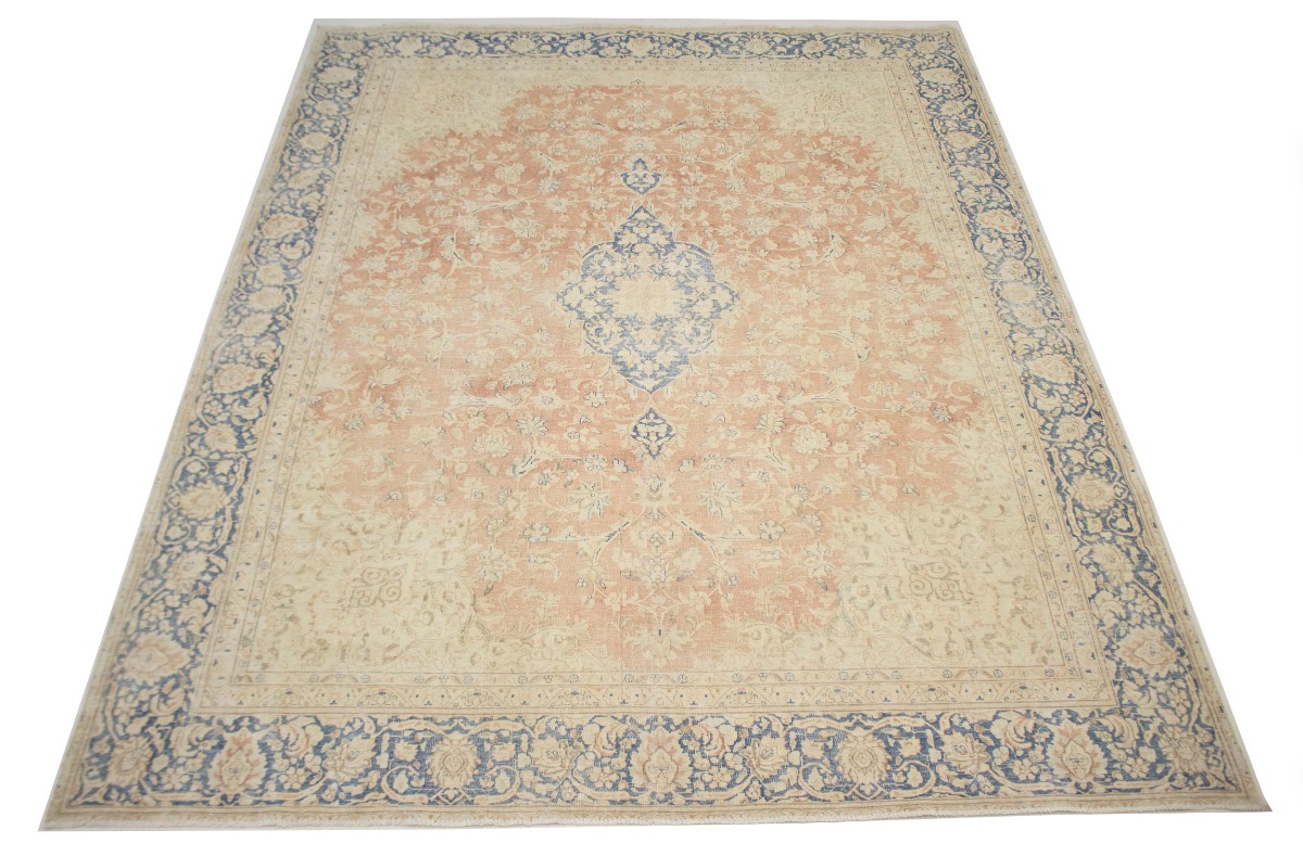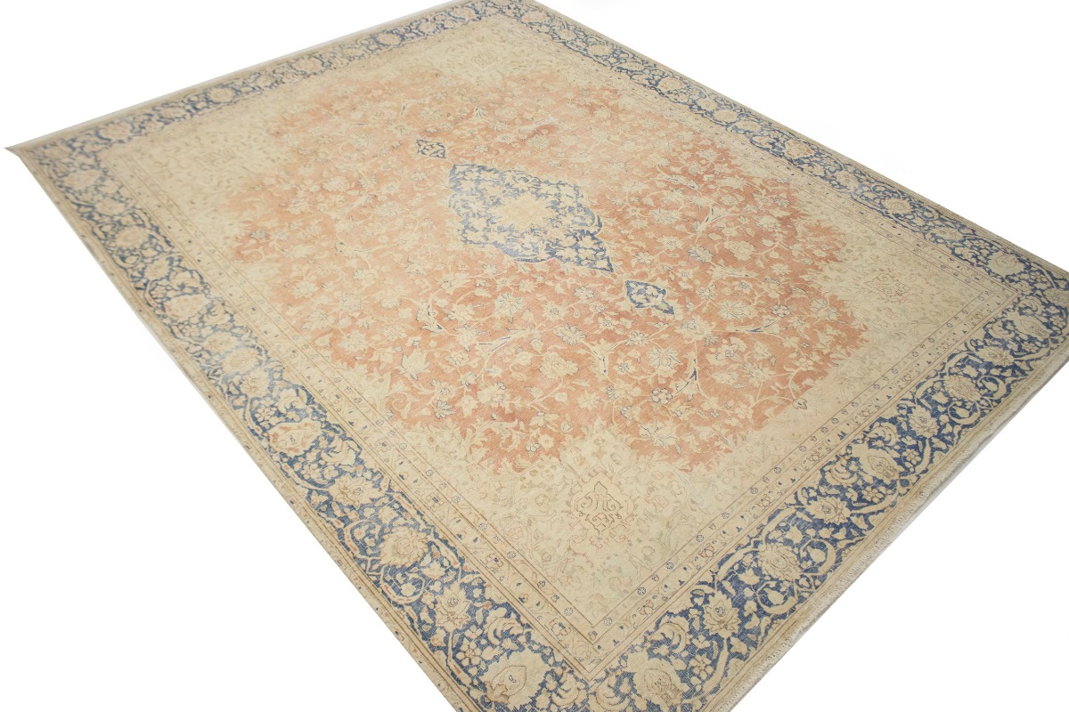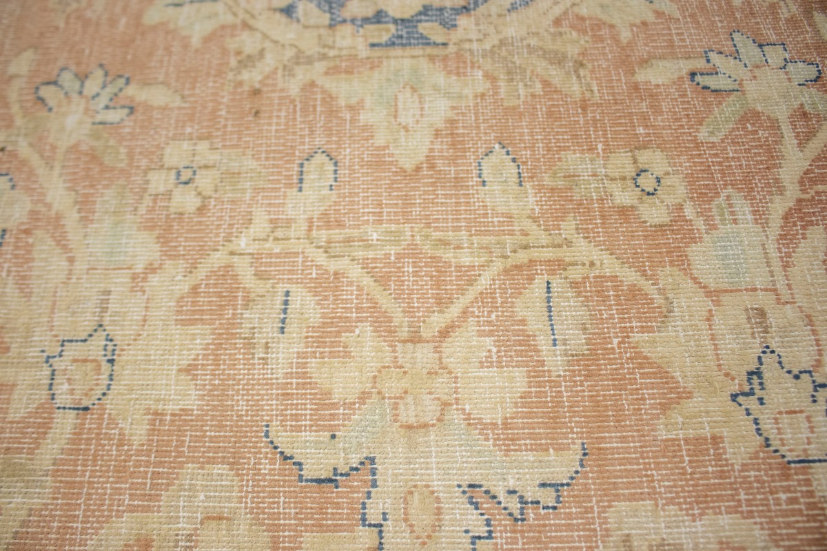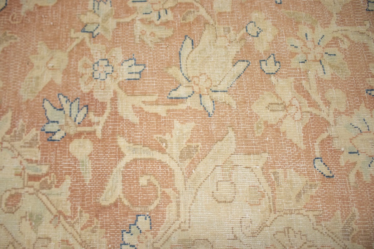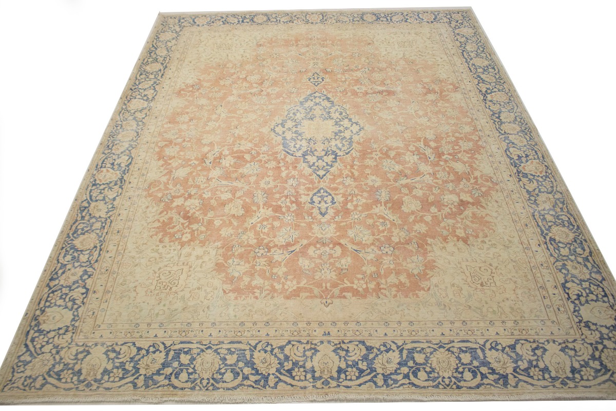 This original 10X12 orange vintage Persian rug was crafted by the hands of skilled weavers enthused by a variety of lovely artistic designs, to recreate the aged look of the unique piece with a richness of color and beautifully elaborated floral background field. What set this traditional Oriental area rug from the others are the material and dye used (wool pile and cotton foundation), knot count, ancient designs, fantastic grades, and its regional historical connection: it has deep roots, from the story of the people who produced it to the meaning of the symbols and colors displayed across its canvas that have been praised for centuries. This classic home décor carpet will be completely cozy and inviting that never will go out of style! Also, this Oriental rug would be among your most valuable treasures, it is a great investment that increase in value over time, and it will last for generations because was woven with high-quality, all-natural wool; it won’t rip, tear, or shed. Environmentally friendly, opulent yet affordable; this Persian rug will give you a thorough amount of character to help define your living space with sophistication and warmth that will capture the eyes and attention of your audience (homeowners, designers, decorators, family and friends). EB-4747
