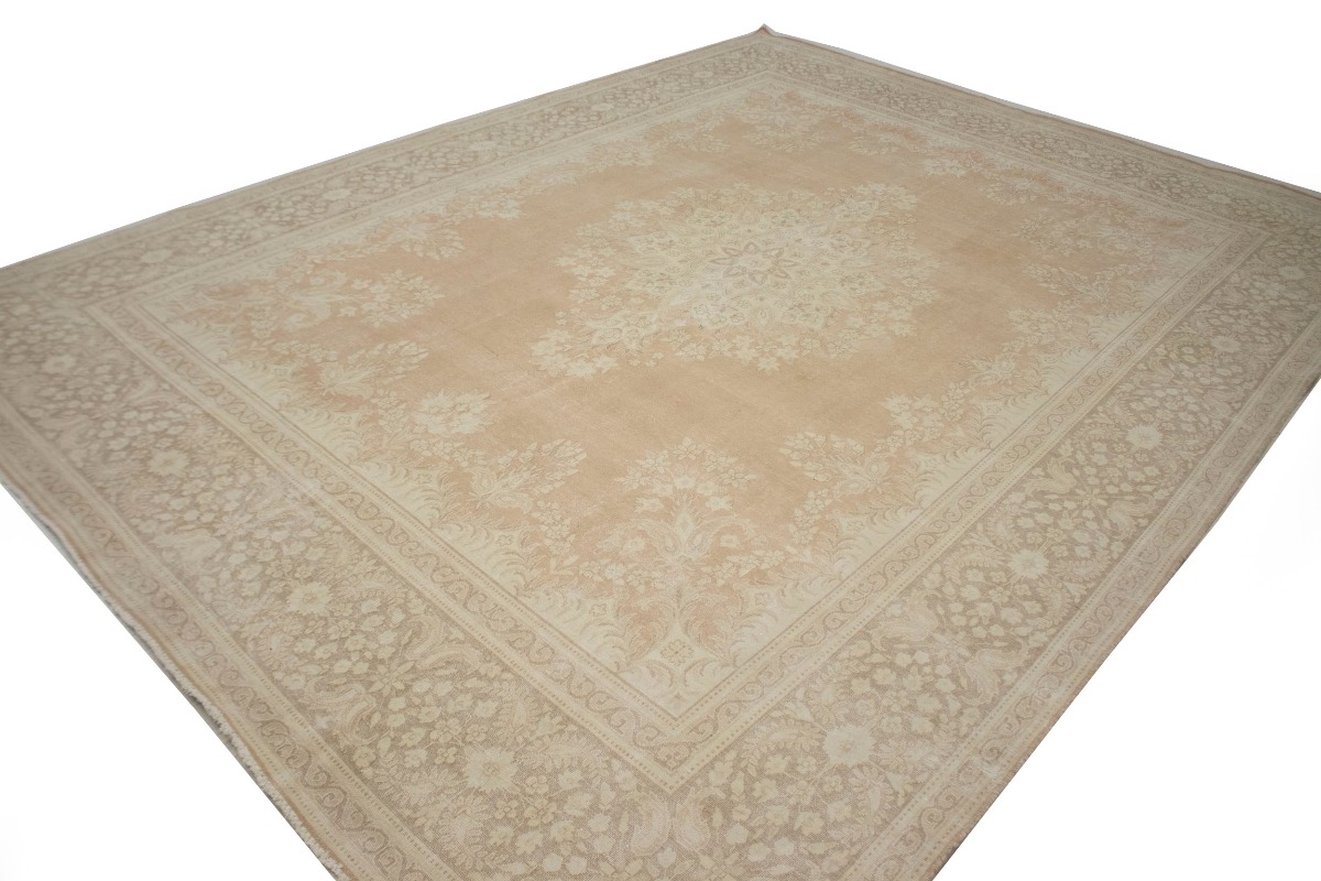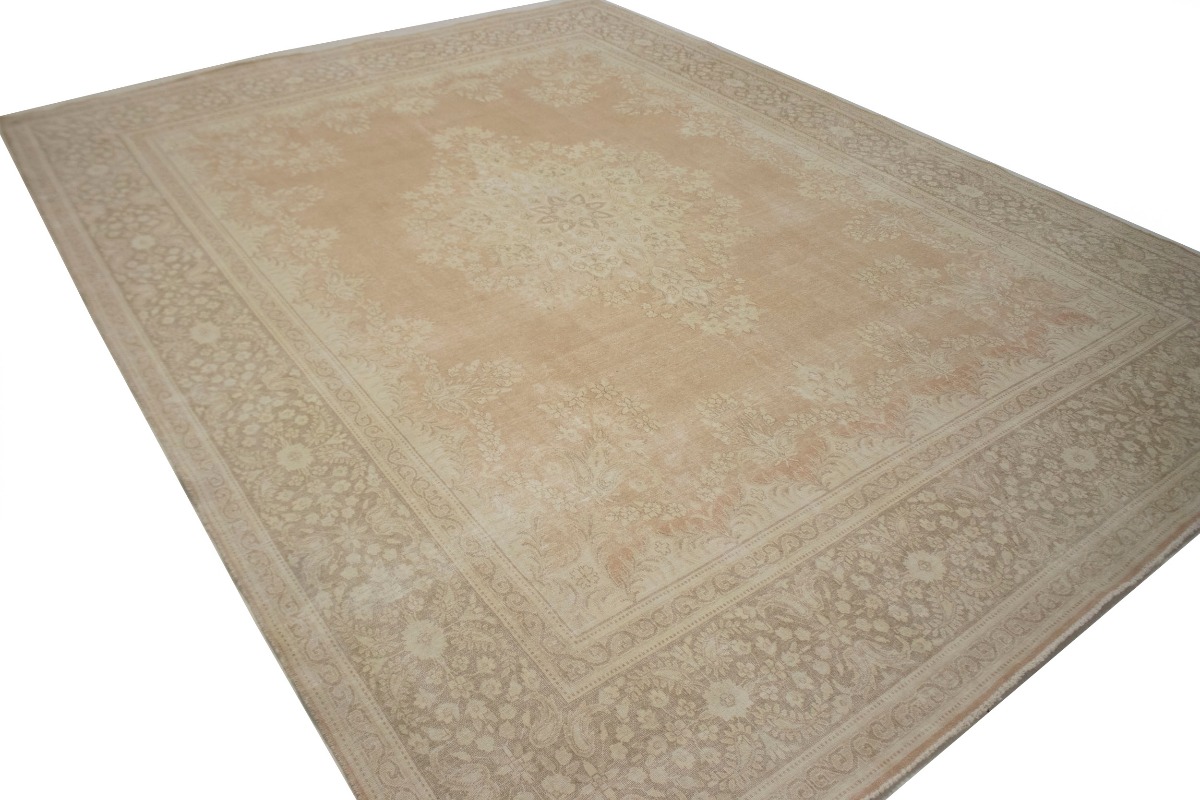 Antique Muted Orange Floral 10X13 Kerman Persian Rug
