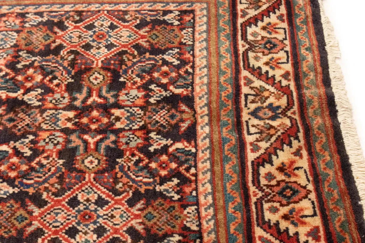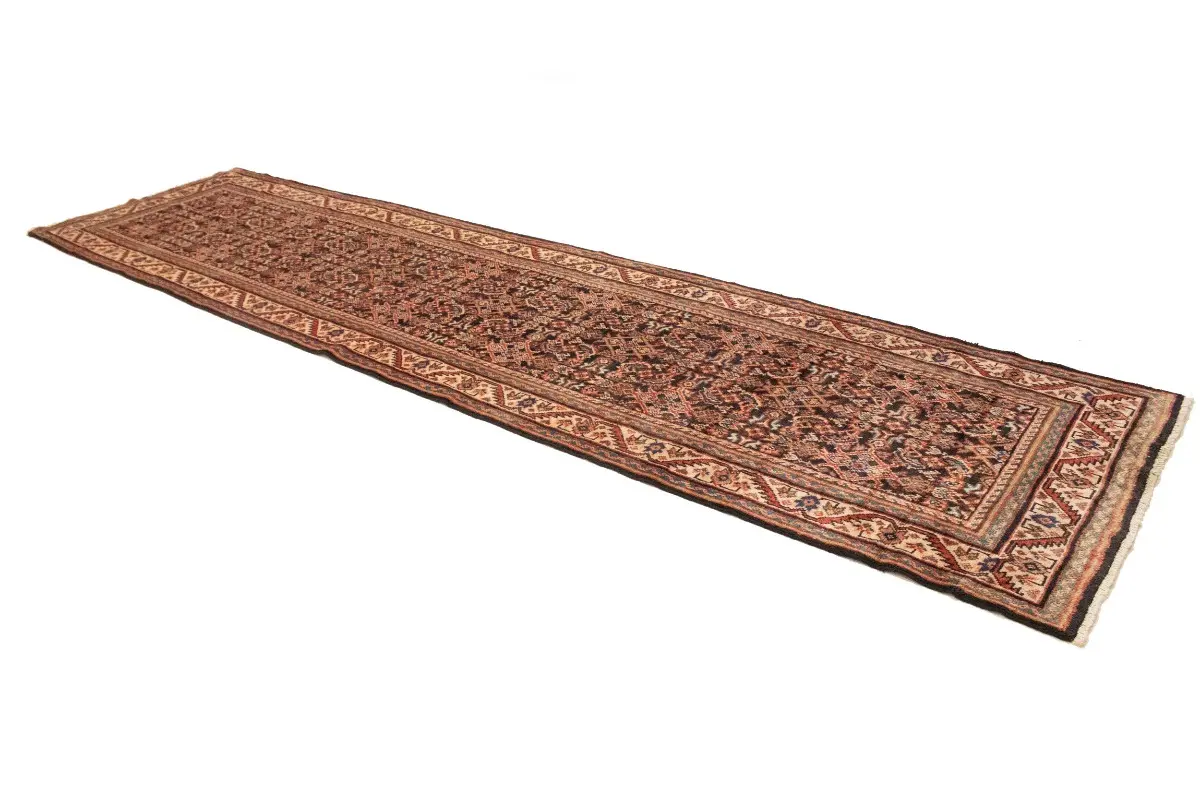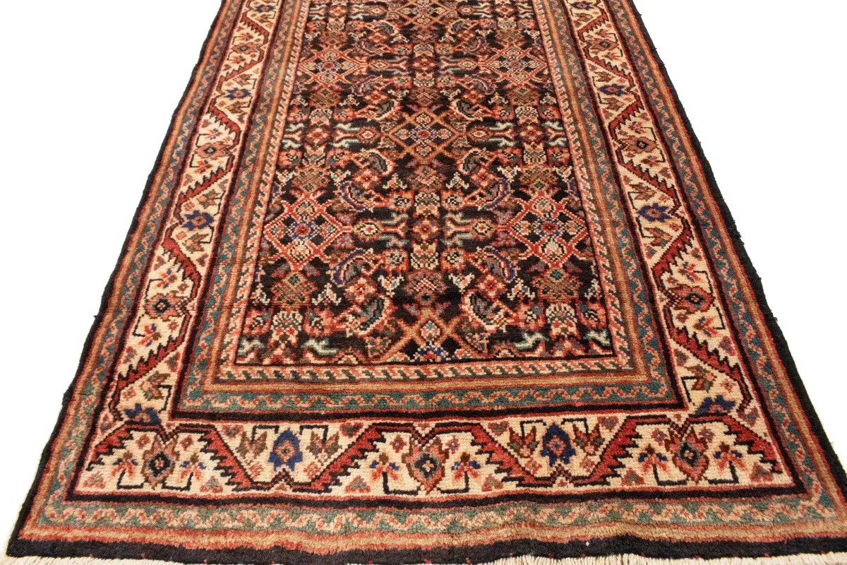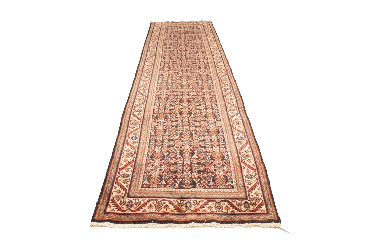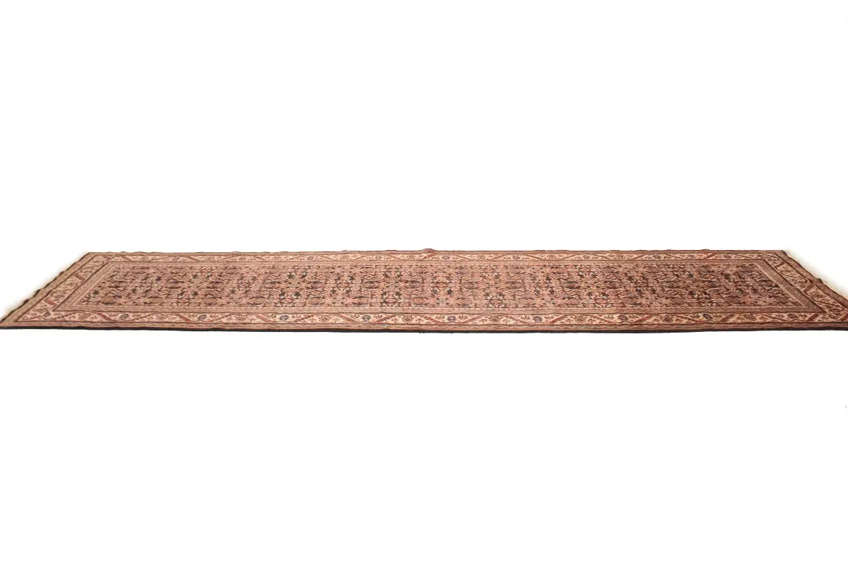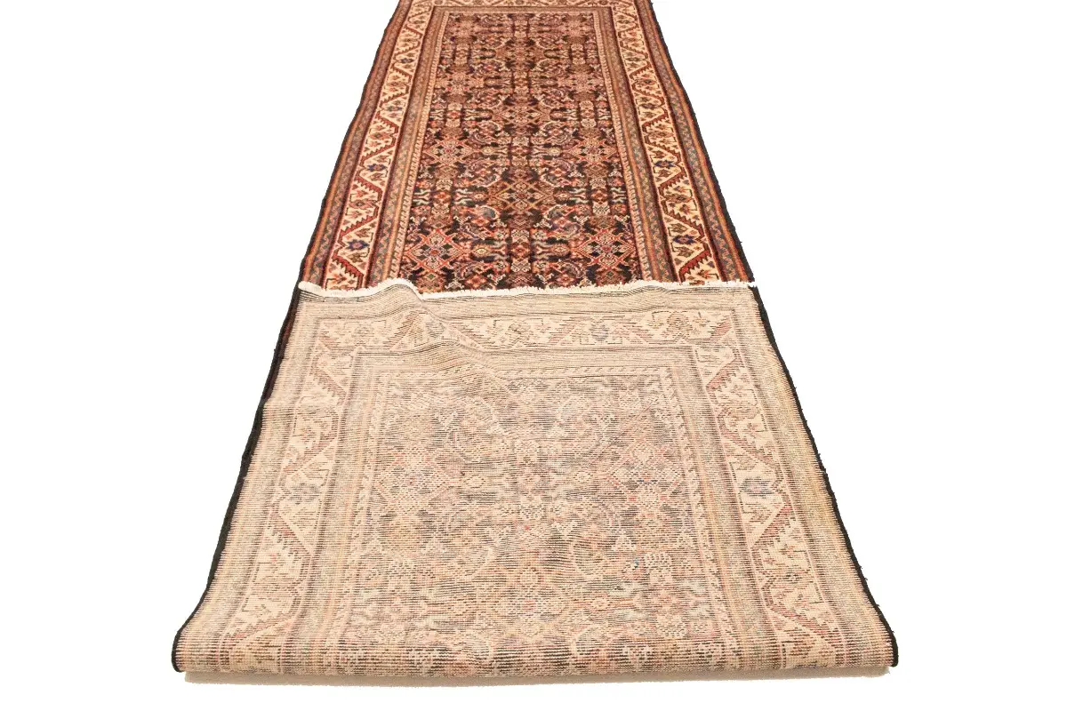 This genuine 4X15 purple vintage Persian runner was made by the hands of gifted weavers inspired by a variety of spectacular artistic designs, to recreate the aged look of the original piece with a richness of color and ornately patterned background field. What set this tribal Oriental area runner from the others are the material and dye used (wool pile and cotton foundation), knot count, ancient designs, fantastic grades, and its regional historical connection: it has deep roots, from the story of the people who produced it to the meaning of the symbols and colors displayed across its canvas that have been praised for centuries. This home décor carpet will be completely cozy and inviting that never will go out of style! Also, this Oriental runner would be among your most valuable treasures, it is a great investment that accrues value over time, and it will last for generations because was woven with high-quality, all-natural wool; it won’t rip, tear, or shed. Environmentally friendly, opulent yet affordable; this Persian rug will give you a thorough amount of character to help define your living space with elegance and warmth that will capture the eyes and attention of your audience (homeowners, designers, decorators, family and friends). EB-5562