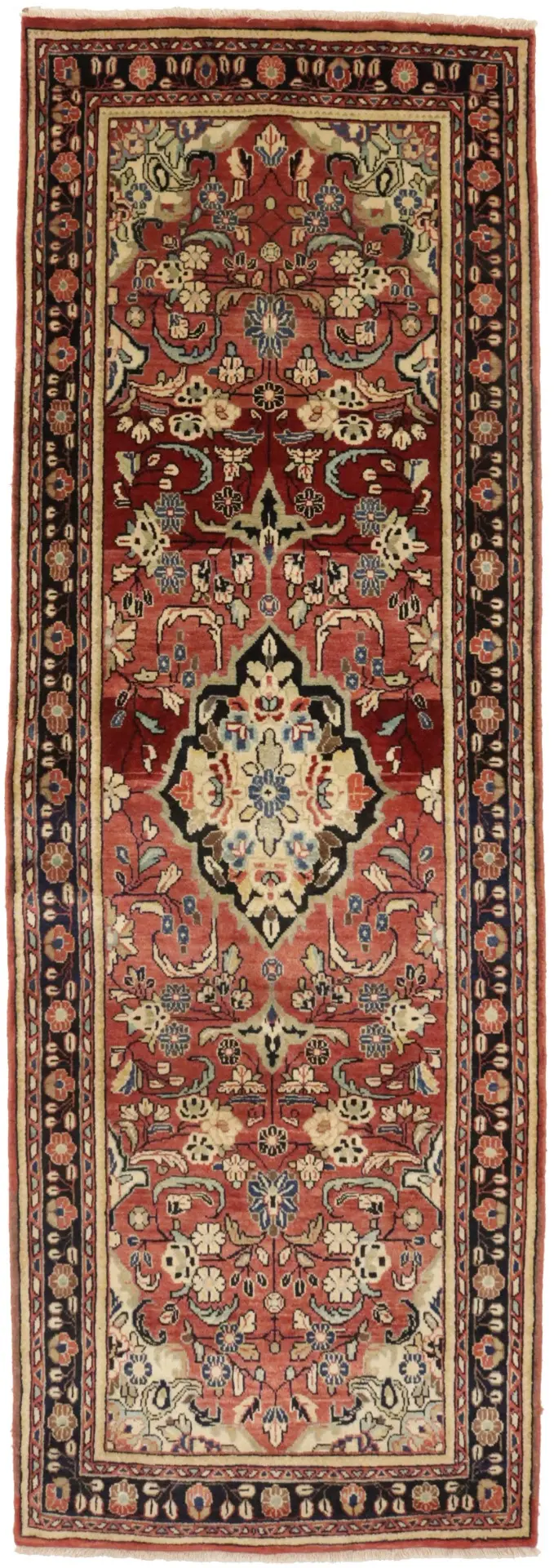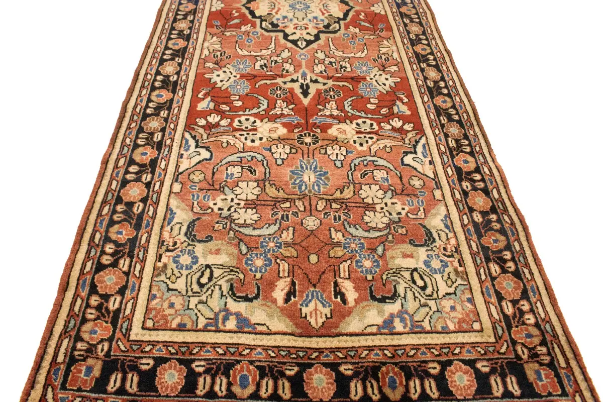 Antique Red Floral 3'5X10 Mahal Persian Runner Rug