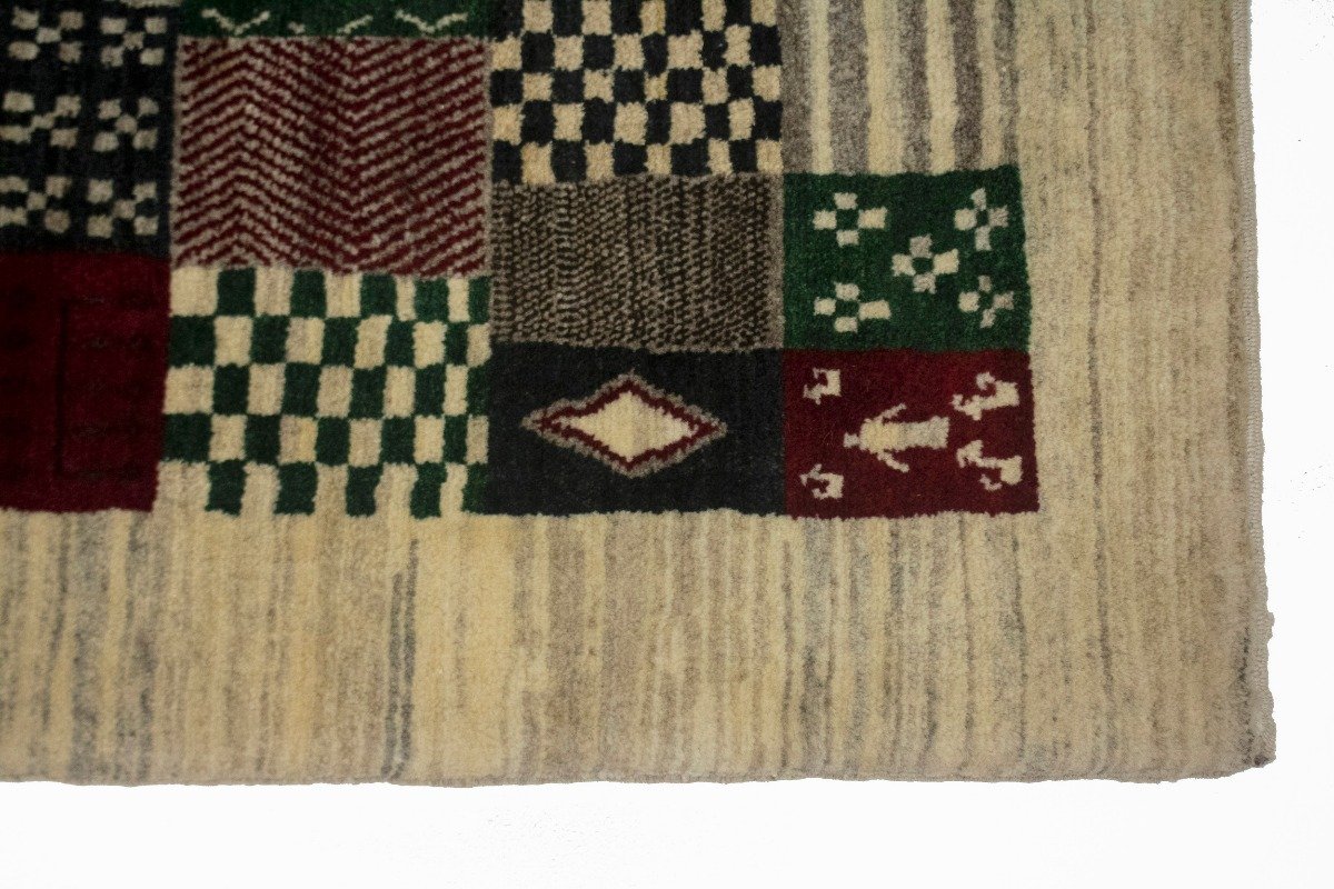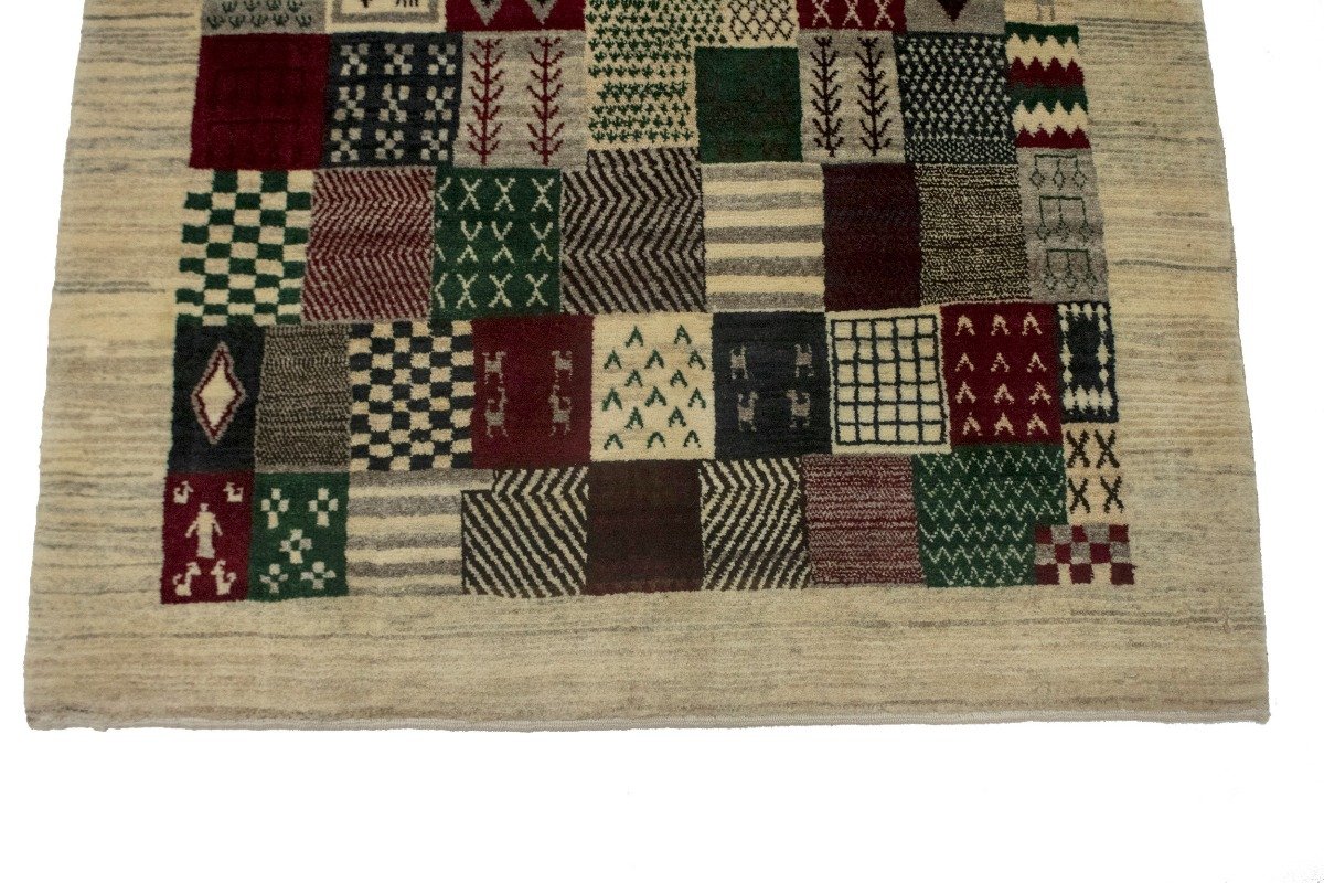 Our Gabbeh collection is inspired by timeless, tribal designs. Each of these magnificent rugs is crafted using a hand-knotted construction with a softest wool pile by talented artisans of Persia and will show beautifully for years. This Oriental 4X6 ivory Gabbeh rug never will go out of style.