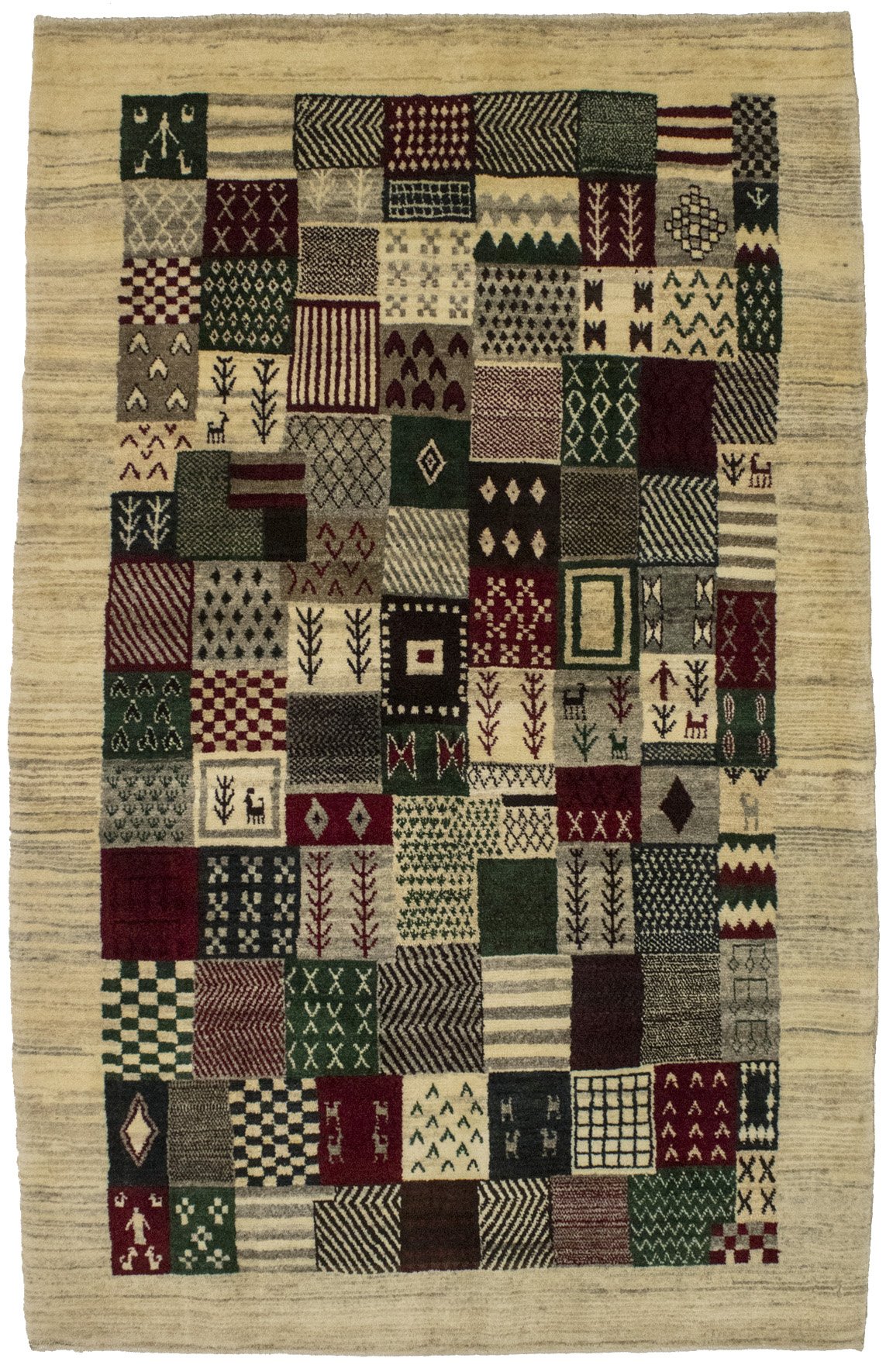 Beige Tribal 4X6 Gabbeh Persian Rug