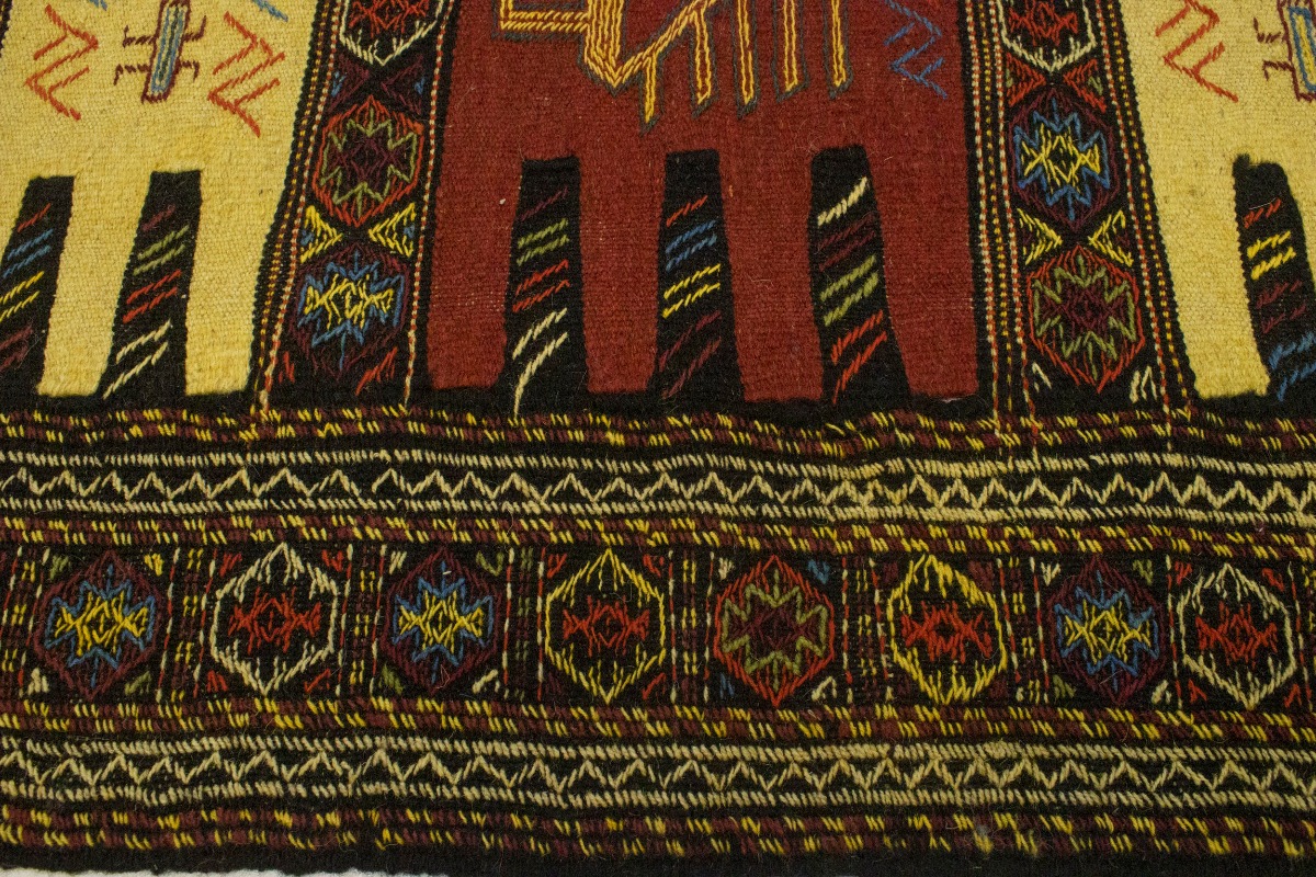 This original 3X6 multicolor vintage Persian rug was well-constructed by the hands of master weavers motivated by a variety of stunning artistic designs, to recreate the aged look of the exceptional piece with a richness of color and developed decorative background field. What set this tribal Oriental area rug from the others are the material and dye used (wool pile and cotton foundation), knot count, ancient designs, fantastic grades, and its regional historical connection: it has deep roots, from the story of the people who produced it to the meaning of the symbols and colors displayed across its canvas that have been praised for centuries. This home décor carpet will be completely cozy and inviting that never will go out of style! Also, this Oriental rug would be among your most valuable treasures, it is a great investment that increase in value over time, and it will last a lifetime because was woven with high-quality, all-natural wool; it won’t rip, tear, or shed. Eco-friendly, opulent yet affordable; this Persian rug will give you an extra pop of character to help define your home environment with elegance and warmth that will capture the eyes and attention of your audience (homeowners, designers, decorators, family and friends). EB-5395