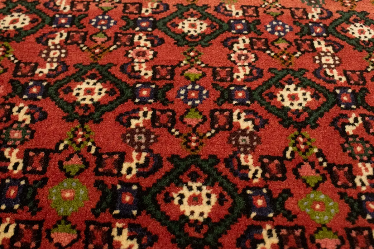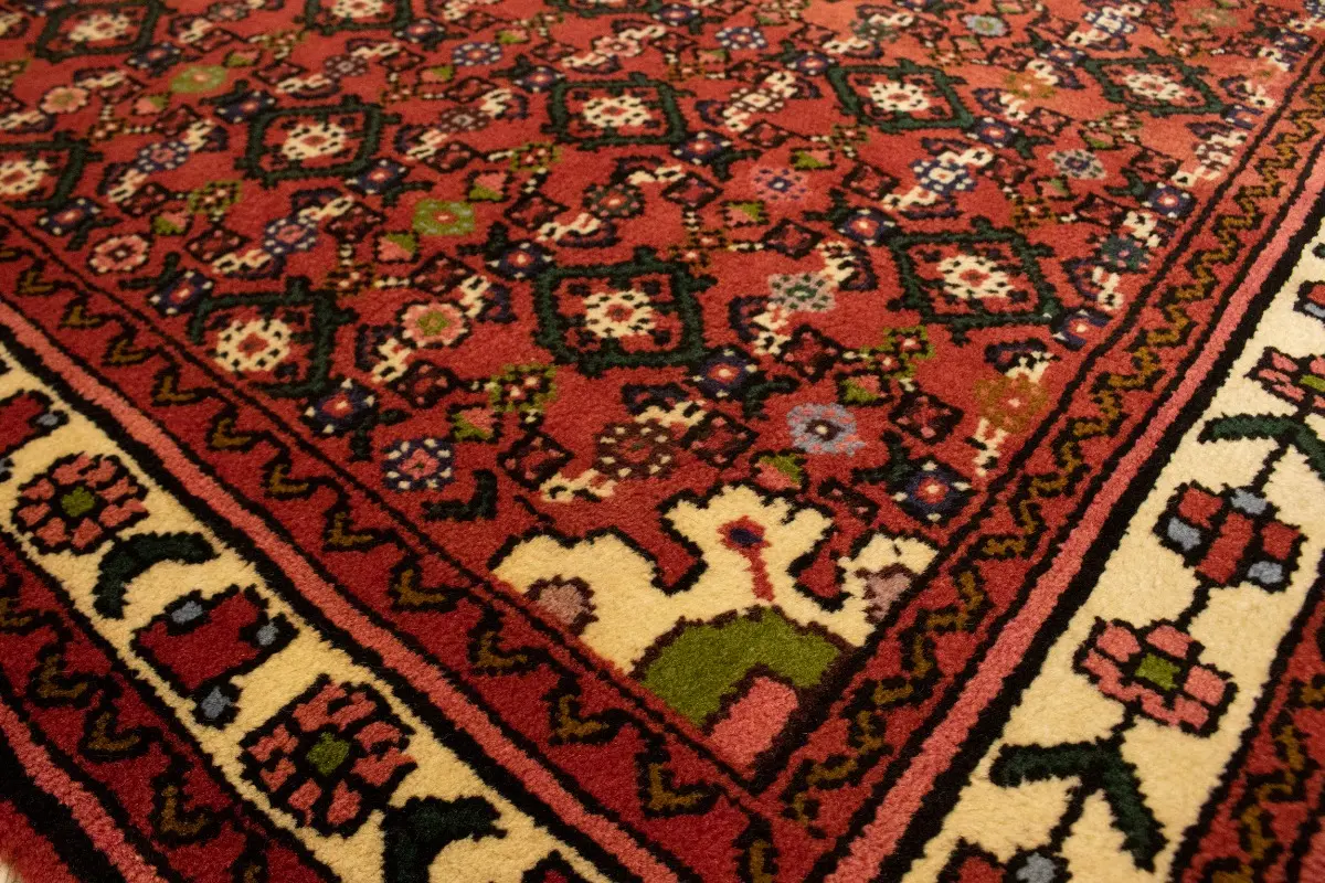 Handmade 4X5 red Persian rug made with vegetable dyes (fine wool pile and cotton foundation), superior knot count, and alluring ancient designs. This Oriental rug never will go out of style and would be among your most valuable treasures.
