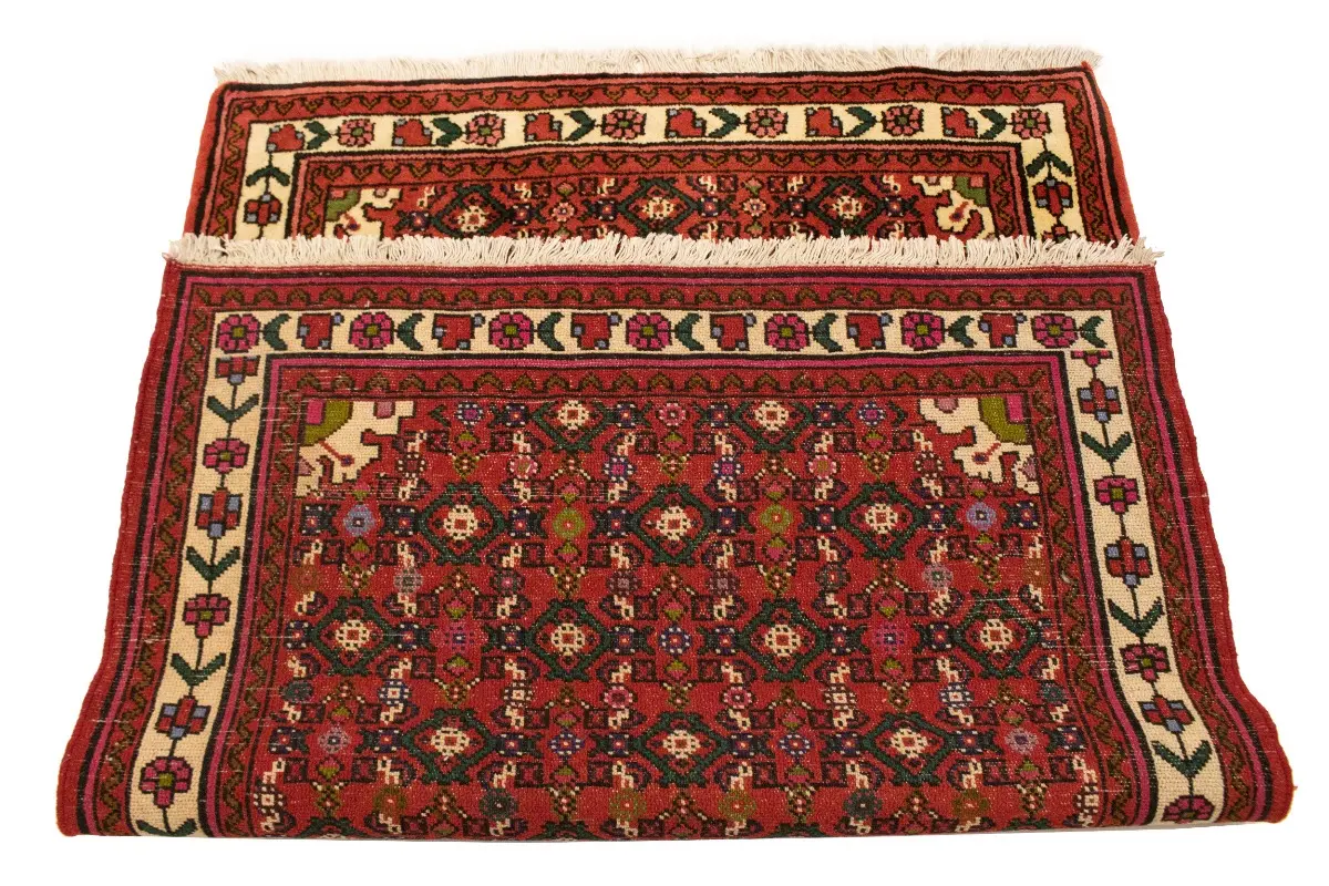 This genuine 4X5 red vintage Persian rug was made by the hands of gifted weavers inspired by a variety of spectacular artistic designs, to recreate the aged look of the original piece with a richness of color and ornately patterned background field. What set this tribal Oriental area rug from the others are the material and dye used (wool pile and cotton foundation), knot count, ancient designs, fantastic grades, and its regional historical connection: it has deep roots, from the story of the people who produced it to the meaning of the symbols and colors displayed across its canvas that have been praised for centuries. This home décor carpet will be completely cozy and inviting that never will go out of style! Also, this Oriental rug would be among your most valuable treasures, it is a great investment that accrues value over time, and it will last for generations because was woven with high-quality, all-natural wool; it won’t rip, tear, or shed. Environmentally friendly, opulent yet affordable; this Persian rug will give you a thorough amount of character to help define your living space with elegance and warmth that will capture the eyes and attention of your audience (homeowners, designers, decorators, family and friends). EB-5438