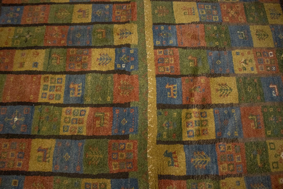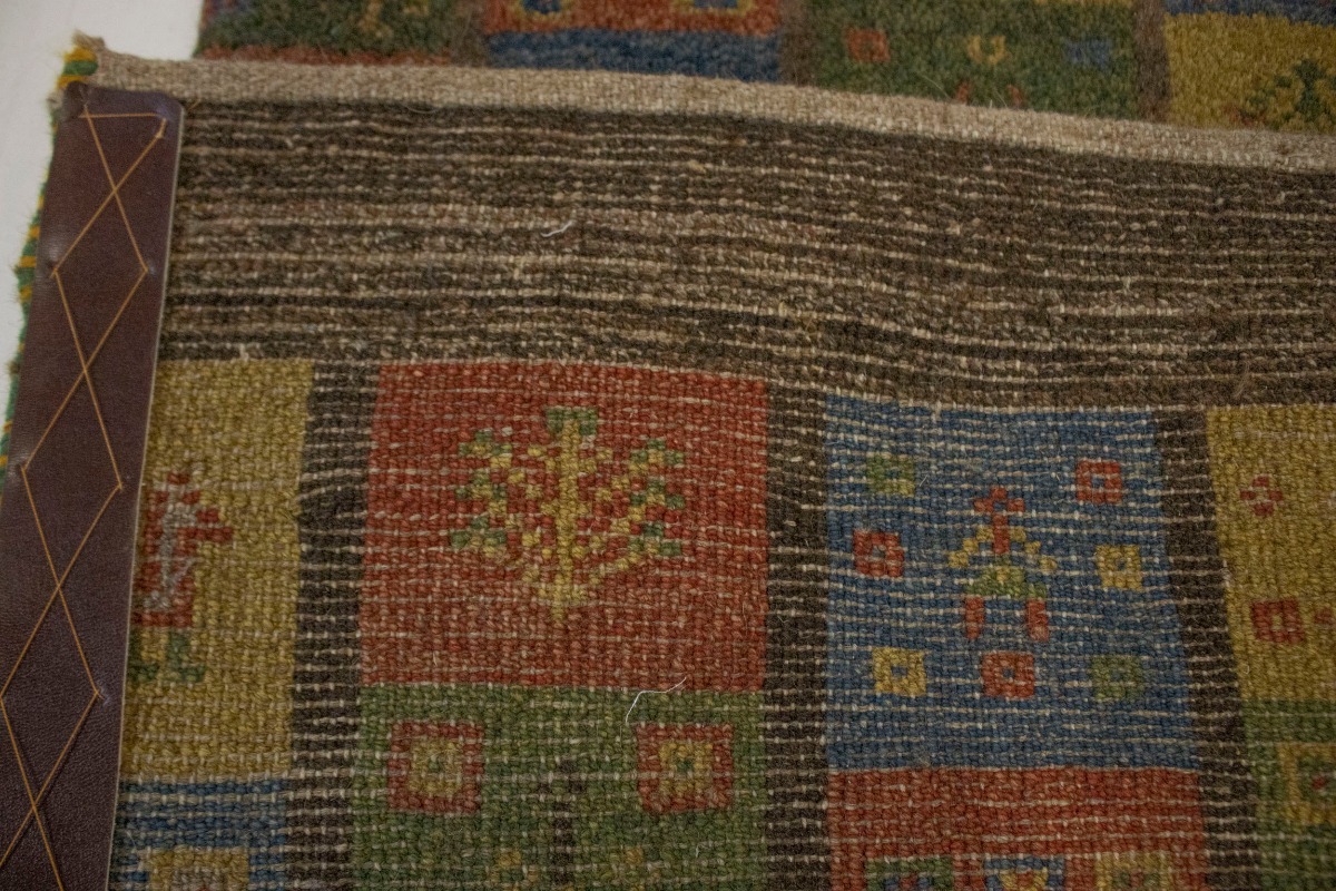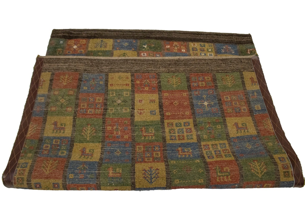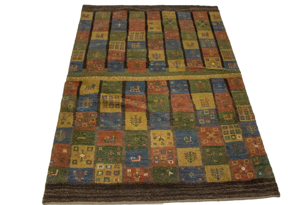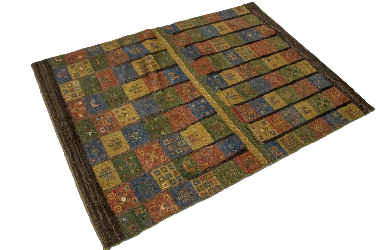 Brown & Olive Checkered 4X5 Gabbeh Persian Rug