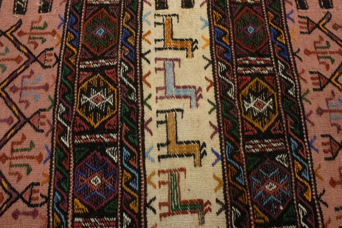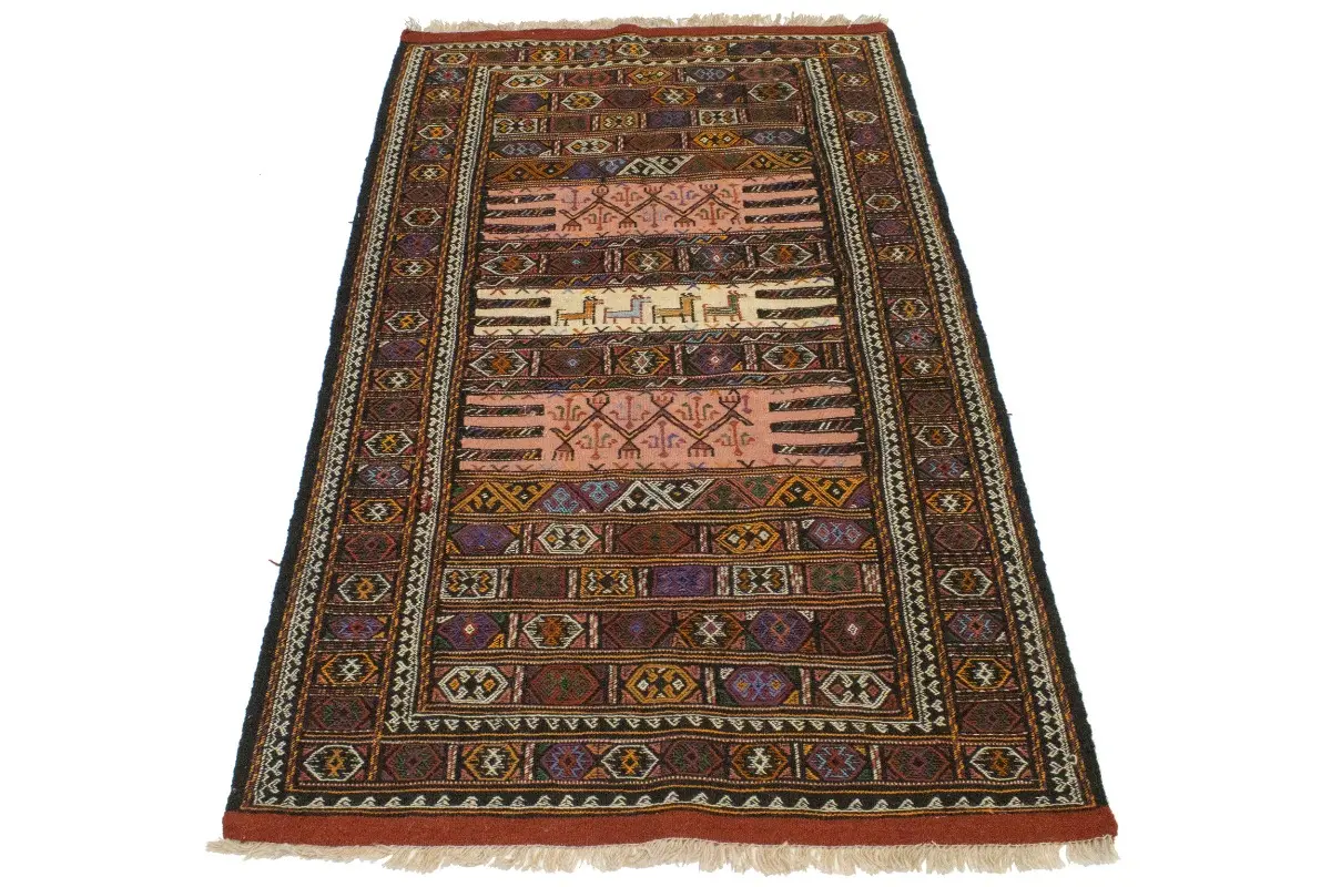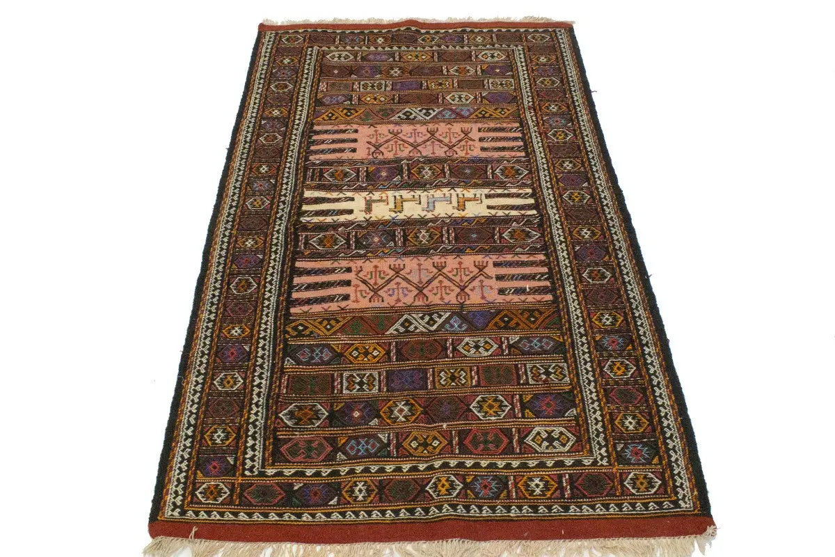 Charcoal Pink Tribal 3X6 Sumak Herati Persian Rug
