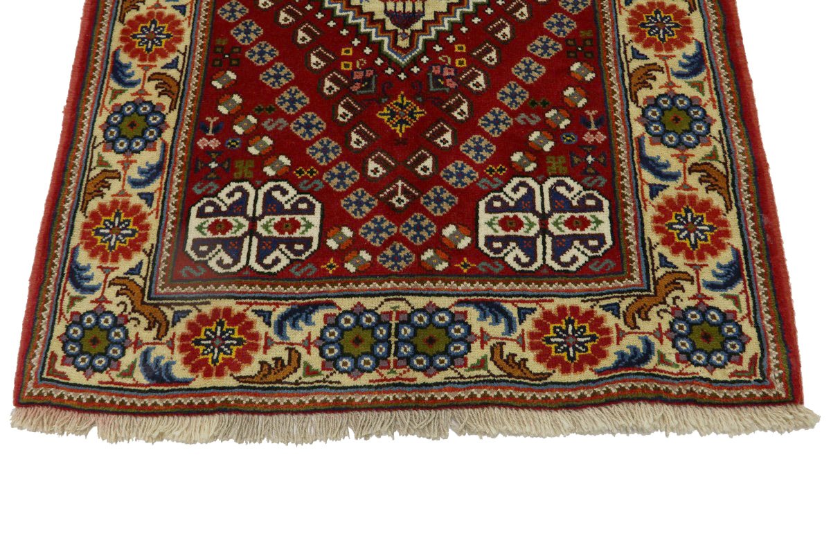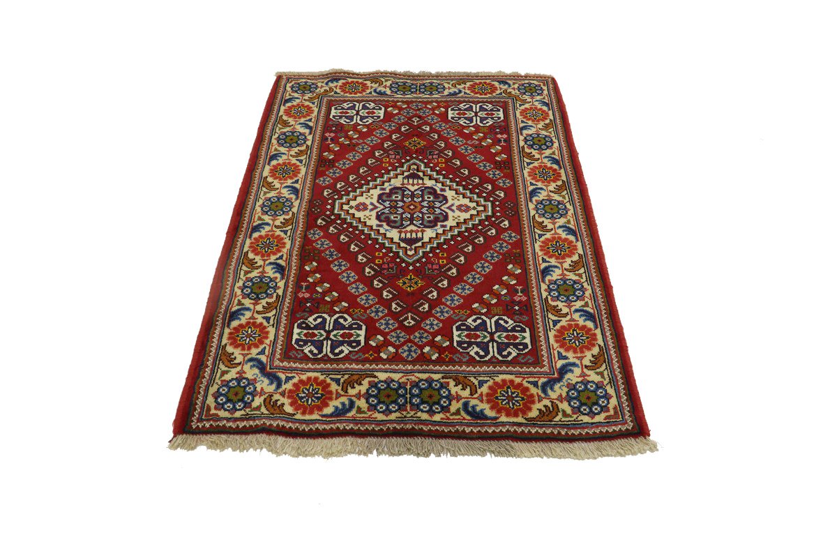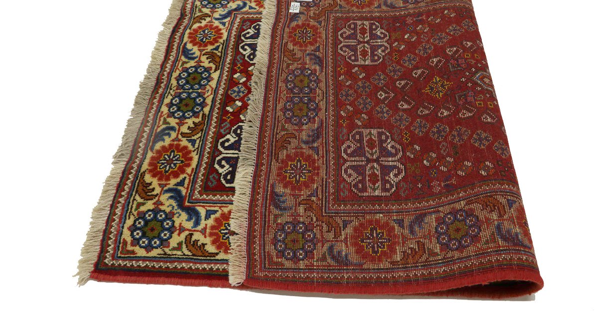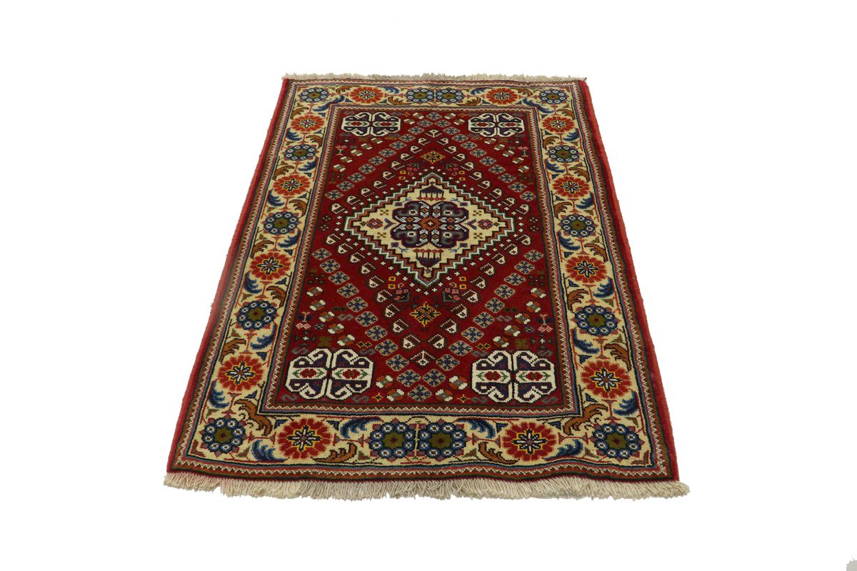 This genuine 4X5 Cherry Red Persian rug was made by the hands of gifted weavers inspired by a variety of spectacular artistic designs, to recreate the aged look of the original piece with a richness of color and ornately patterned background field. What set this tribal Oriental area rug from the others are the material and dye used (wool pile and cotton foundation), knot count, ancient designs, fantastic grades, and its regional historical connection: it has deep roots, from the story of the people who produced it to the meaning of the symbols and colors displayed across its canvas that have been praised for centuries. This home décor carpet will be completely cozy and inviting that never will go out of style! Also, this Oriental rug would be among your most valuable treasures, it is a great investment that accrues value over time, and it will last for generations because was woven with high-quality, all-natural wool; it won’t rip, tear, or shed. Environmentally friendly, opulent yet affordable; this Persian rug will give you a thorough amount of character to help define your living space with elegance and warmth that will capture the eyes and attention of your audience (homeowners, designers, decorators, family and friends). EB-1951