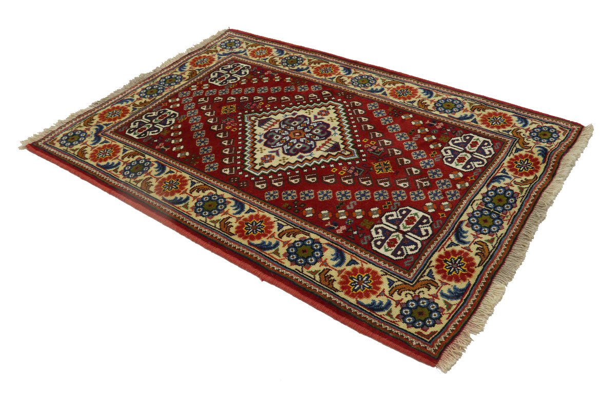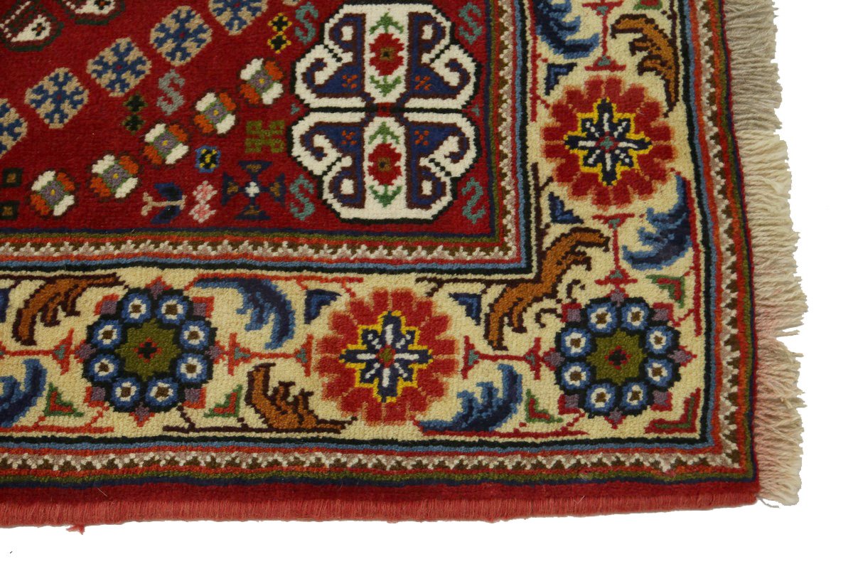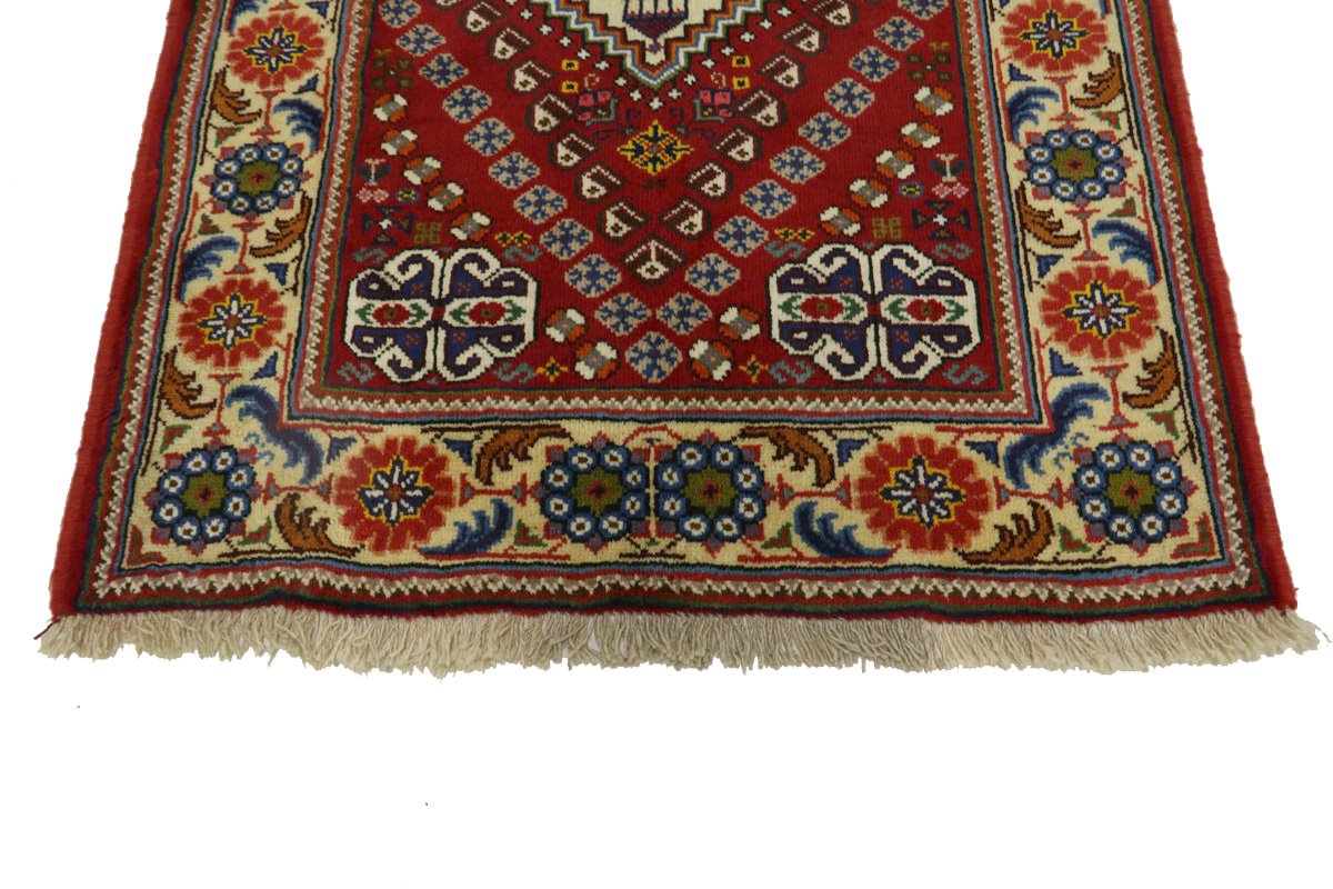 This genuine 4X5 Cherry Red Persian rug was made by the hands of gifted weavers inspired by a variety of spectacular artistic designs, to recreate the aged look of the original piece with a richness of color and ornately patterned background field. What set this tribal Oriental area rug from the others are the material and dye used (wool pile and cotton foundation), knot count, ancient designs, fantastic grades, and its regional historical connection: it has deep roots, from the story of the people who produced it to the meaning of the symbols and colors displayed across its canvas that have been praised for centuries. This home décor carpet will be completely cozy and inviting that never will go out of style! Also, this Oriental rug would be among your most valuable treasures, it is a great investment that accrues value over time, and it will last for generations because was woven with high-quality, all-natural wool; it won’t rip, tear, or shed. Environmentally friendly, opulent yet affordable; this Persian rug will give you a thorough amount of character to help define your living space with elegance and warmth that will capture the eyes and attention of your audience (homeowners, designers, decorators, family and friends). EB-1951