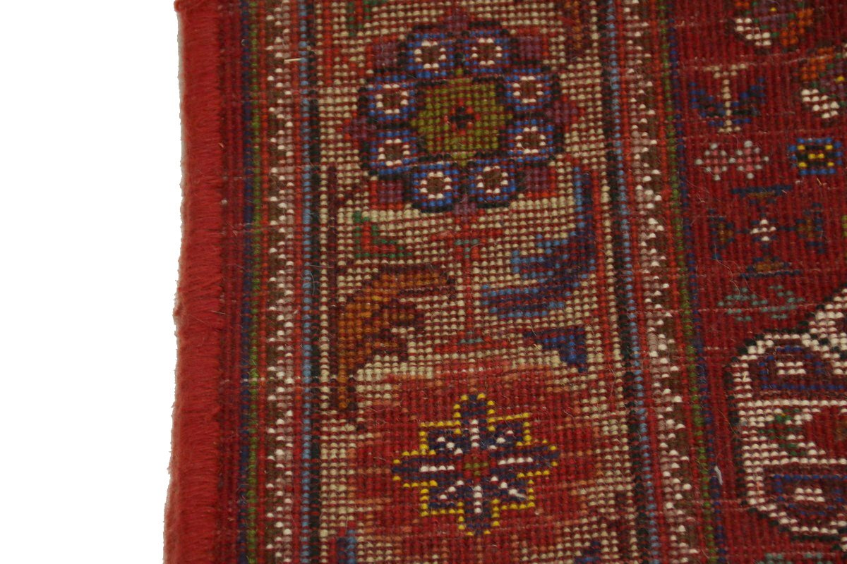 Hand Knotted vintage 4X5 cherry red Persian rug made with vegetable dyes (fine wool pile and cotton foundation), superior knot count, and appealing ancient designs. This Oriental rug never will go out of style and would be among your most valuable treasures.