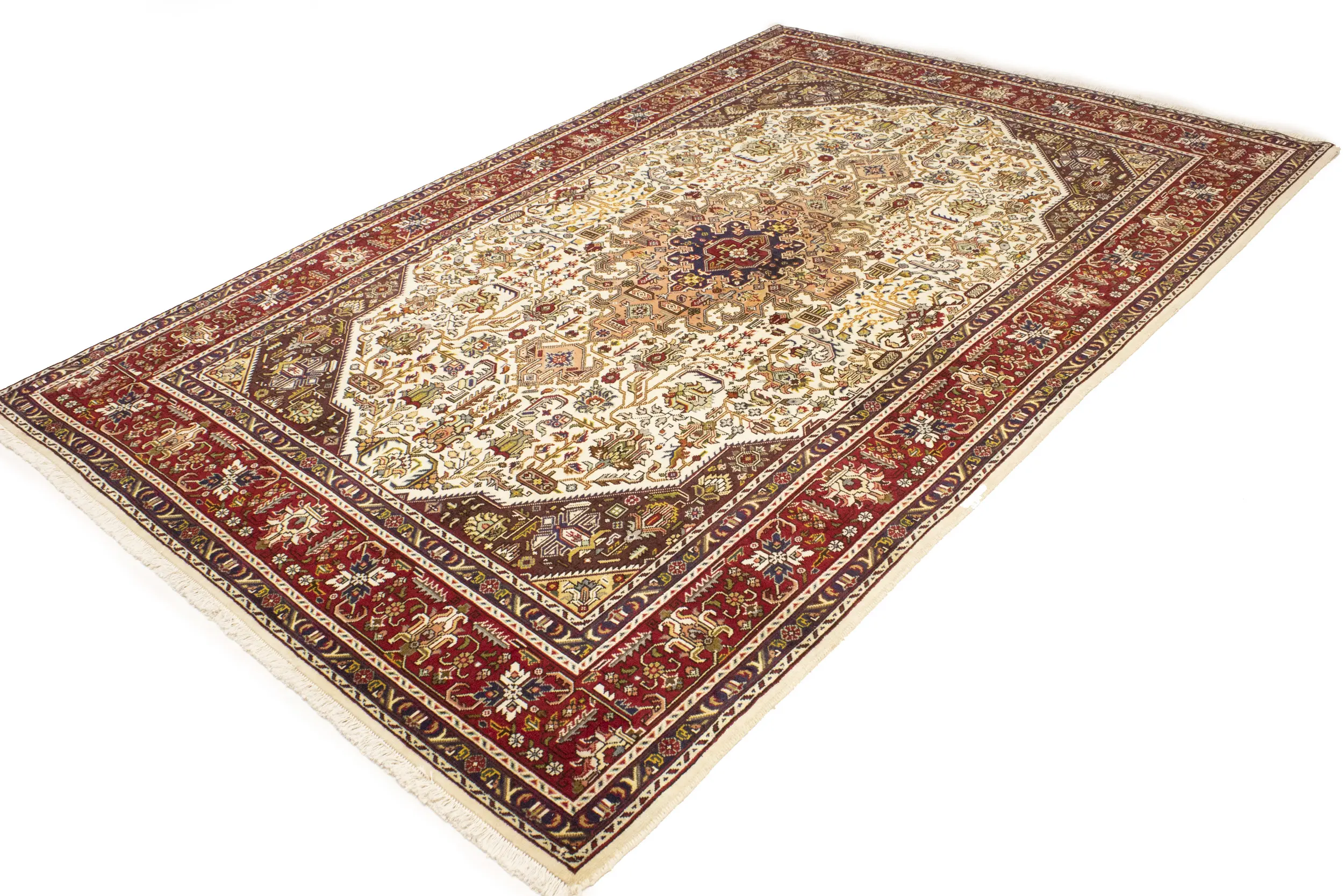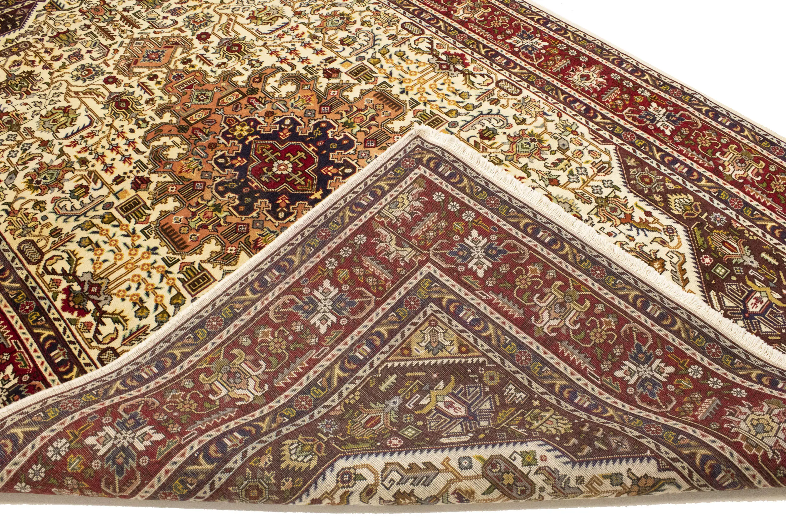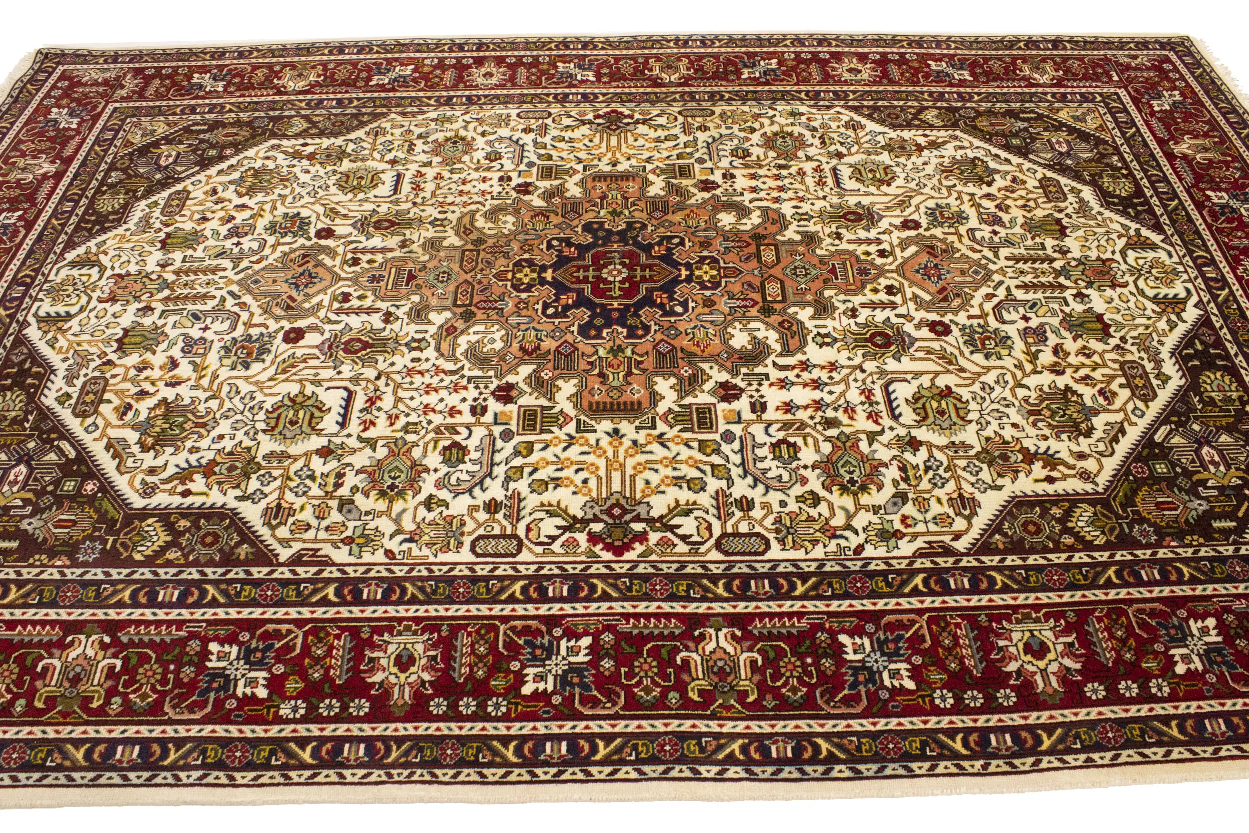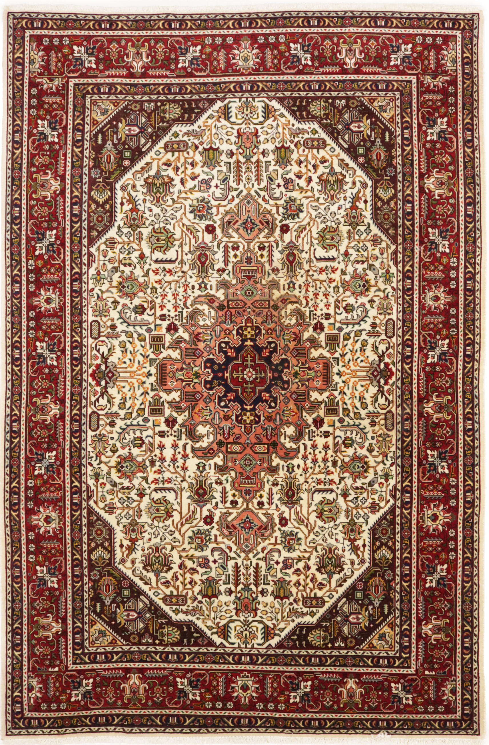 Handmade vintage 6'6 X 9'11 Cream Persian rug made with vegetable dyes (fine wool pile and cotton foundation), superior knot count, and alluring ancient designs. This Oriental rug never will go out of style and would be among your most valuable treasures.