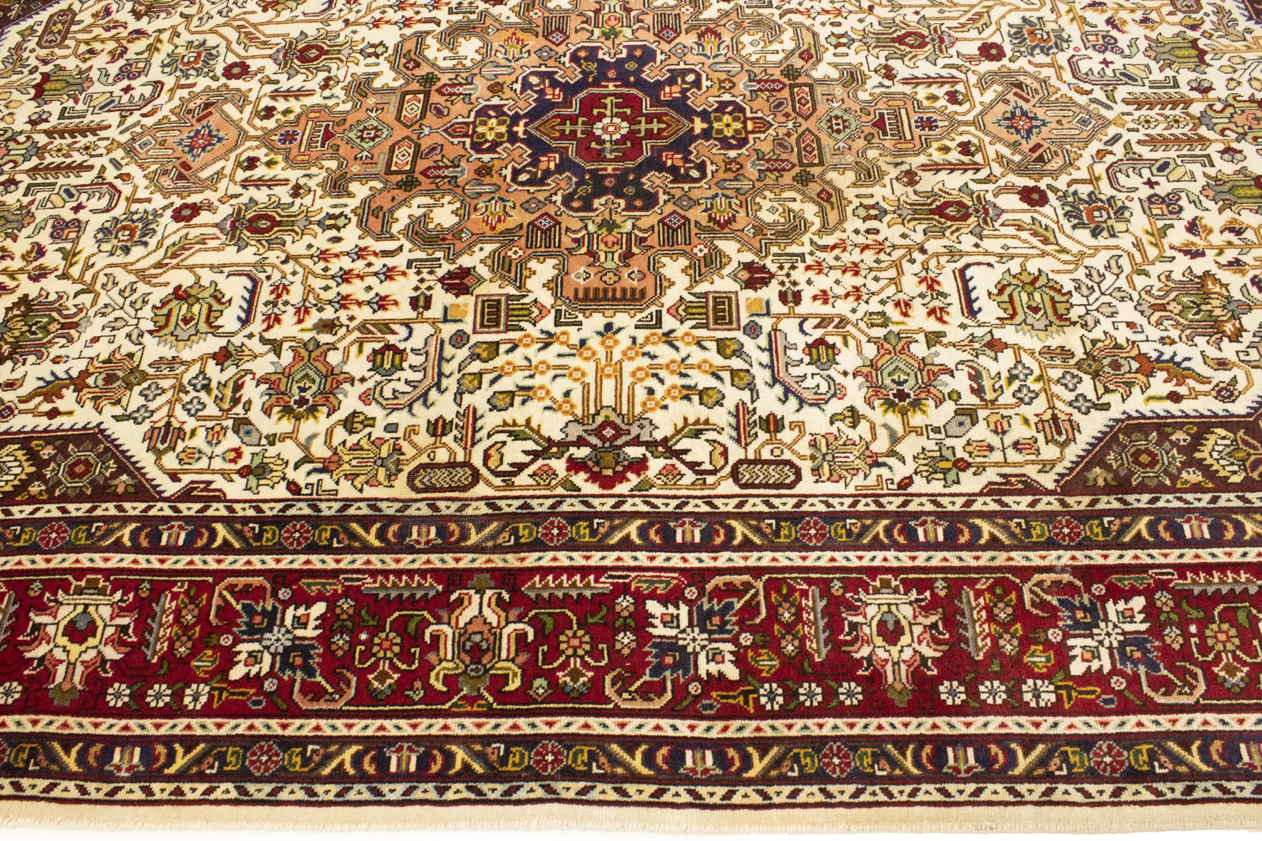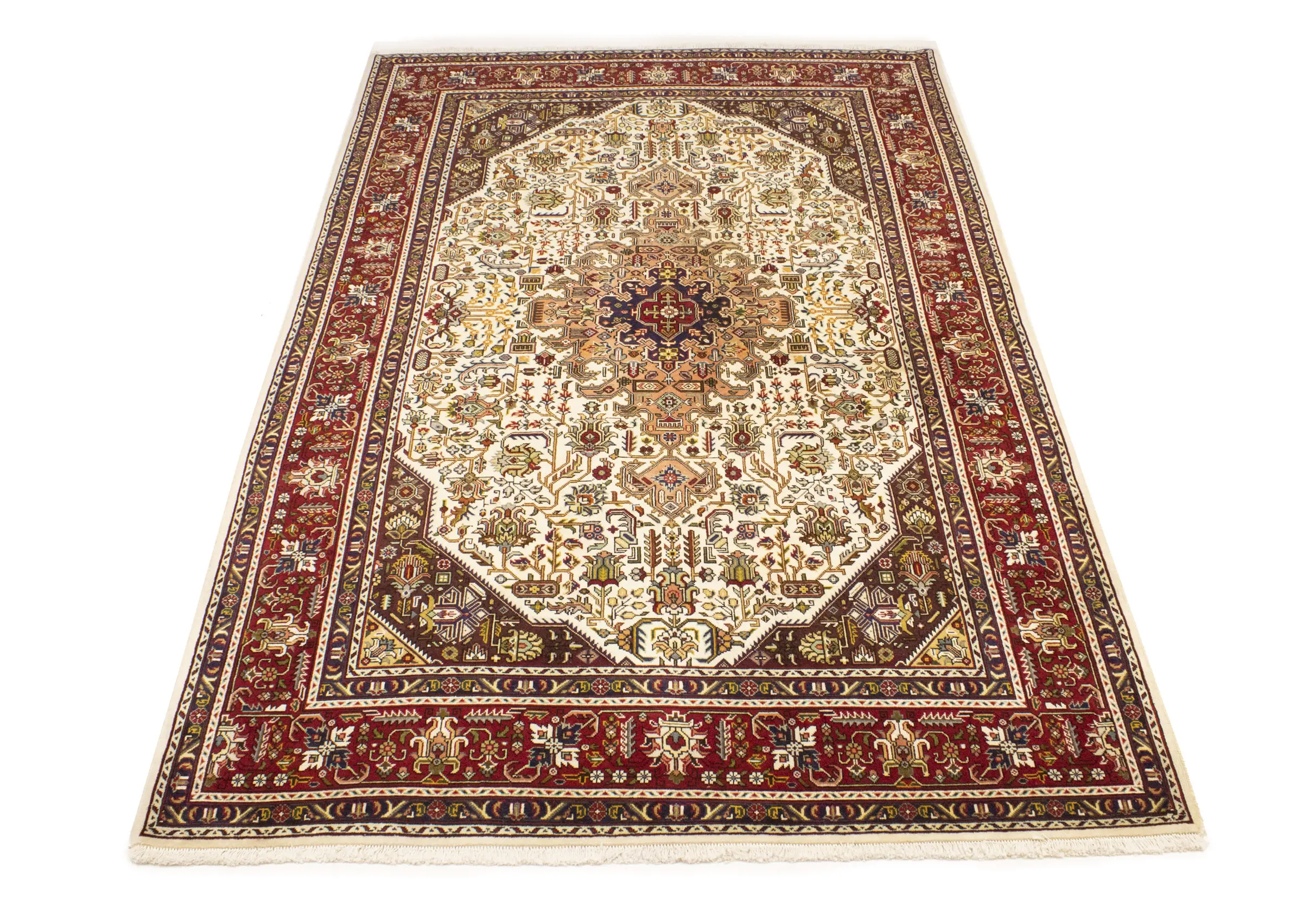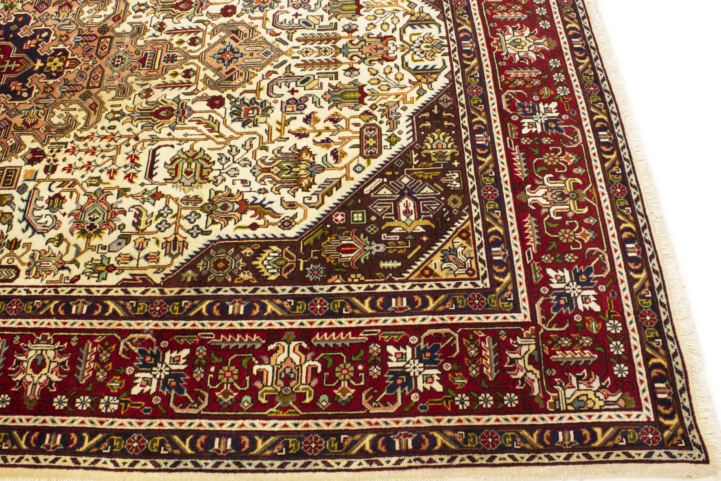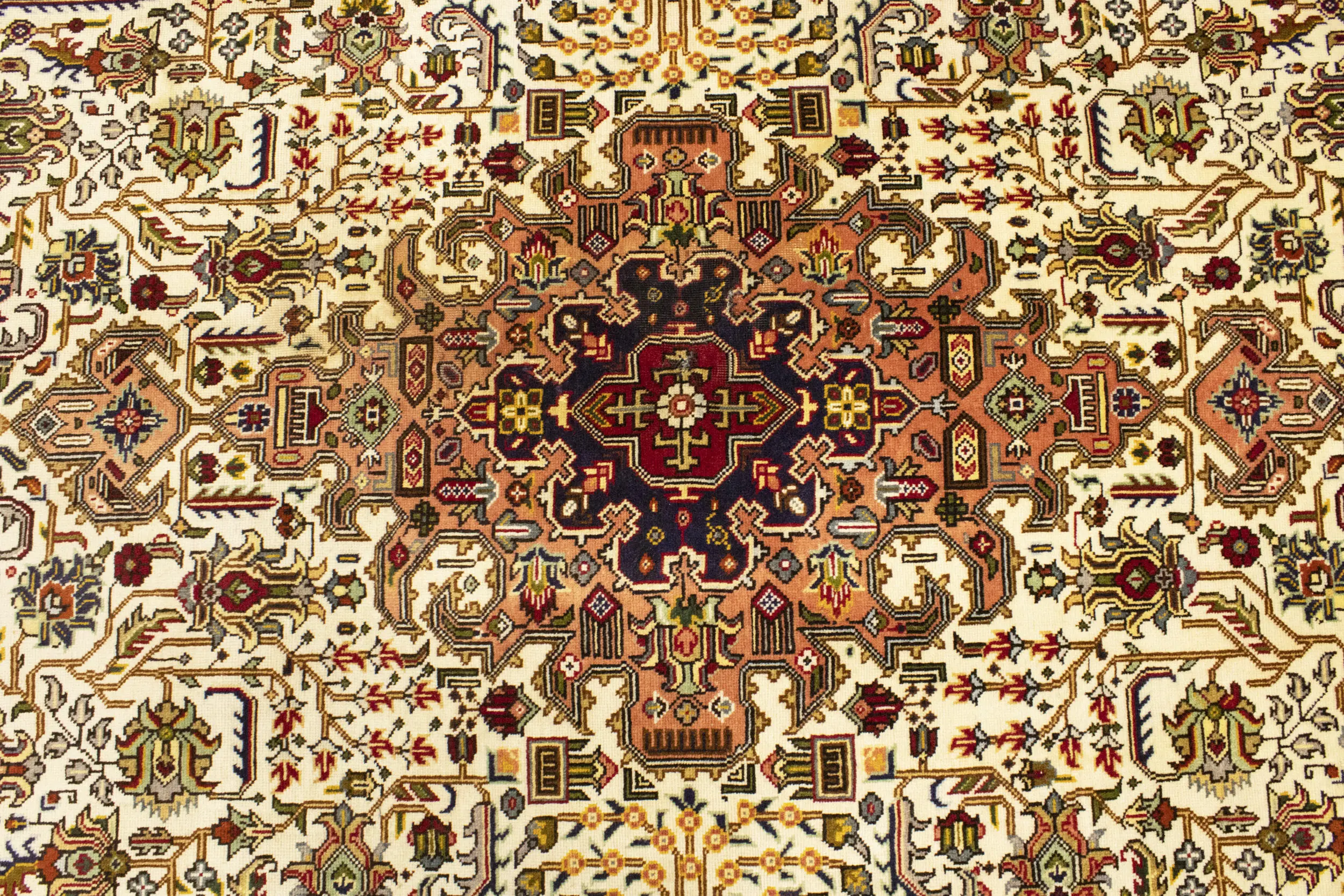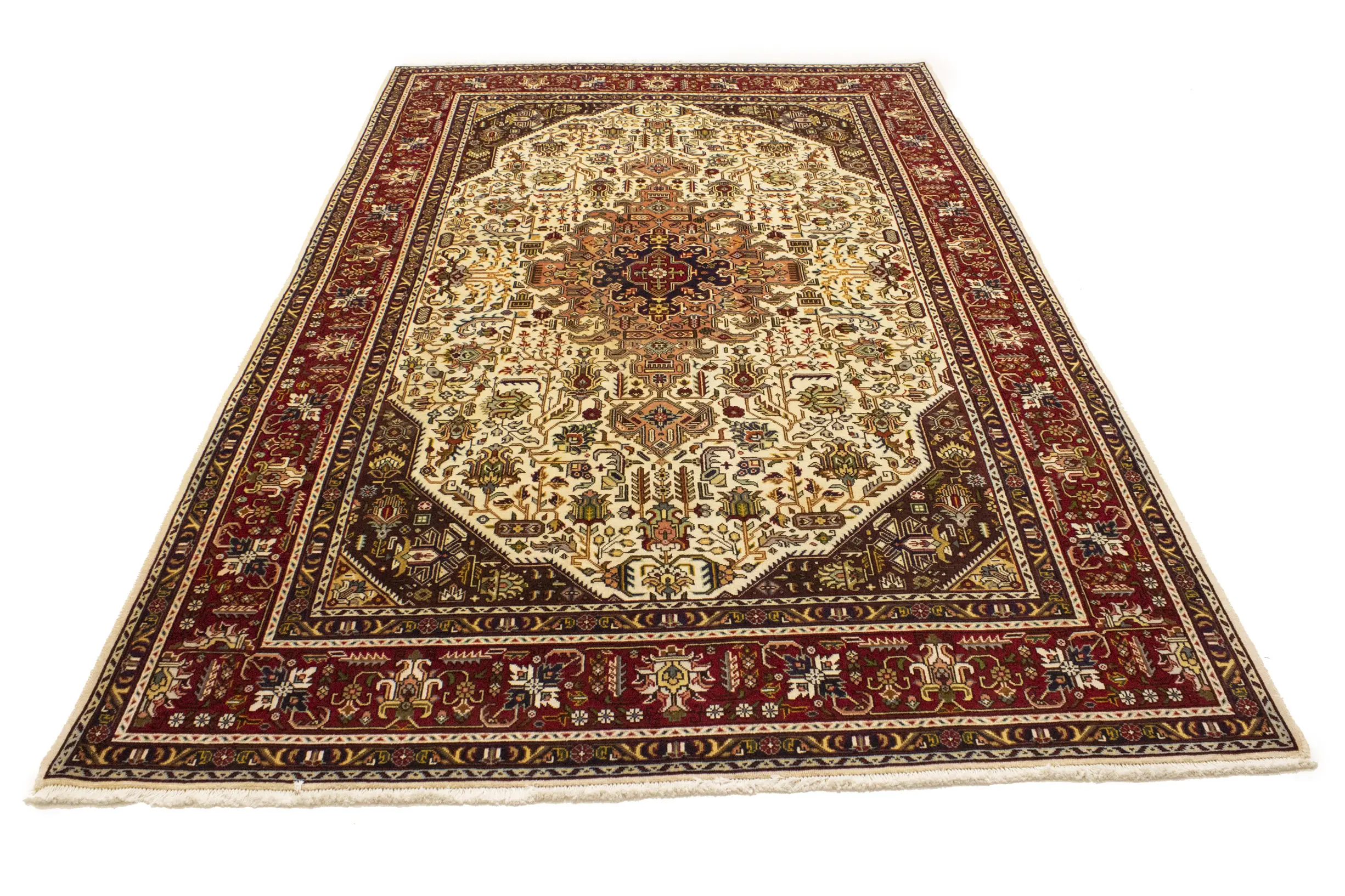 Handmade vintage 6'6 X 9'11 Cream Persian rug made with vegetable dyes (fine wool pile and cotton foundation), superior knot count, and alluring ancient designs. This Oriental rug never will go out of style and would be among your most valuable treasures.