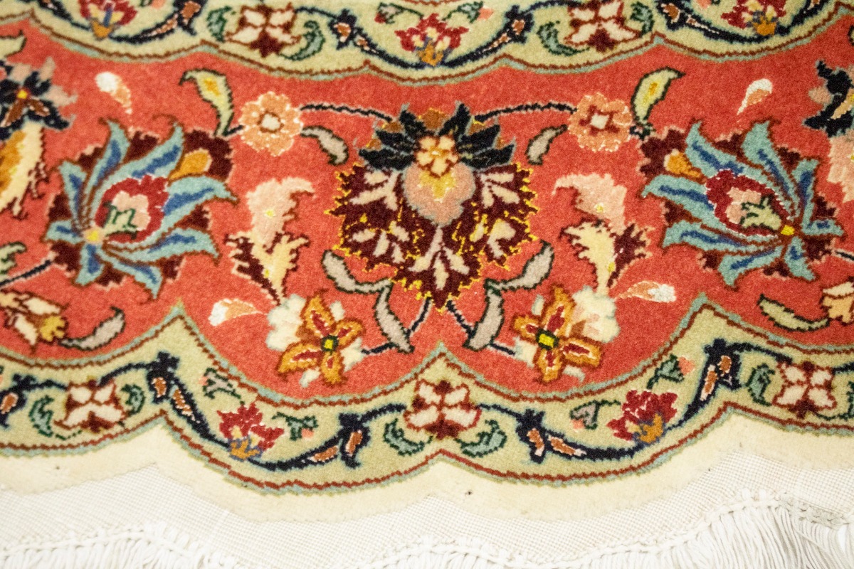 Handmade Persian rug made with vegetable dyes (fine wool pile and cotton foundation), exceptional knot count, and alluring ancient designs. This Oriental rug never will go out of style and would be among your most valuable treasures.