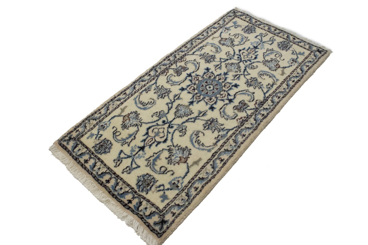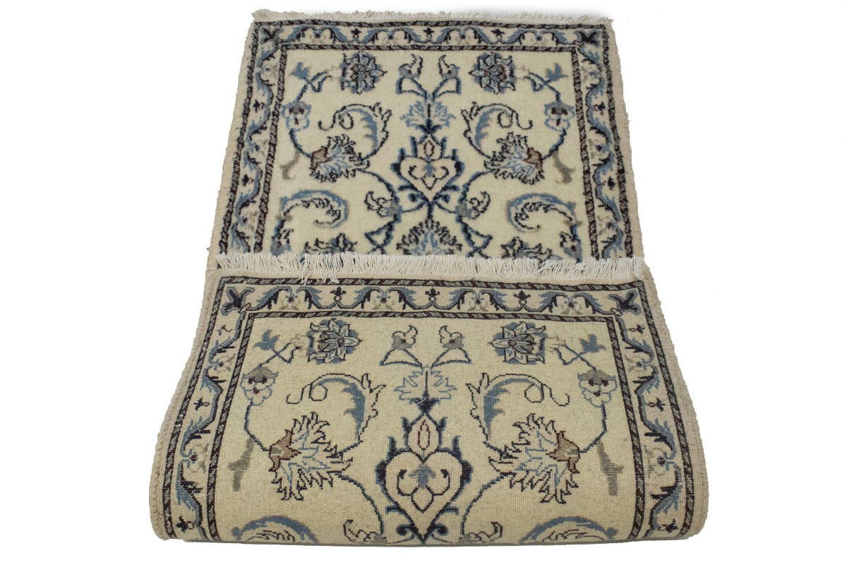 Handmade 2'3X4'8 cream Persian rug made with vegetable dyes (fine wool pile and cotton foundation), exceptional knot count, and appealing ancient designs. This Oriental rug never will go out of style and would be among your most valuable treasures.