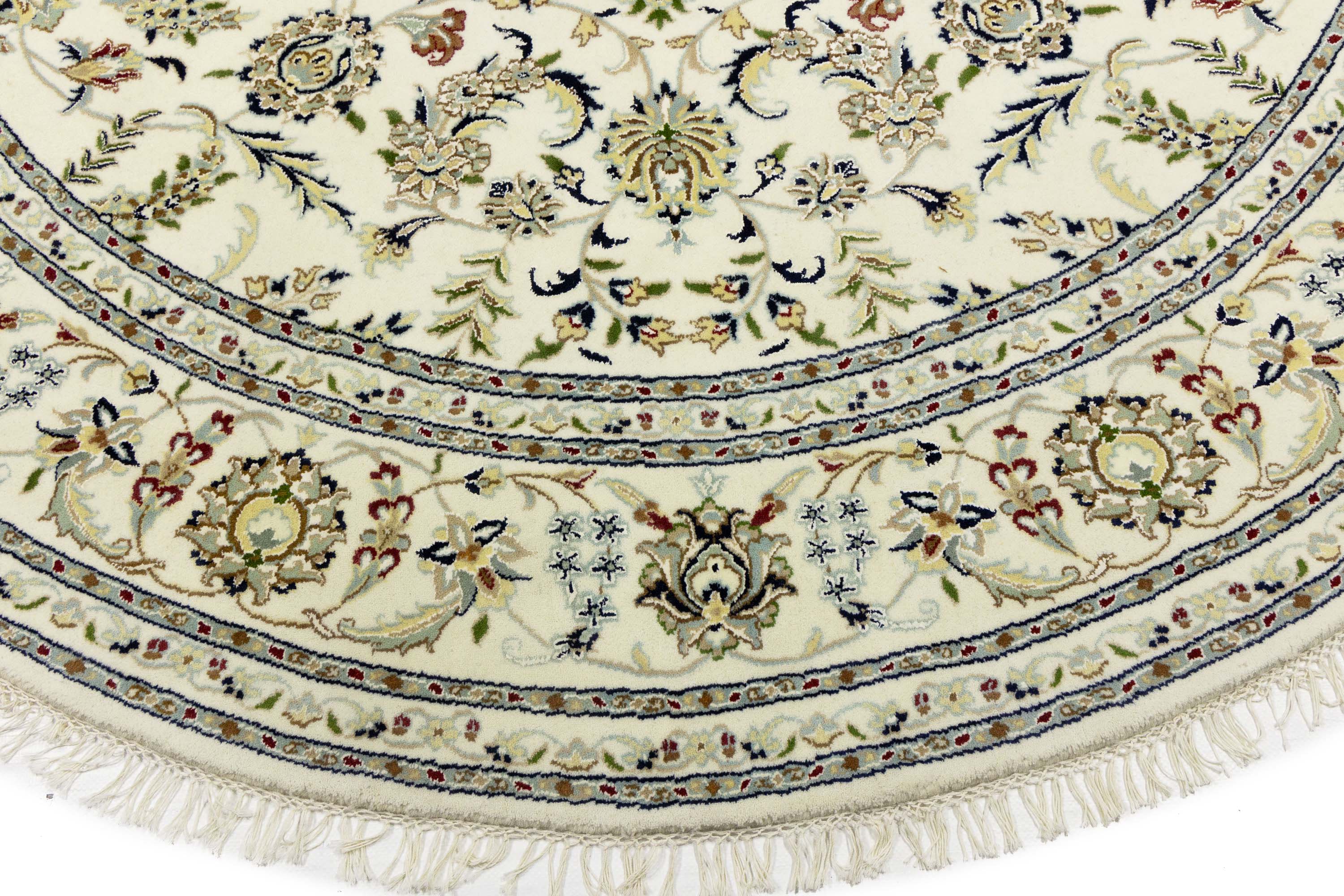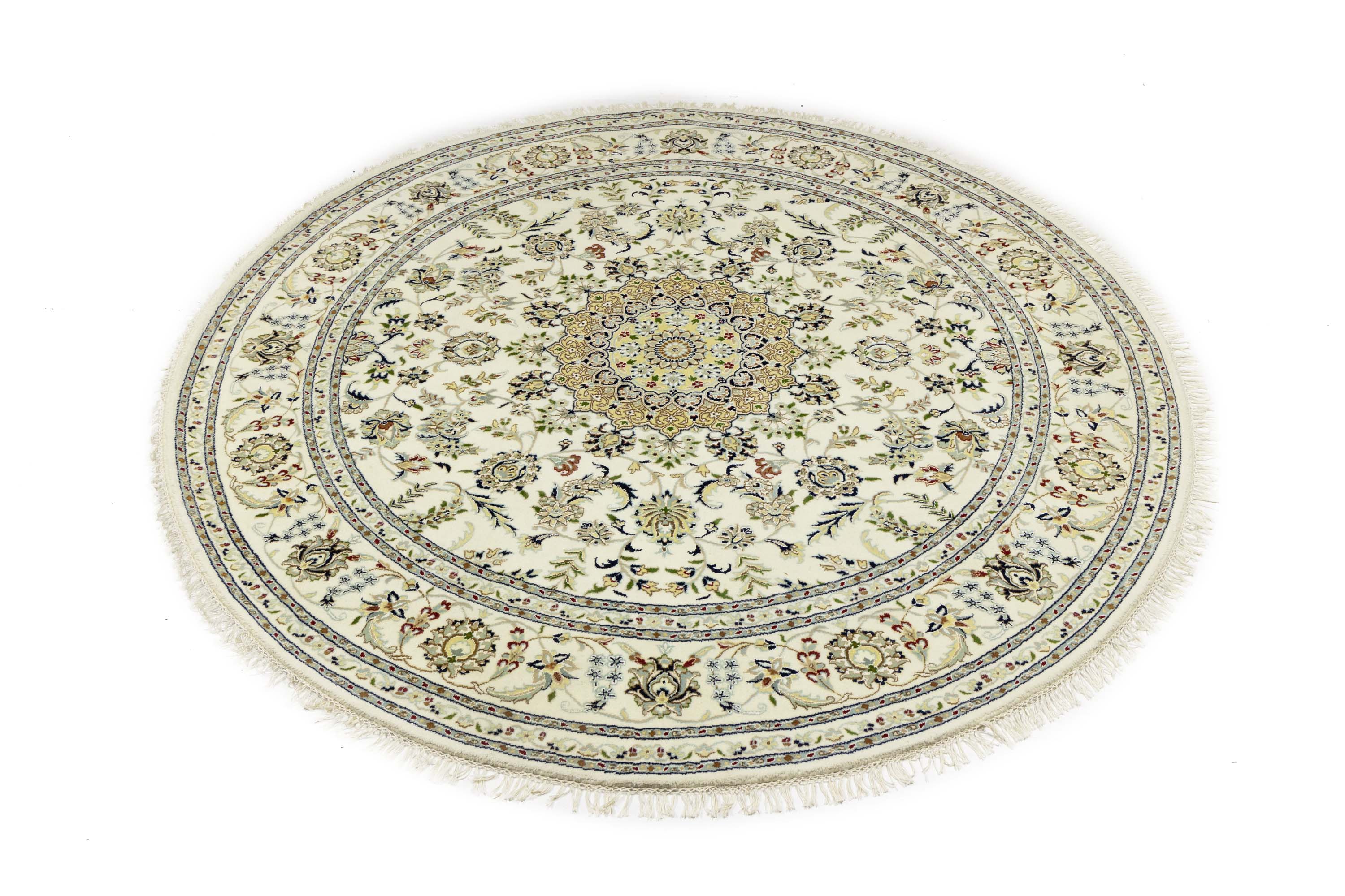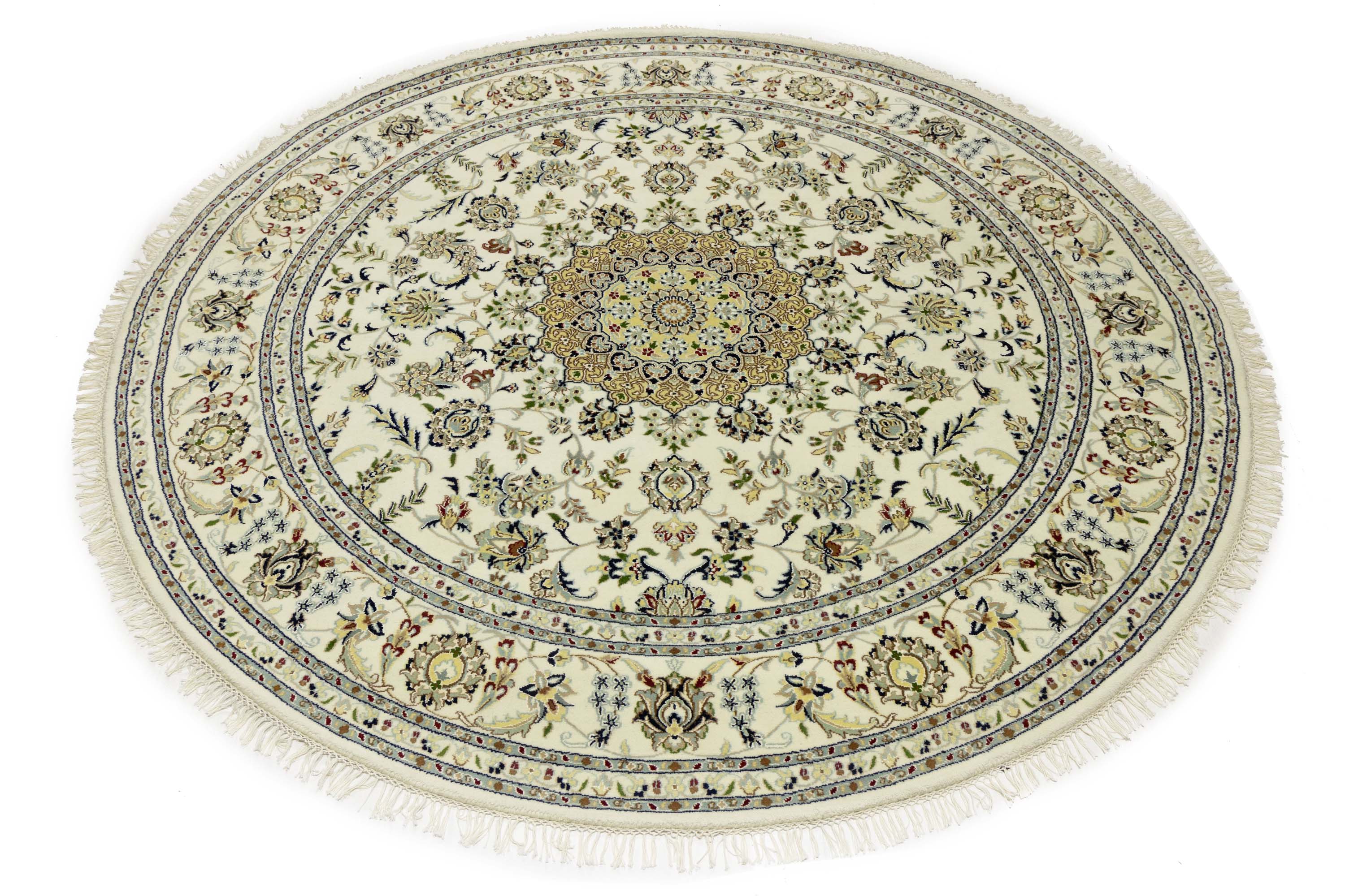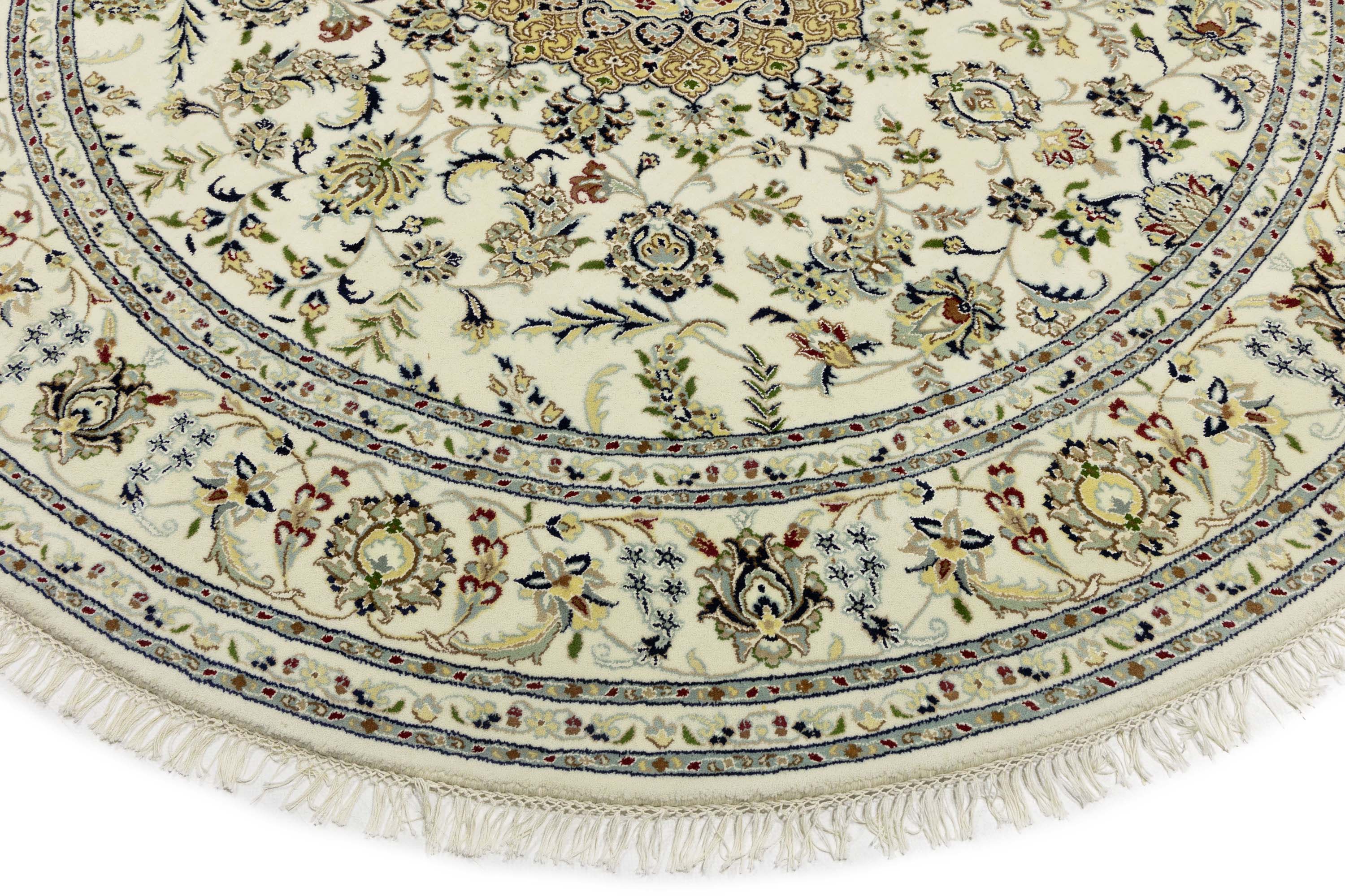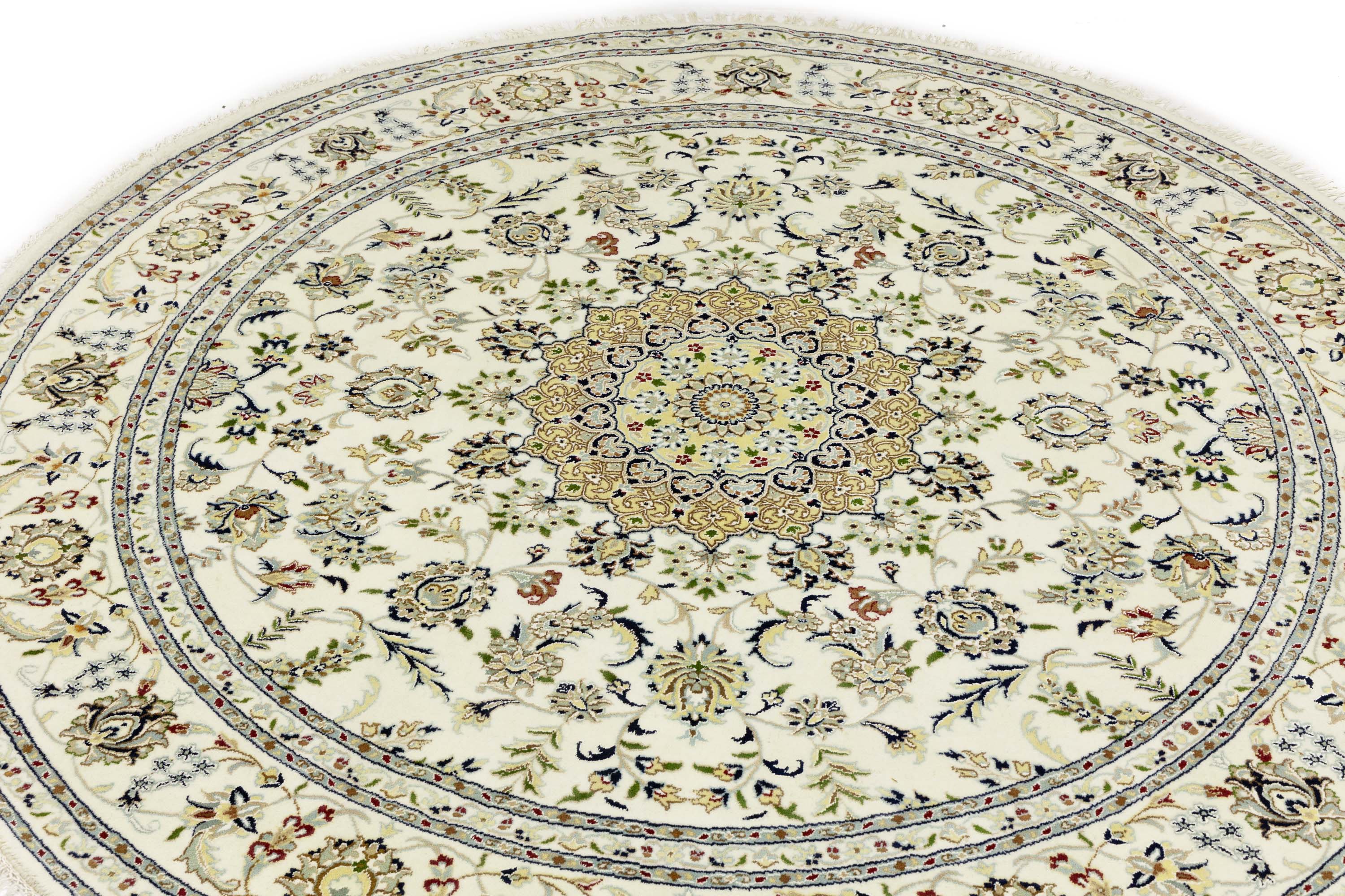 Cream Floral 8x8 Indo-Nain Oriental Round Rug