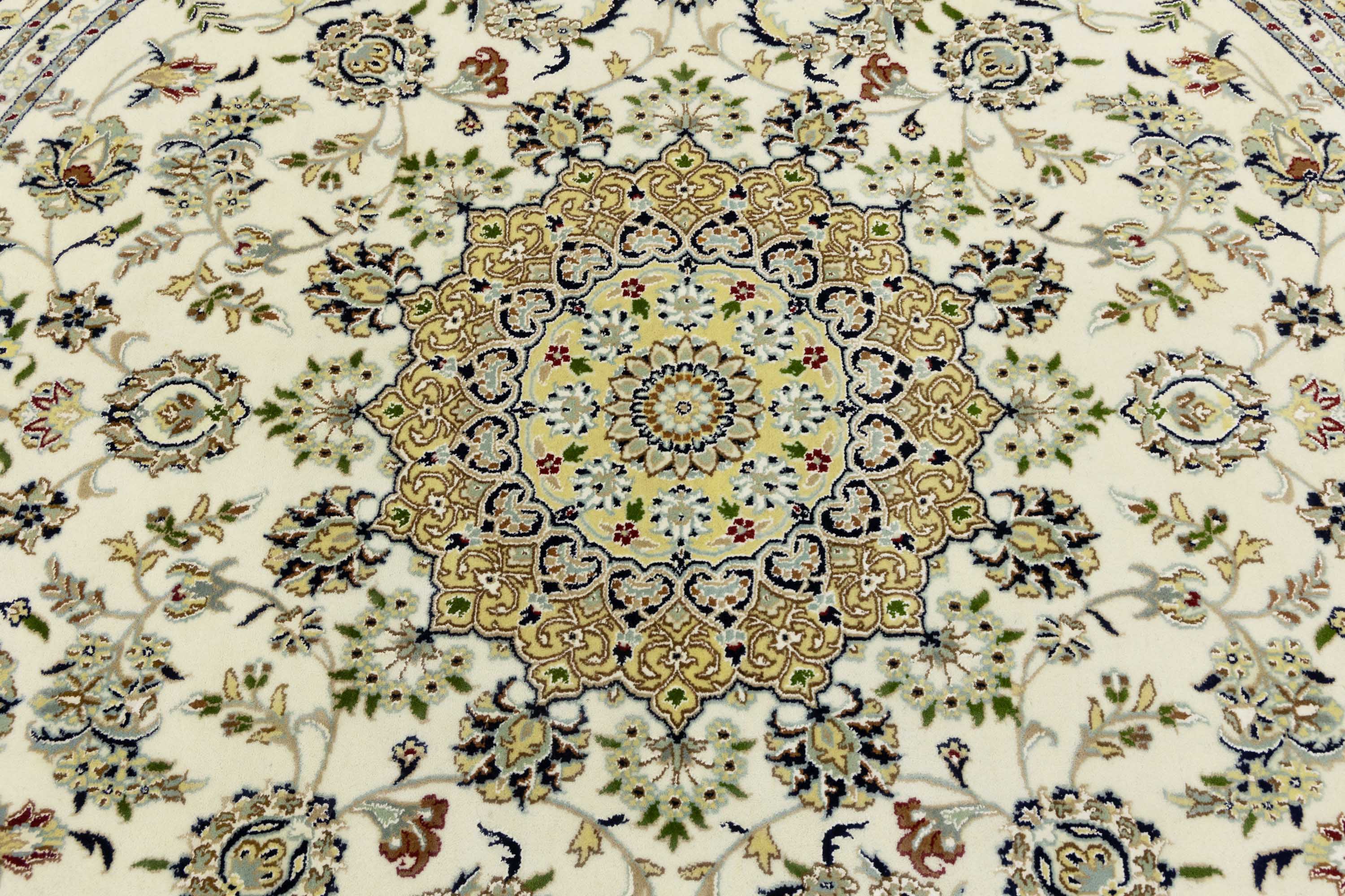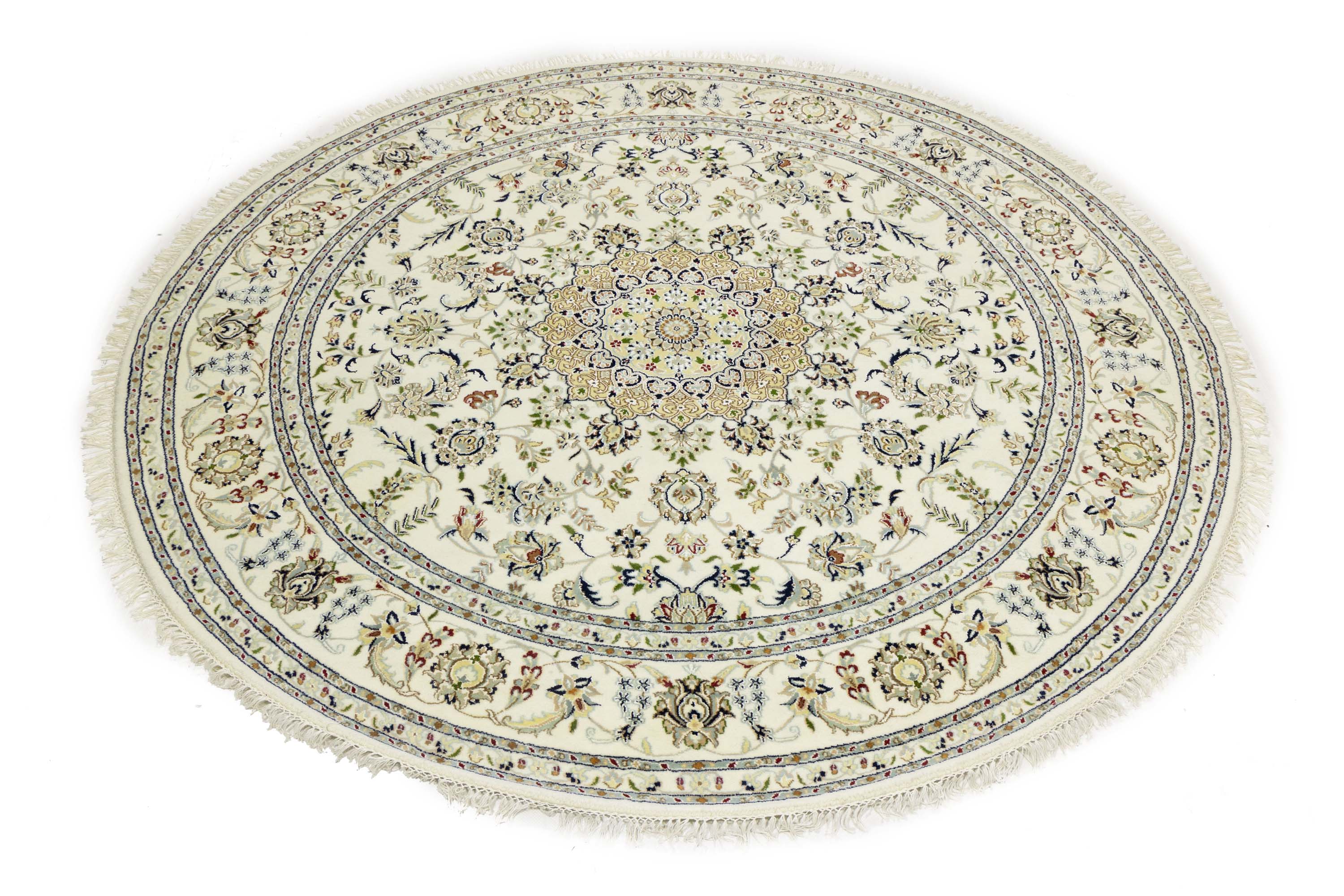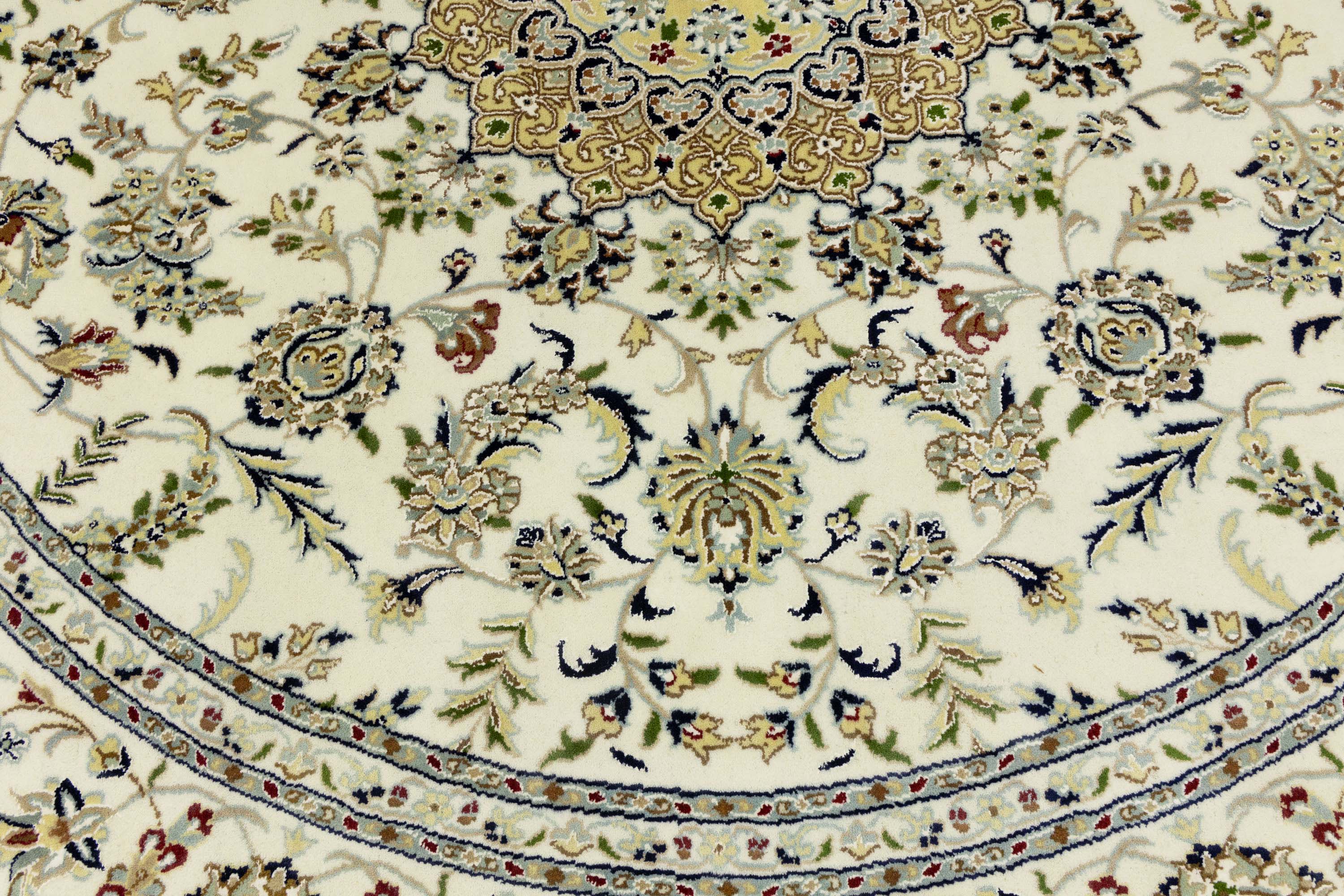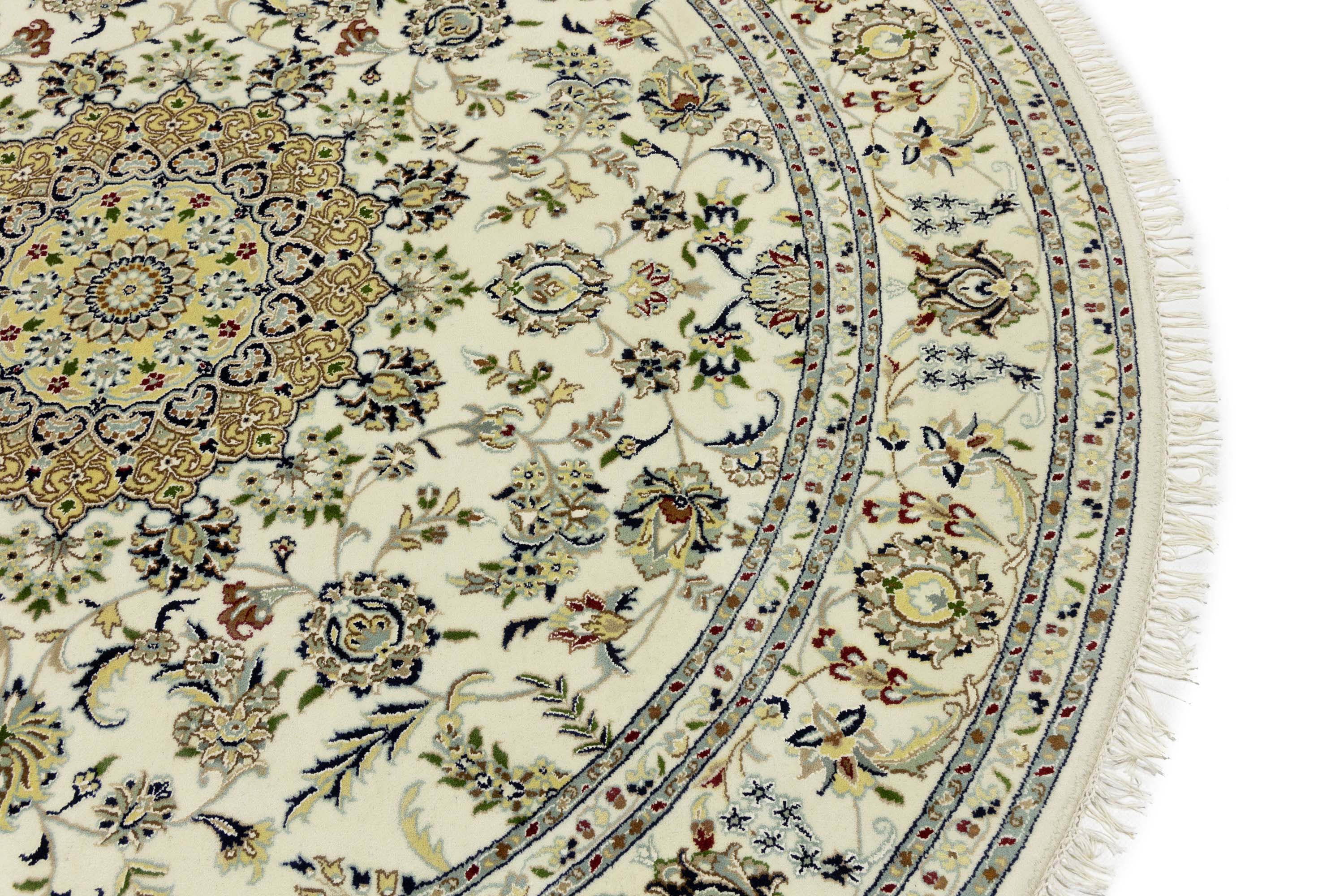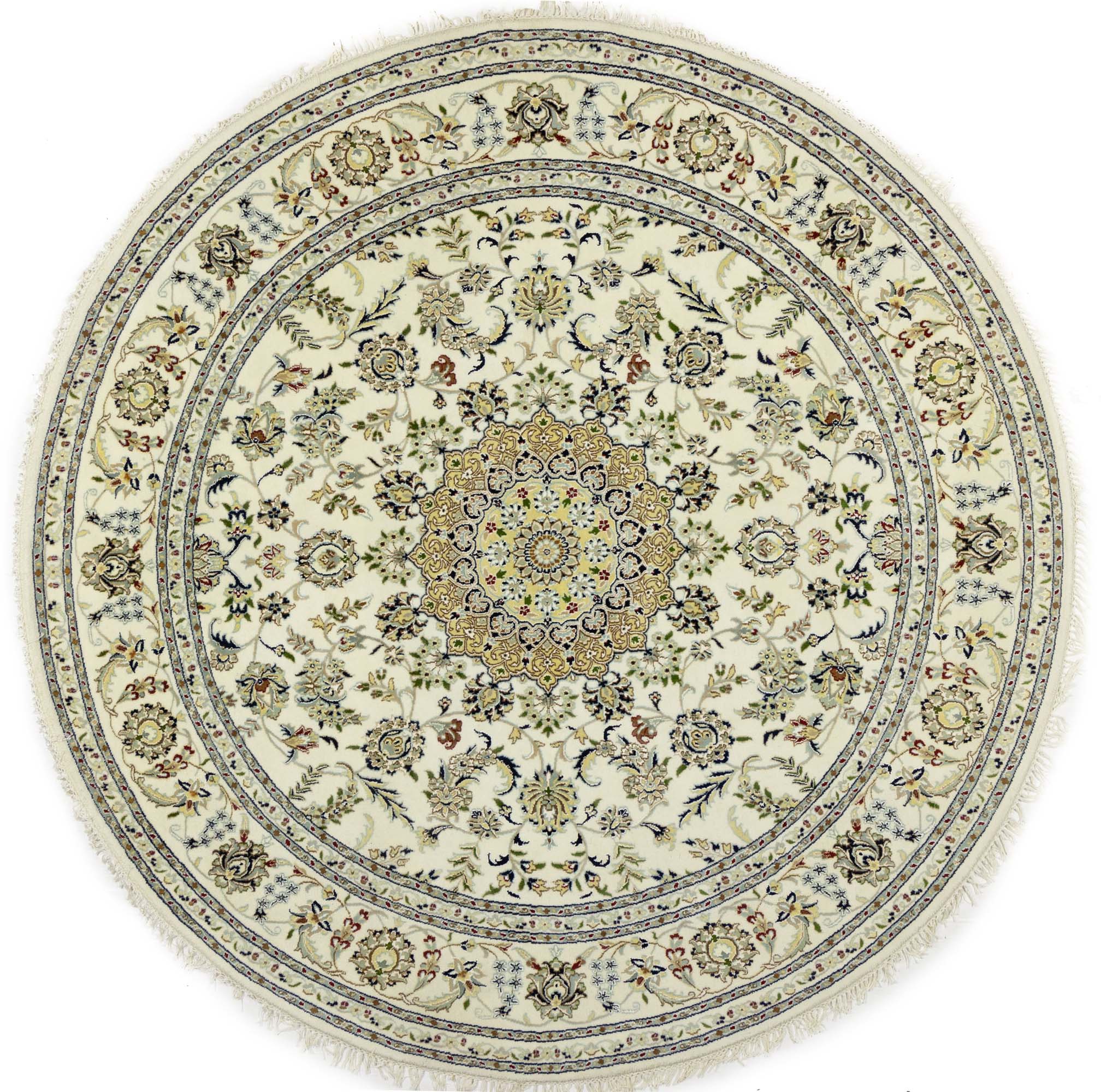 Cream Floral 8x8 Indo-Nain Oriental Round Rug