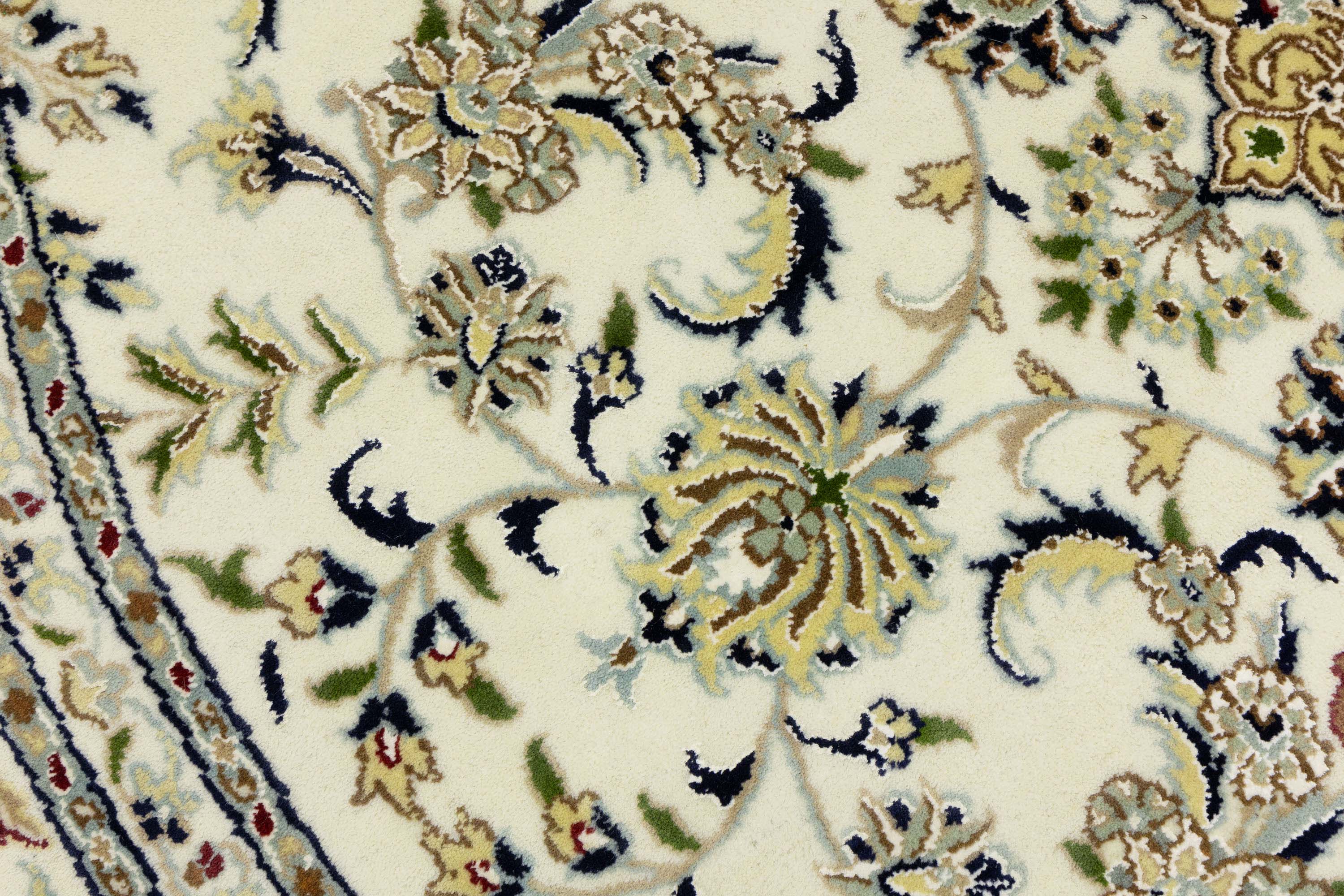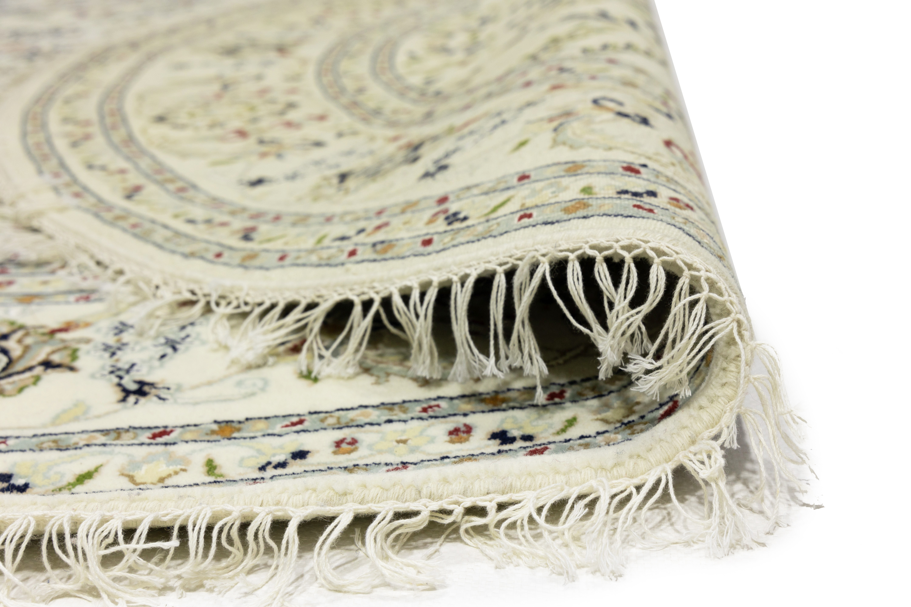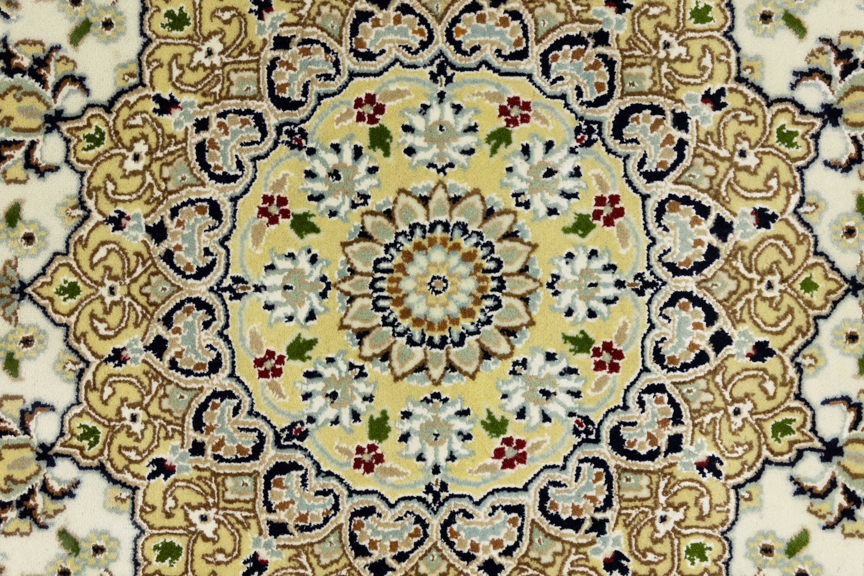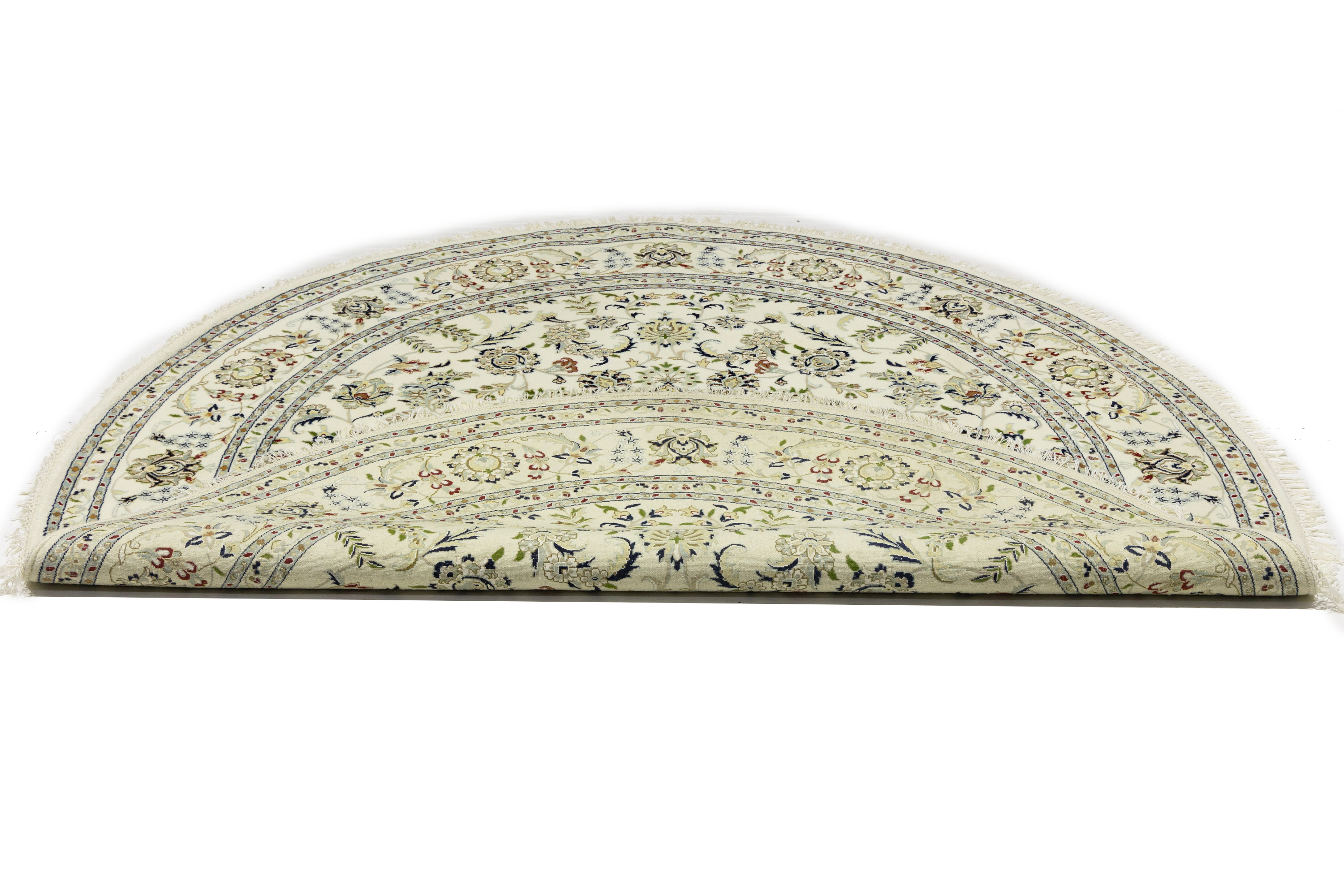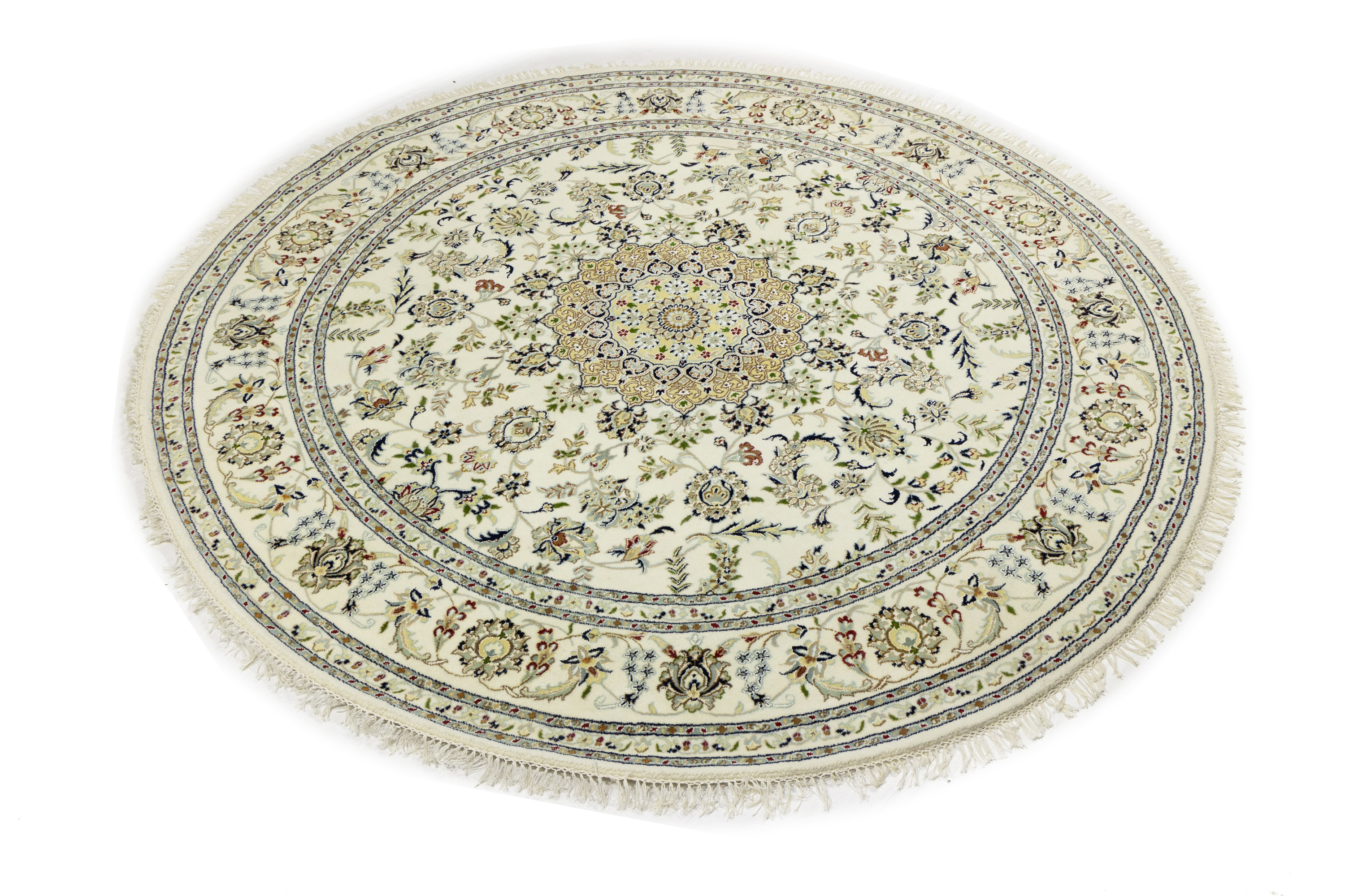 Cream Floral 8x8 Indo-Nain Oriental Round Rug