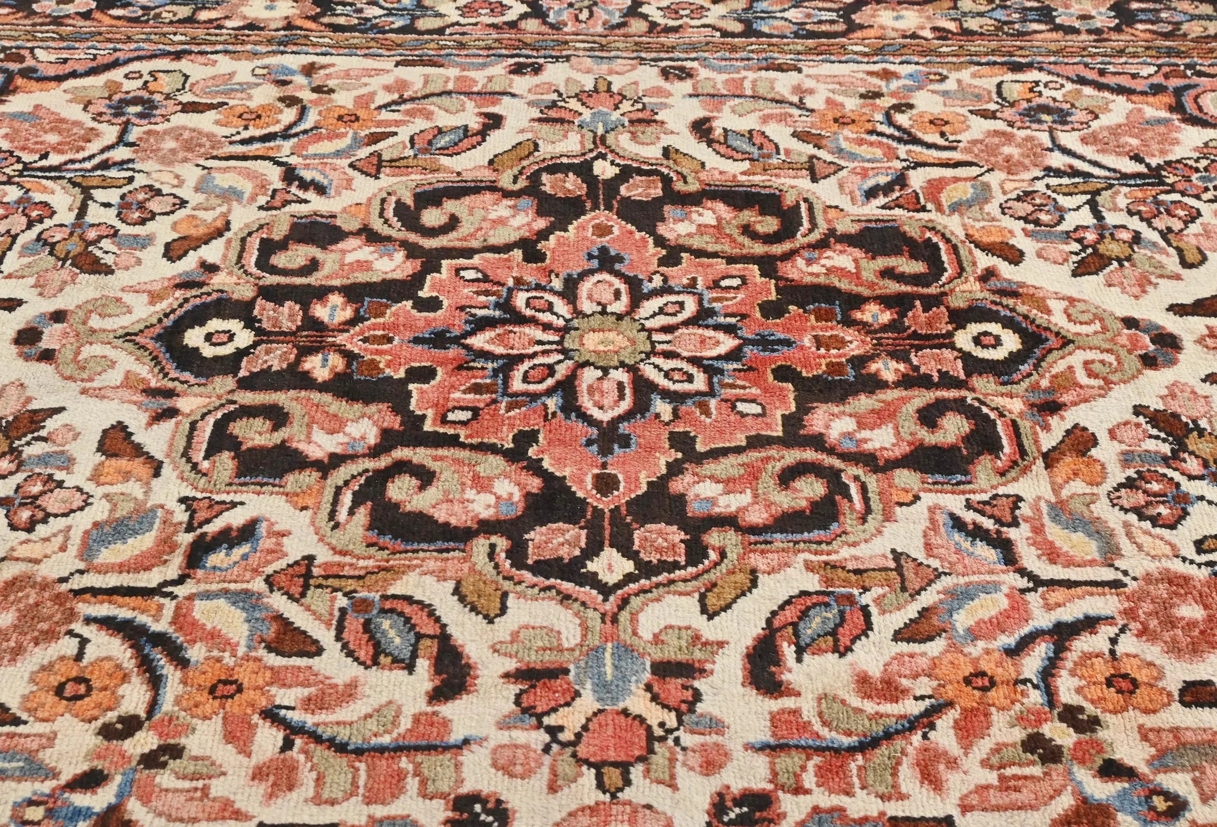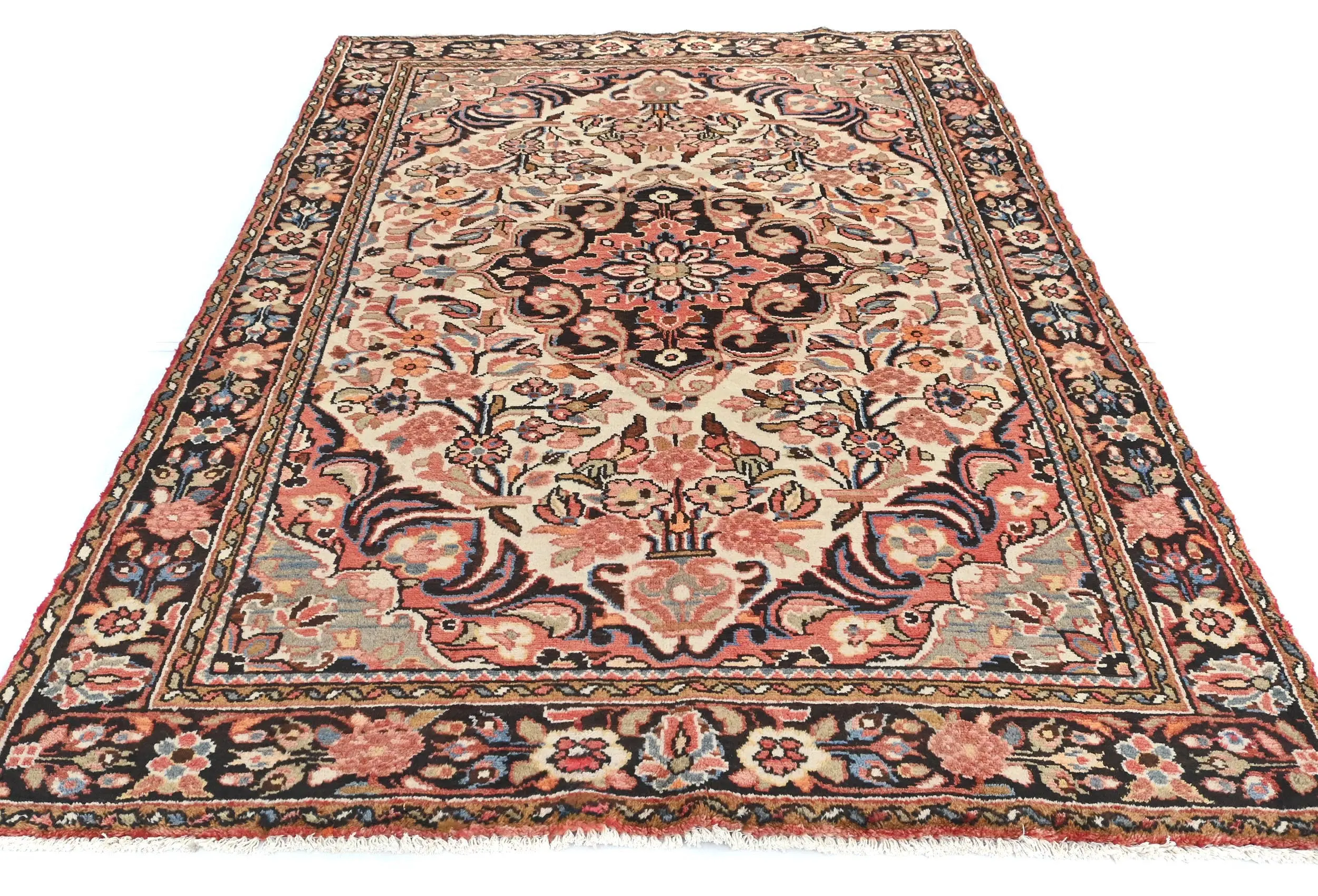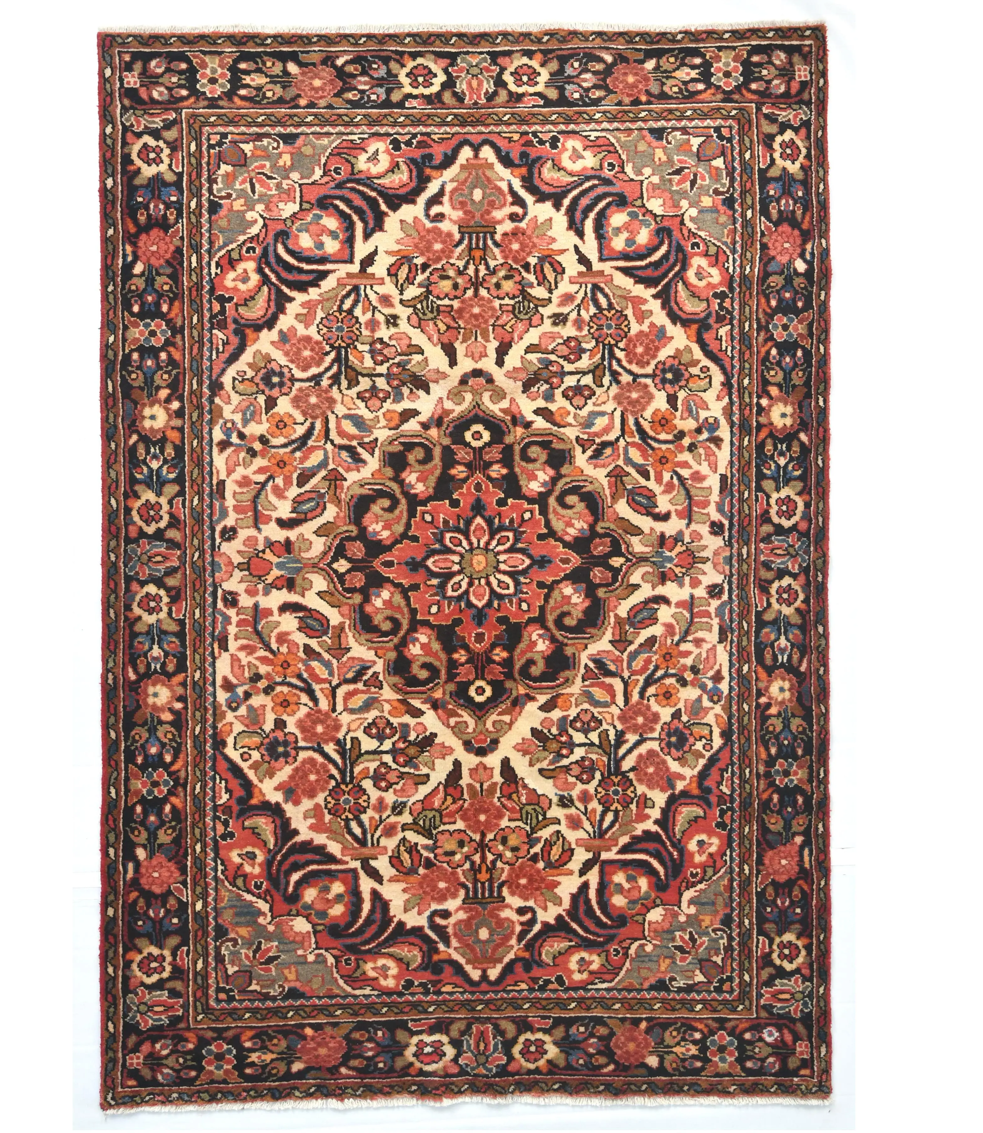 Handmade vintage 5X8'5 Cream rug made with vegetable dyes (fine wool pile and cotton foundation), exceptional knot count, and appealing ancient designs. This Oriental rug never will go out of style and would be among your most valuable treasures.