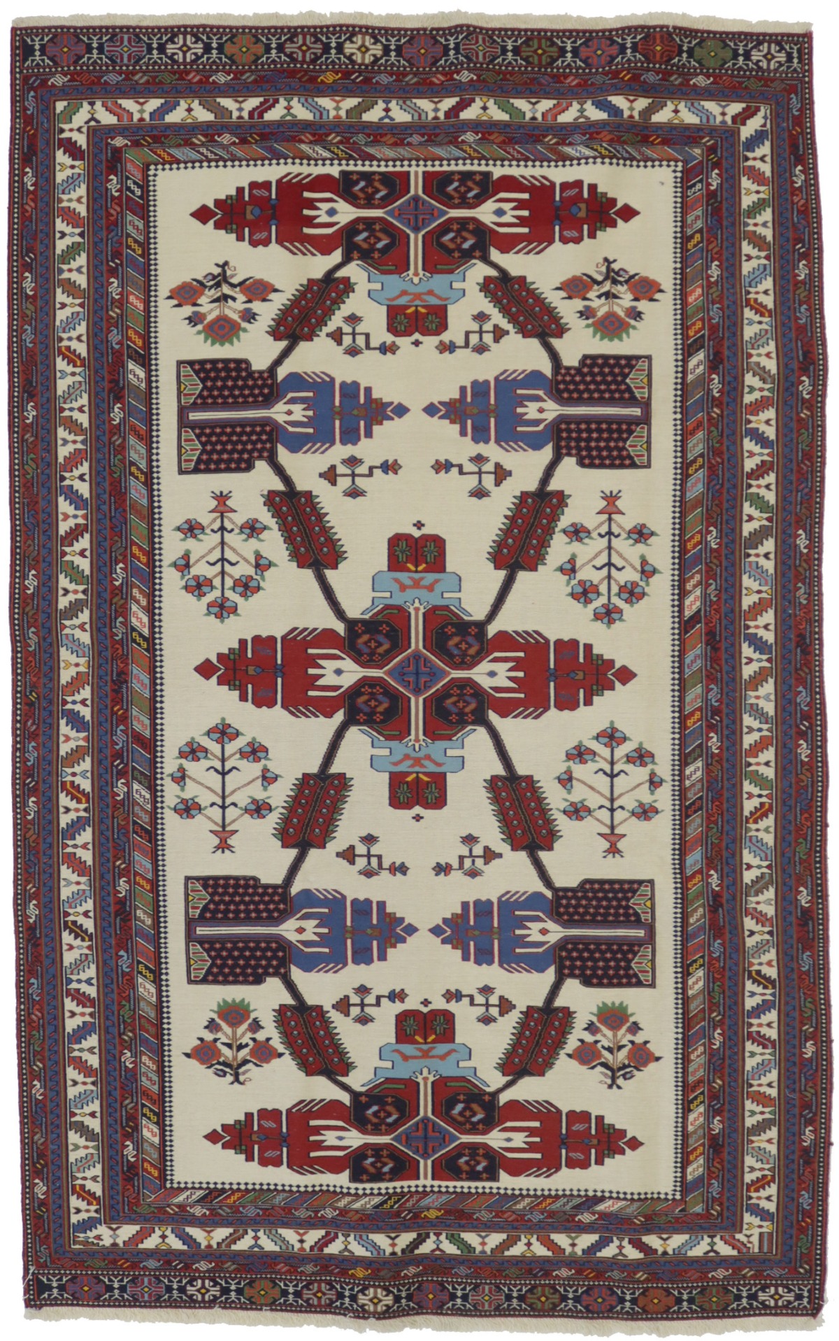 Cream Tribal 4X7 Sumak Persian Rug