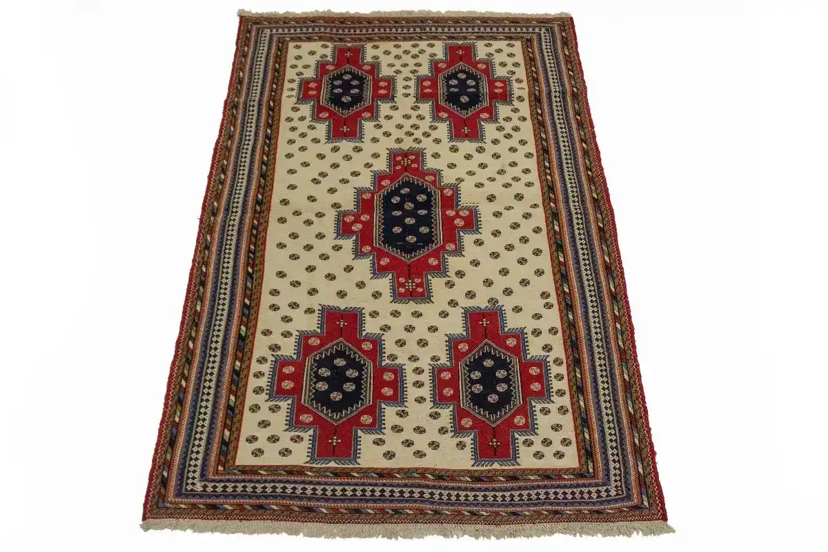 Cream Tribal 4X7 Sumak Persian Oriental Rug