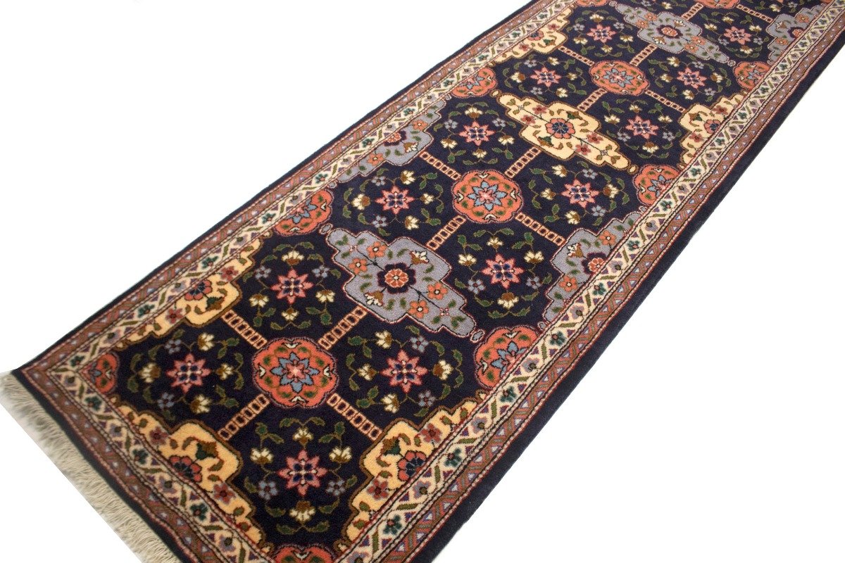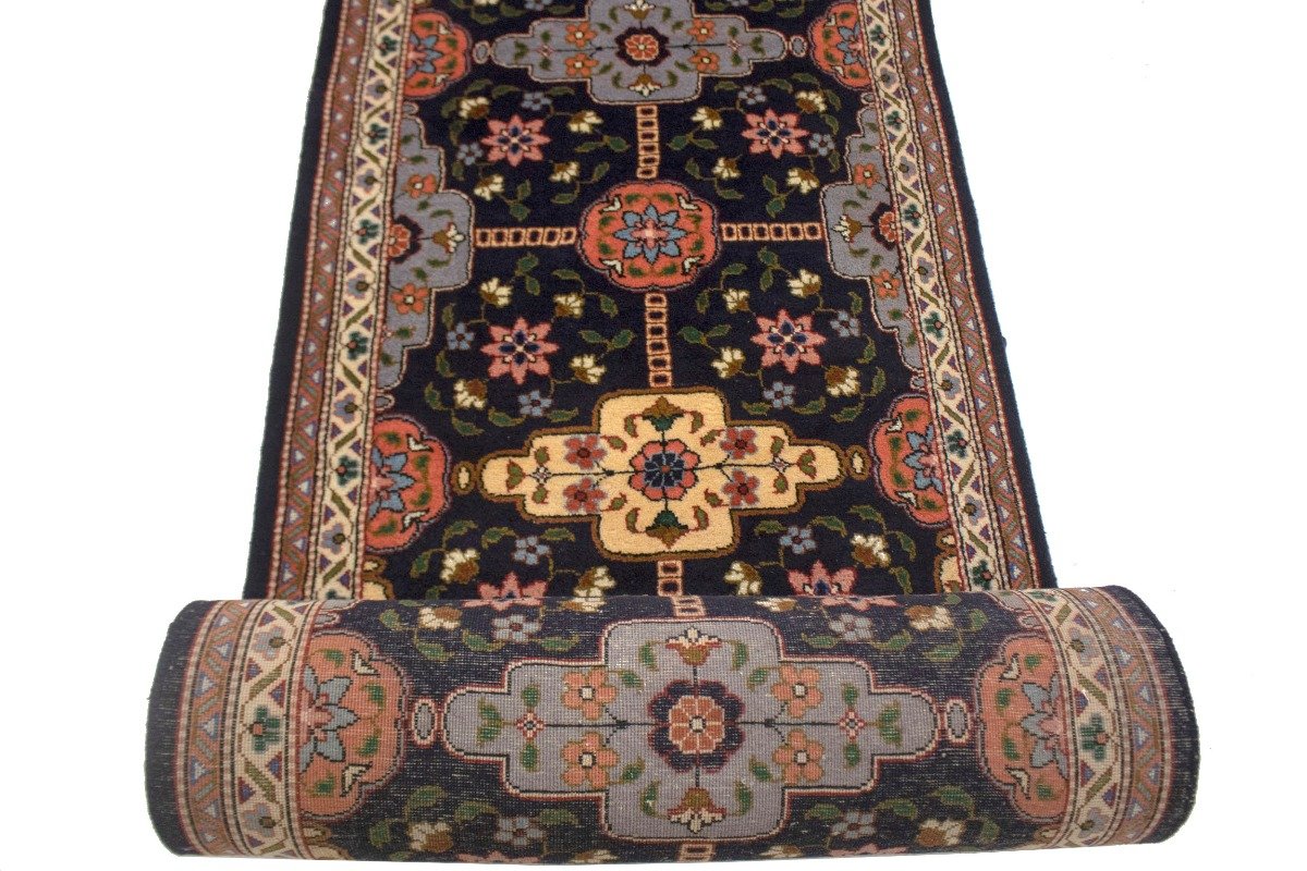 Handmade 3X33 blue runner made with natural dyes (fine wool pile and cotton foundation), superior knot count, and alluring ancient designs. This Oriental runner never will go out of style and would be among your most valuable treasures.