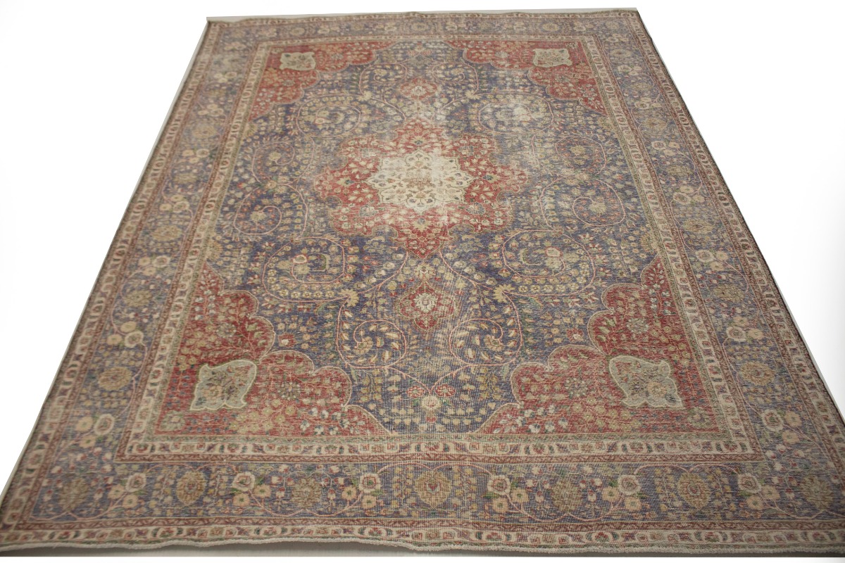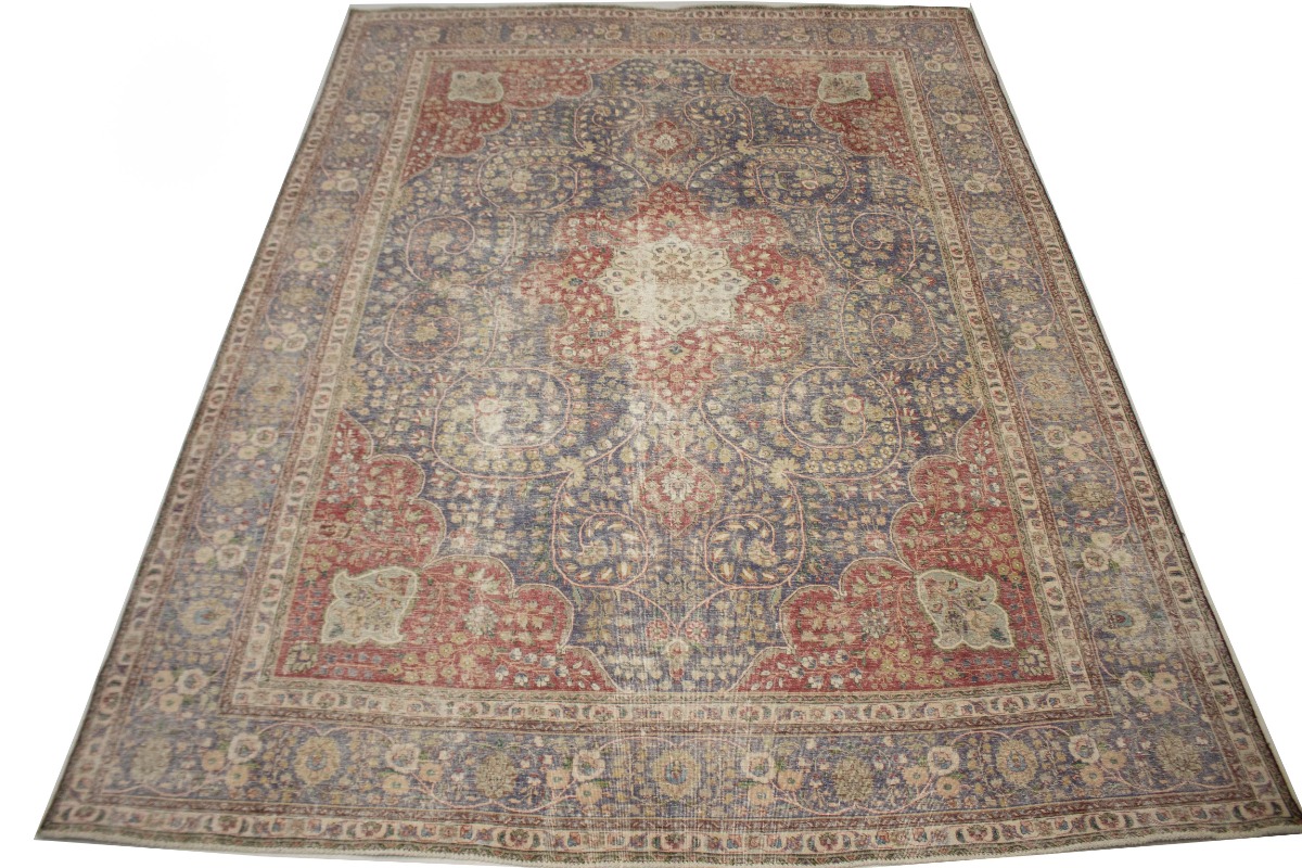 Distressed Purple-navy Antique Floral 9'7X12'6 Tabriz Persian Rug