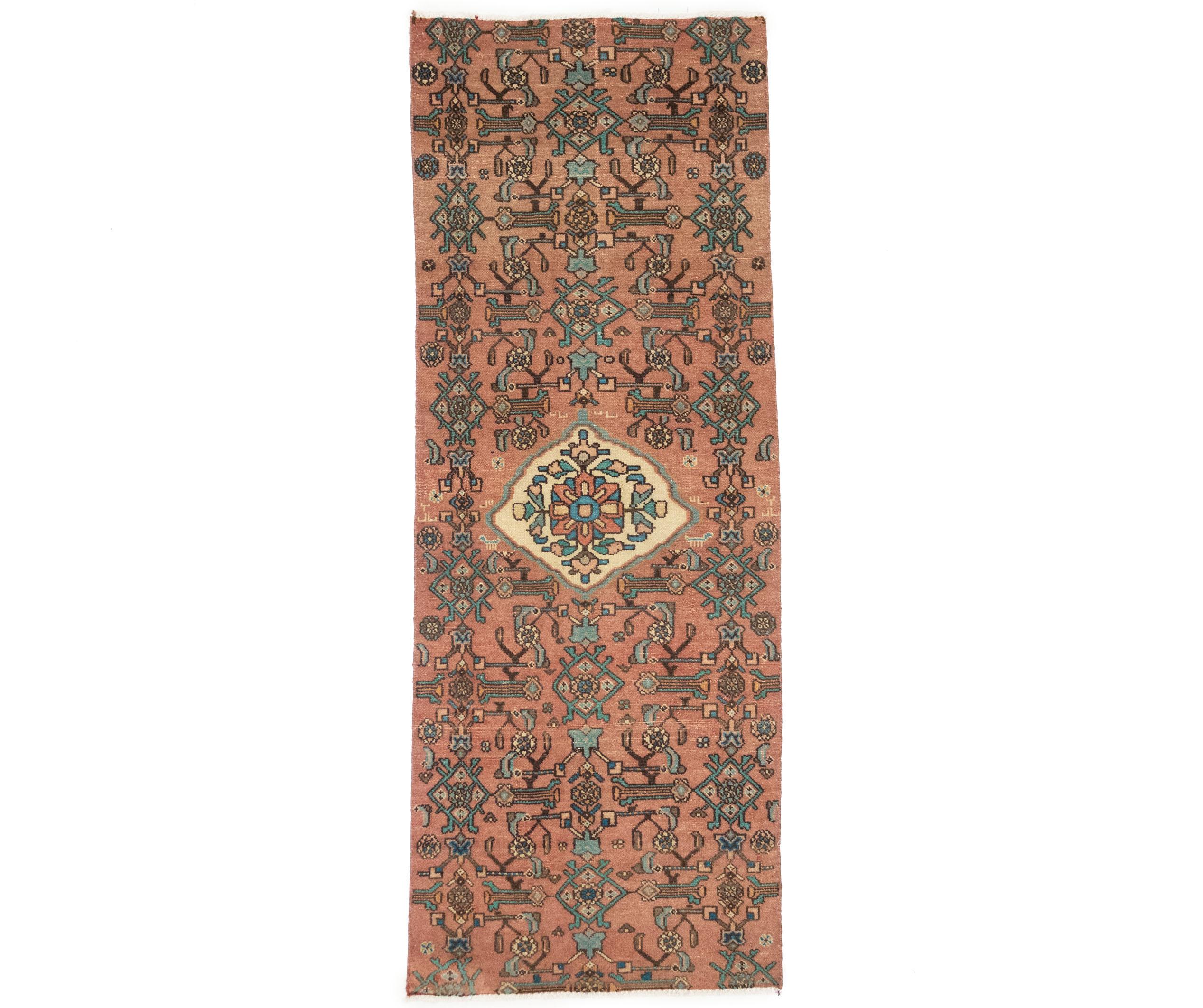 This original 3x7 muted colors vintage Persian runner was crafted by the hands of skilled weavers enthused by a variety of lovely artistic designs, to recreate the aged look of the unique piece with a richness of color and beautifully elaborated background field. What set this tribal Oriental area runner from the others are the material and dye used (wool pile and cotton foundation), knot count, ancient designs, fantastic grades, and its regional historical connection: it has deep roots, from the story of the people who produced it to the meaning of the symbols and colors displayed across its canvas that have been praised for centuries. This home décor carpet will be completely cozy and inviting that never will go out of style! Also, this Oriental runner would be among your most valuable treasures, it is a great investment that increase in value over time, and it will last for generations because was woven with high-quality, all-natural wool; it won’t rip, tear, or shed. Environmentally friendly, opulent yet affordable; this Persian rug will give you a thorough amount of character to help define your living space with sophistication and warmth that will capture the eyes and attention of your audience (homeowners, designers, decorators, family and friends). EB-7951