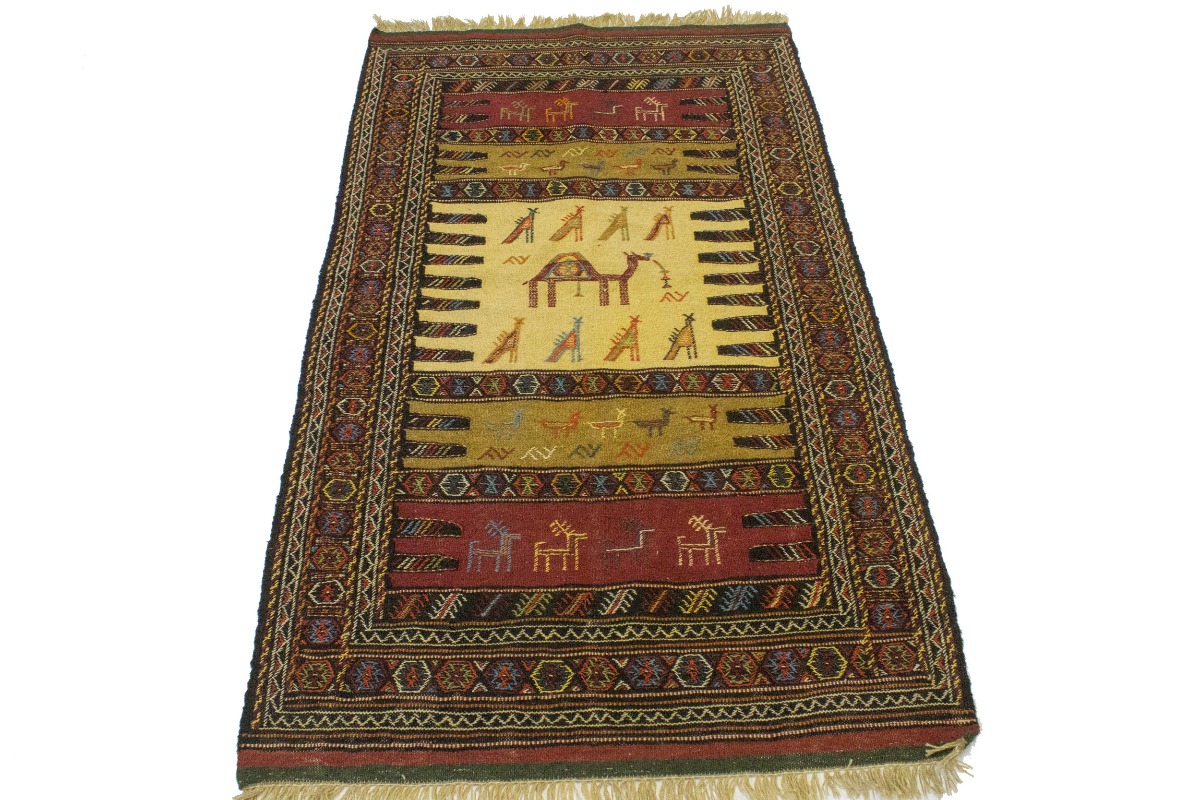 Golden Beige Tribal 3X6 Sumak Herati Persian Rug