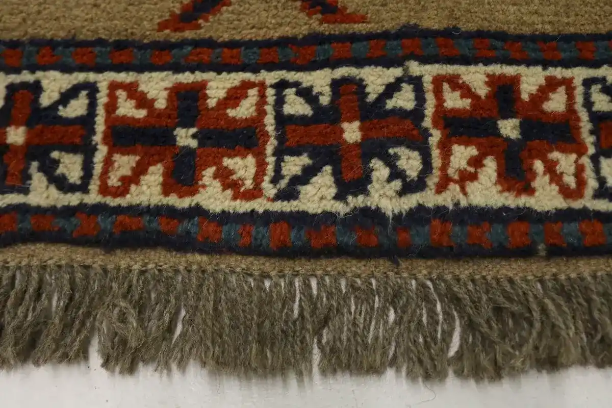 This authentic 4X7 khaki Persian rug was finely knotted by the hands of weavers influenced by a variety of amazing artistic designs, to recreate the aged look of the exceptional piece with a richness of color and embellished background field. What set this tribal Oriental area rug from the others are the material and dye used (wool pile and cotton foundation), knot count, antique designs, fantastic grades, and its regional historical connection: it has deep roots, from the story of the people who produced it to the meaning of the symbols and colors displayed across its canvas that have been praised for centuries. This home décor carpet will be completely cozy and inviting that never will go out of style! Also, this Oriental rug would be among your most valuable treasures, it is a great investment that increase in value over time, and it will last a lifetime because was woven with high-quality, all-natural wool; it won’t rip, tear, or shed. Eco-friendly, opulent yet affordable; this Persian rug will give you an extra pop of character to help define your home environment with luxury and warmth that will capture the eyes and attention of your audience (homeowners, designers, decorators, family and friends). EB-1155