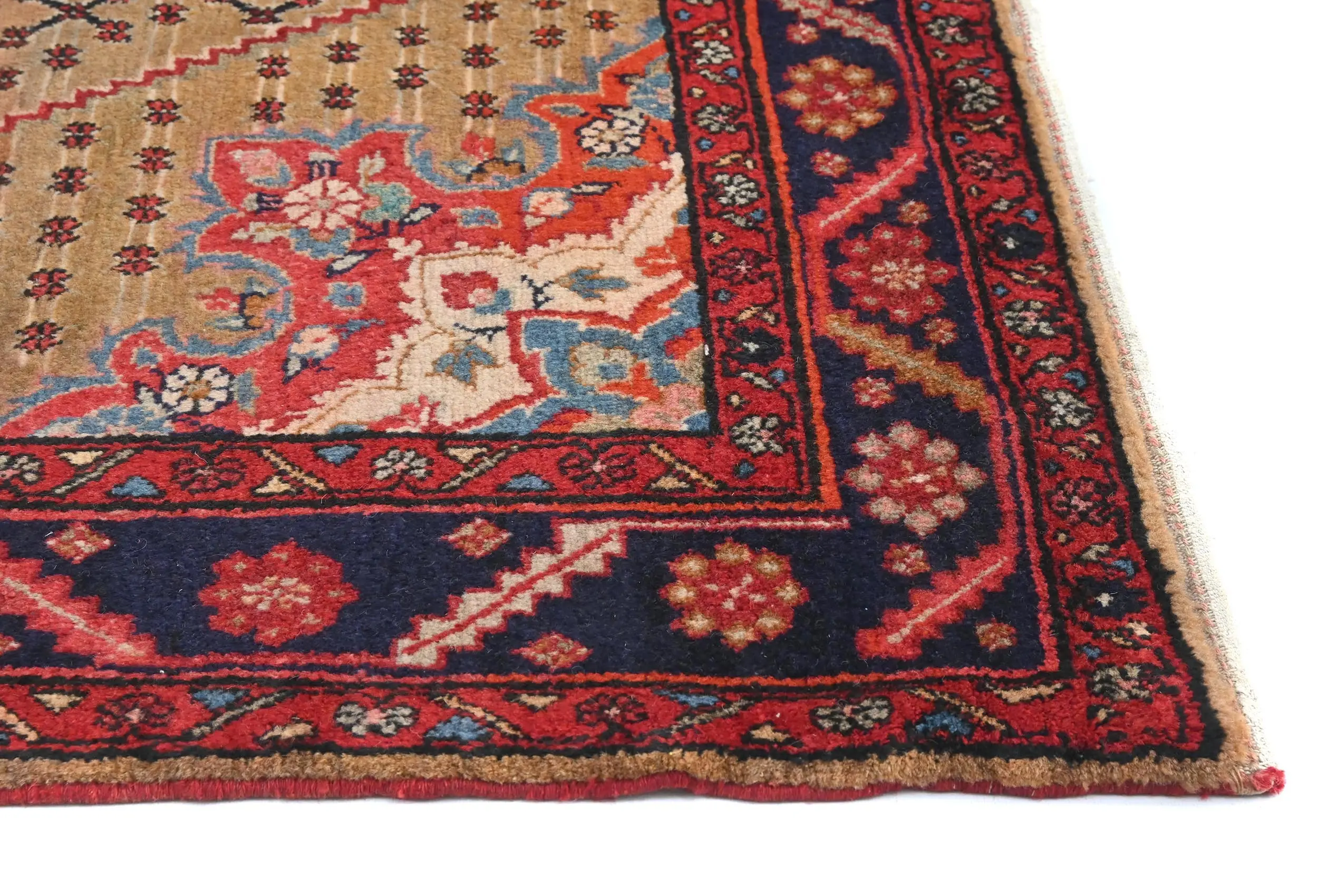 Handmade semi antique 5X10 Khaki Persian runner made with vegetable dyes (fine wool pile and cotton foundation), superior knot count, and appealing ancient designs. This Oriental runner never will go out of style and would be among your most valuable treasures.