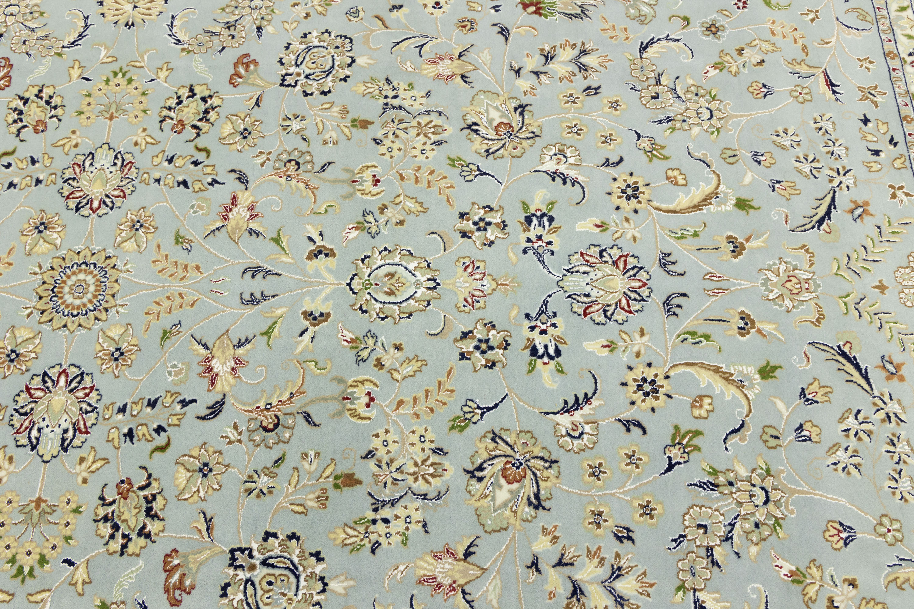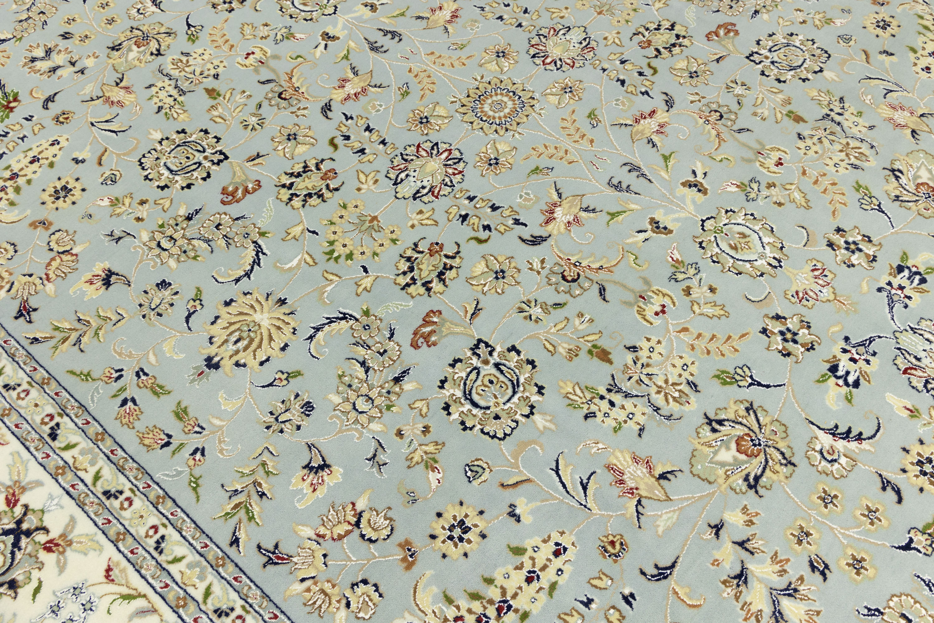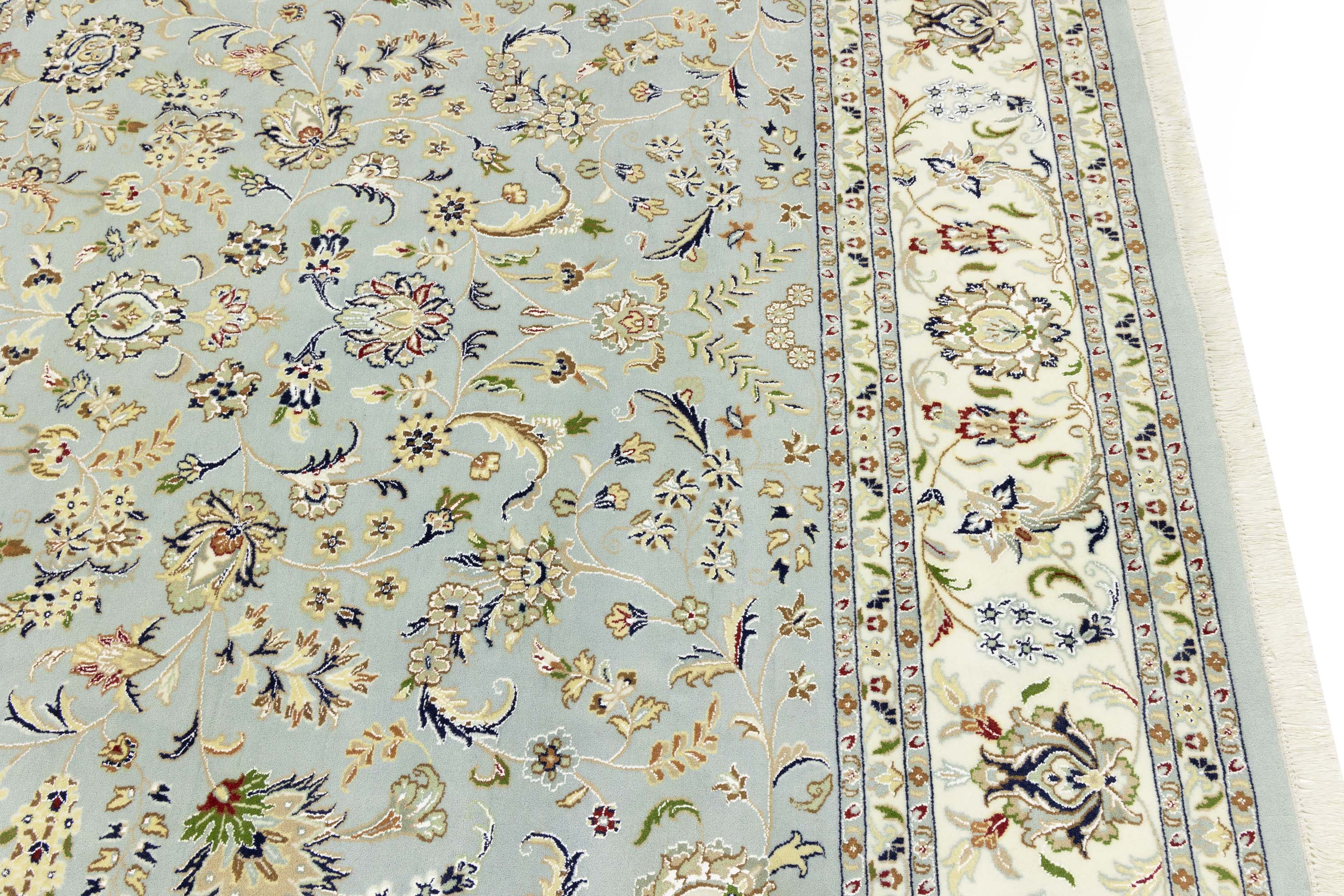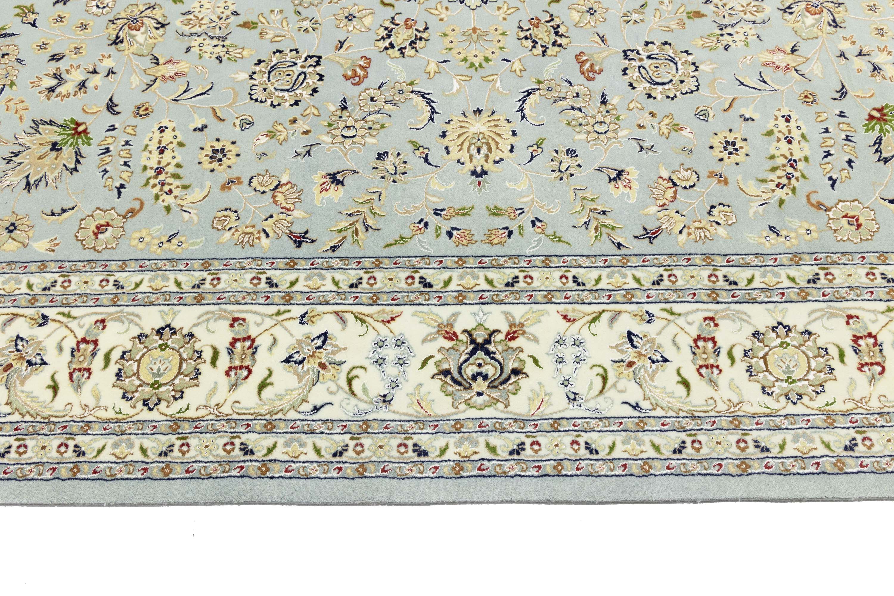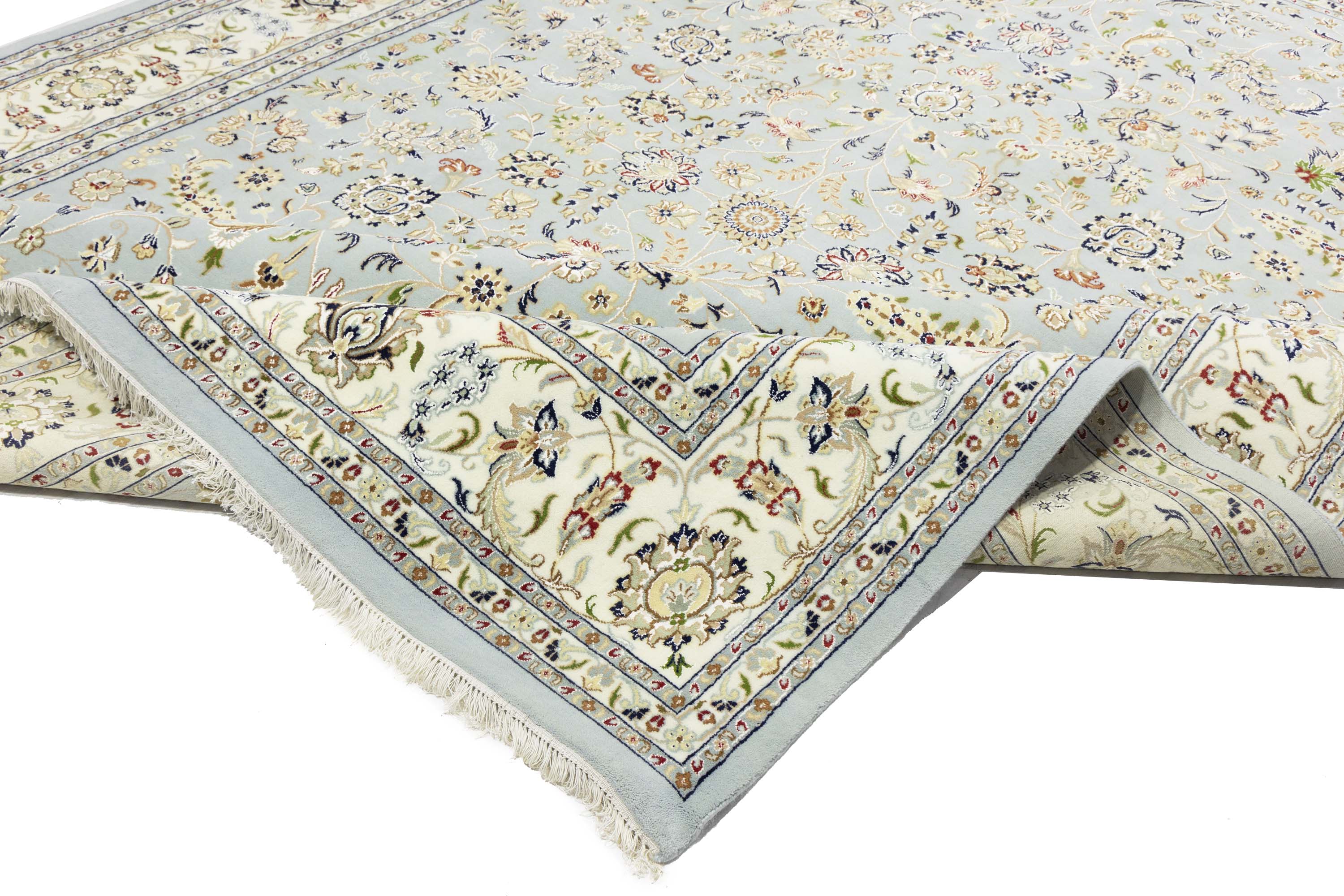 Light Blue Floral 10x14 Indo-Nain Oriental Area Rug