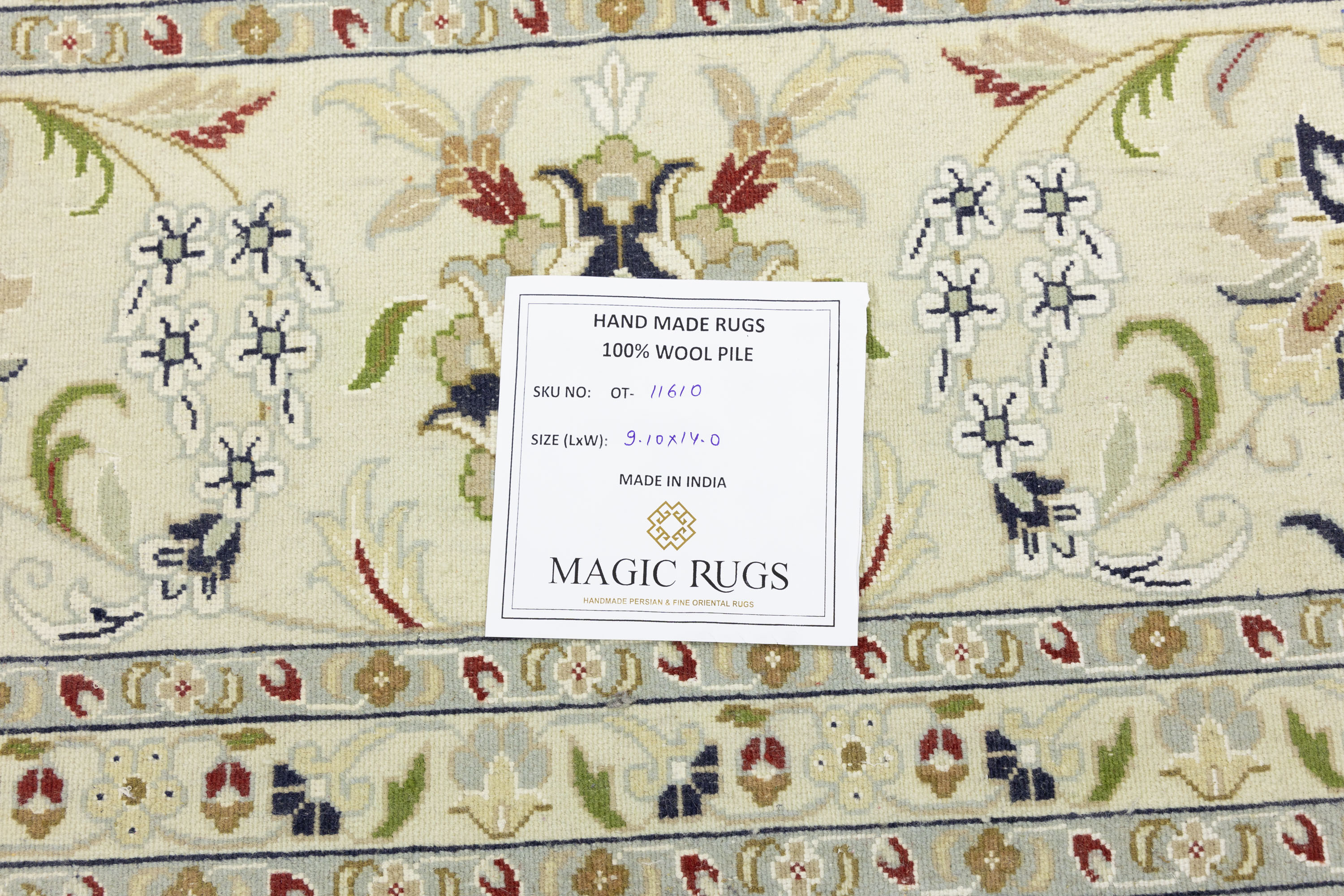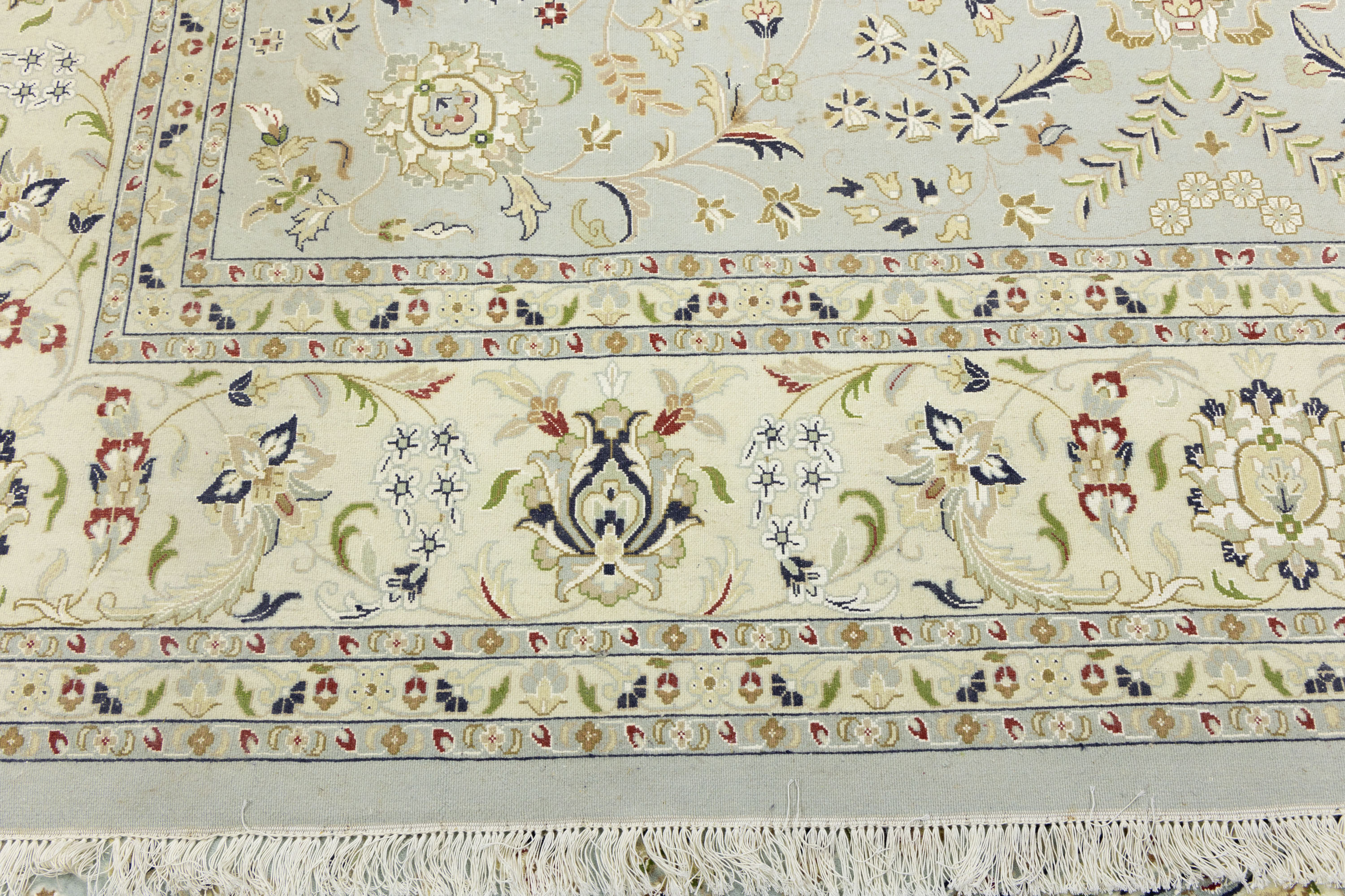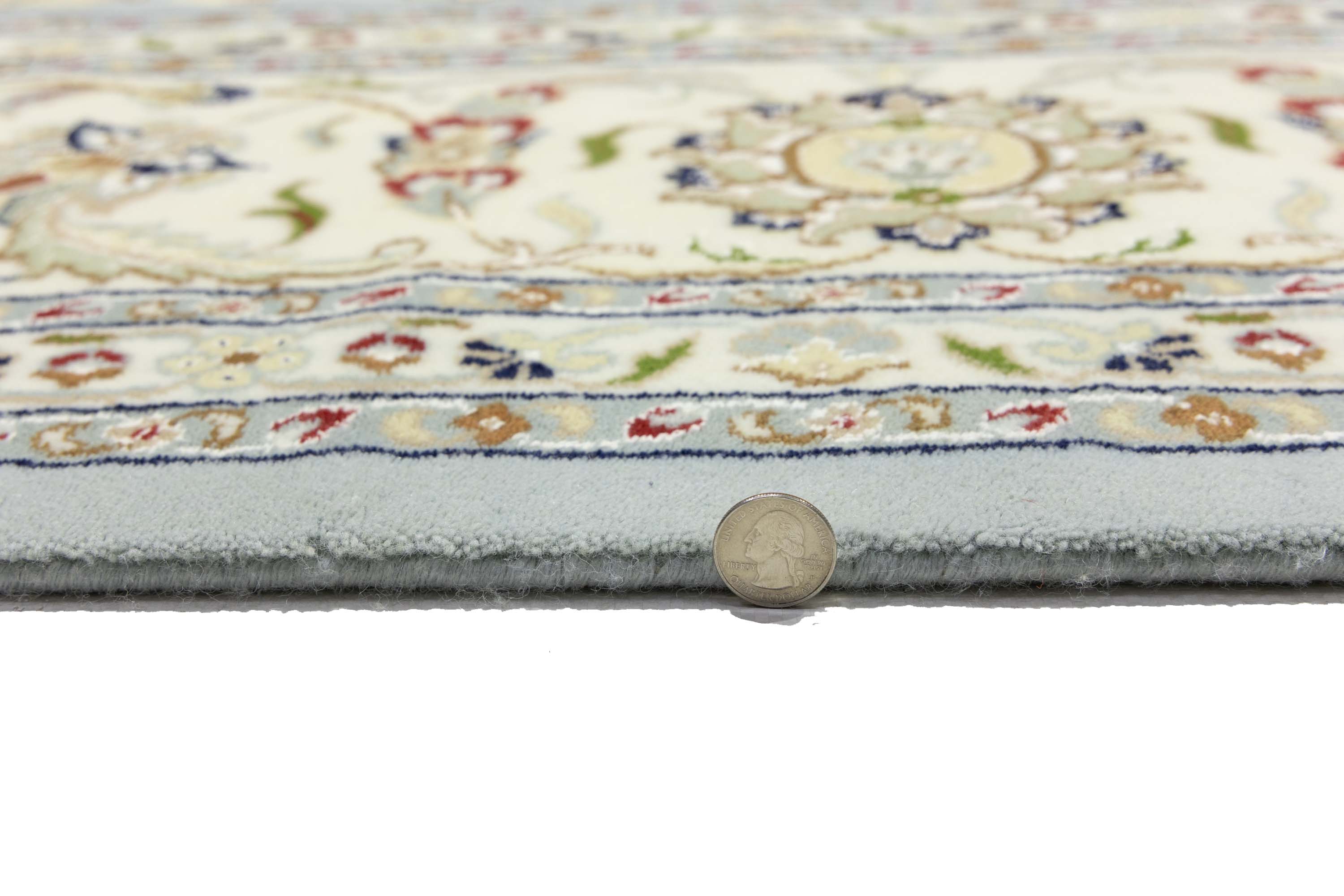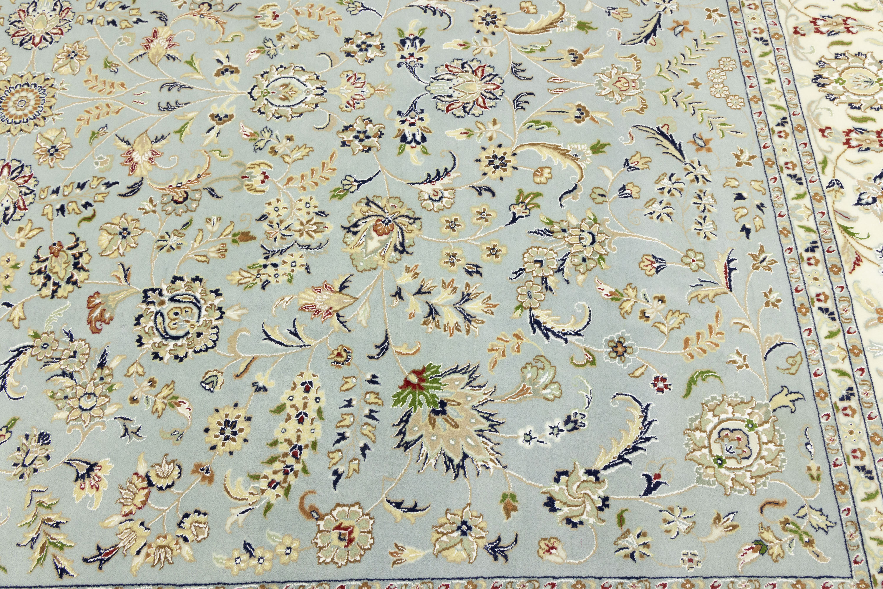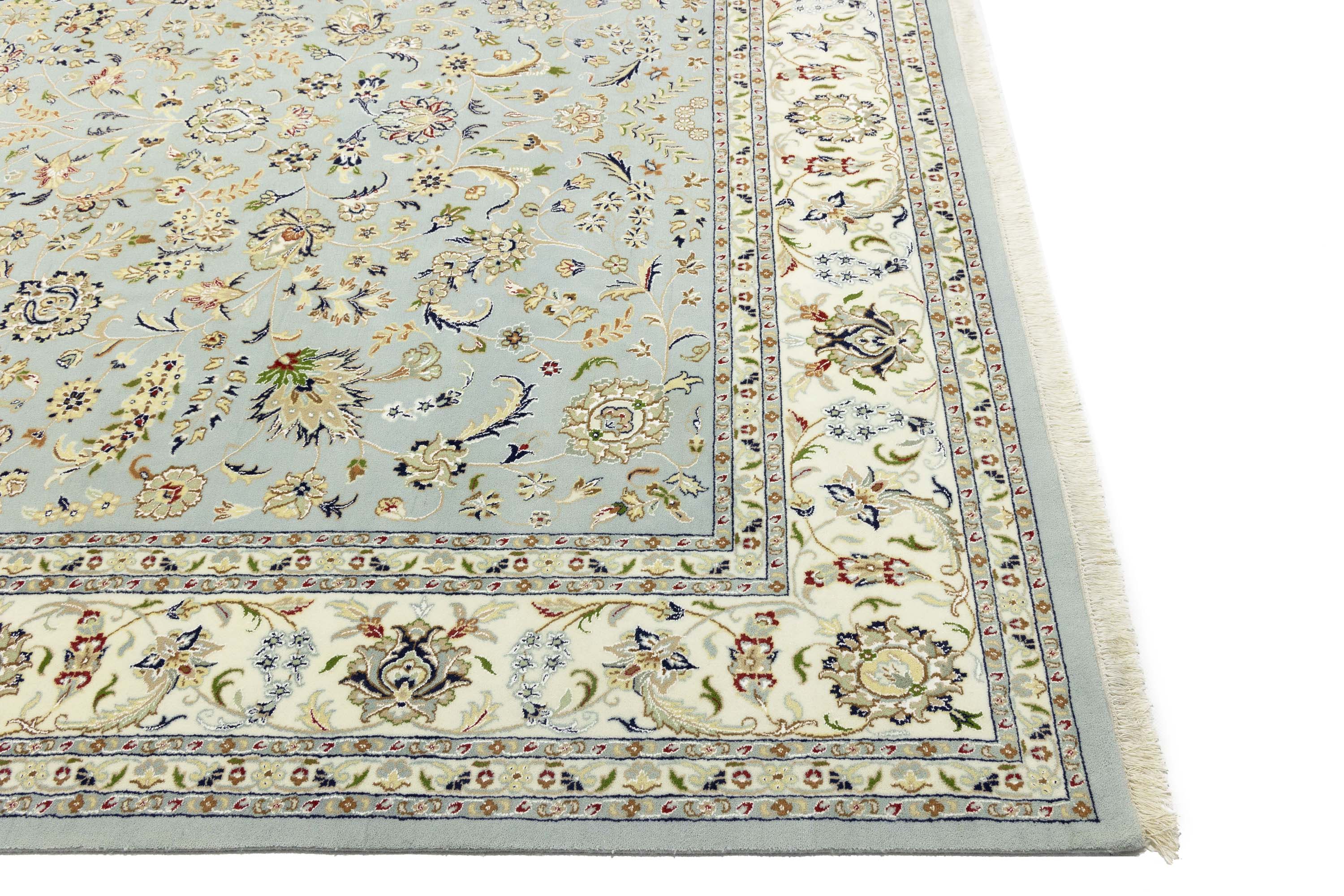 Light Blue Floral 10x14 Indo-Nain Oriental Area Rug