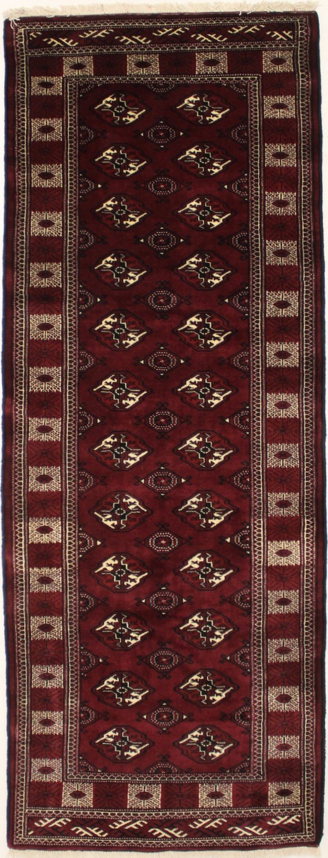 This Amazing 3X9 Turkoman Hallway Runner was made by the hands of gifted weavers inspired by a variety of Fantastic artistic designs, to recreate the aged look of the original piece with a richness of color and beautifully elaborated Geometric background field. This Wine Red Wool Persian rug will be completely cozy and inviting that never will go out of style! Also, this Geometric Hand Knotted Oriental rug would be among your most valuable treasures, it is a great investment that increase in value over time, and it will last for generations because was woven with high-quality Wool. Environmentally friendly, opulent yet affordable; this Recently Made Fantastic Turkoman rug will give you a thorough amount of character to help define your living space with sophistication and warmth that will capture the eyes and attention of your audience (homeowners, designers, decorators, family and friends).