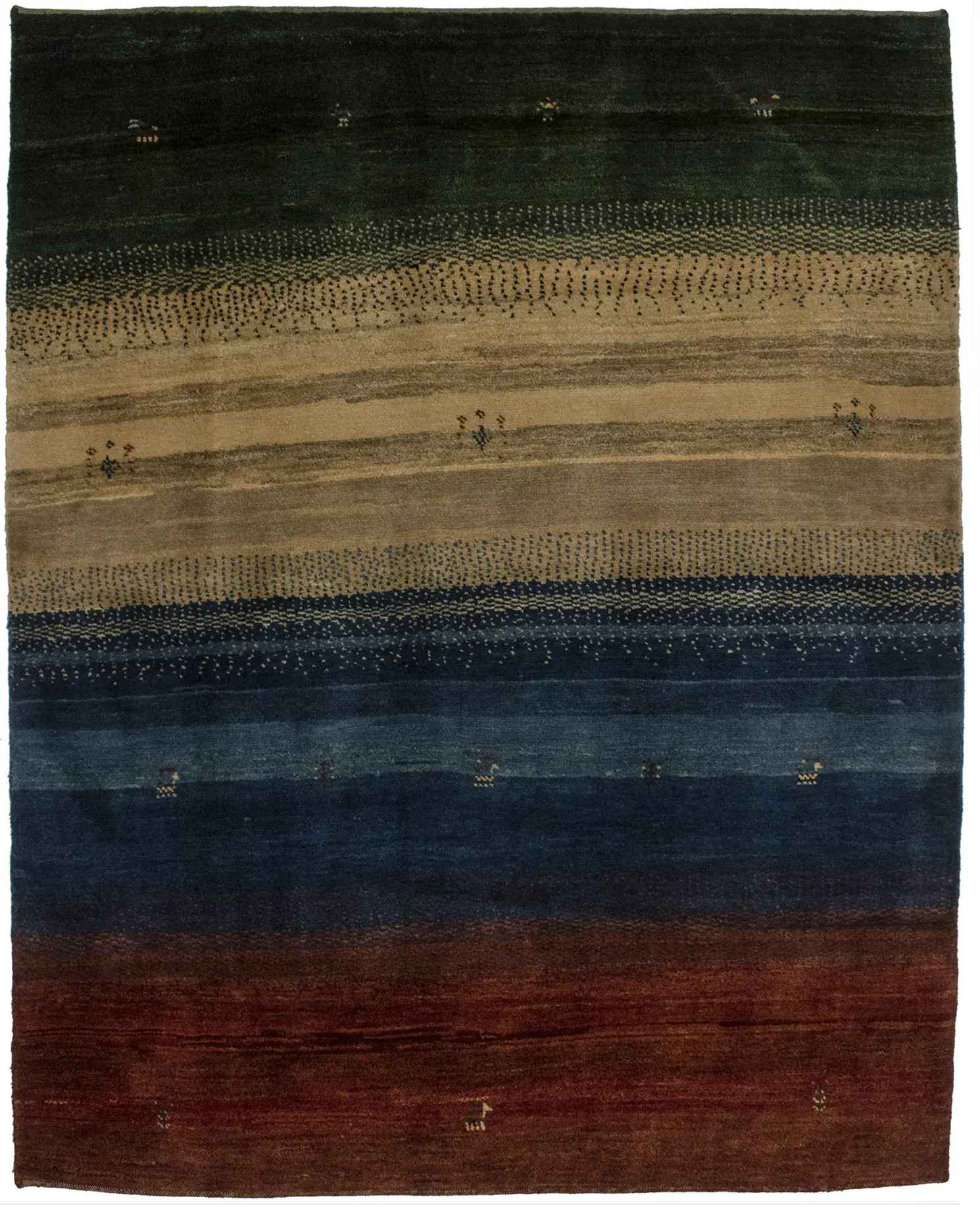 Our Gabbeh collection is inspired by timeless, tribal designs. Each of these magnificent rugs is crafted using a hand-knotted construction with a softest wool pile by talented artisans of Persia and will show beautifully for years.