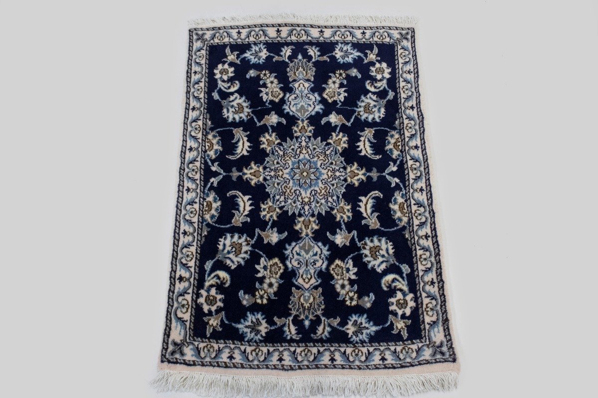 Navy Blue Floral Classic 3X4 Nain Persian Rug