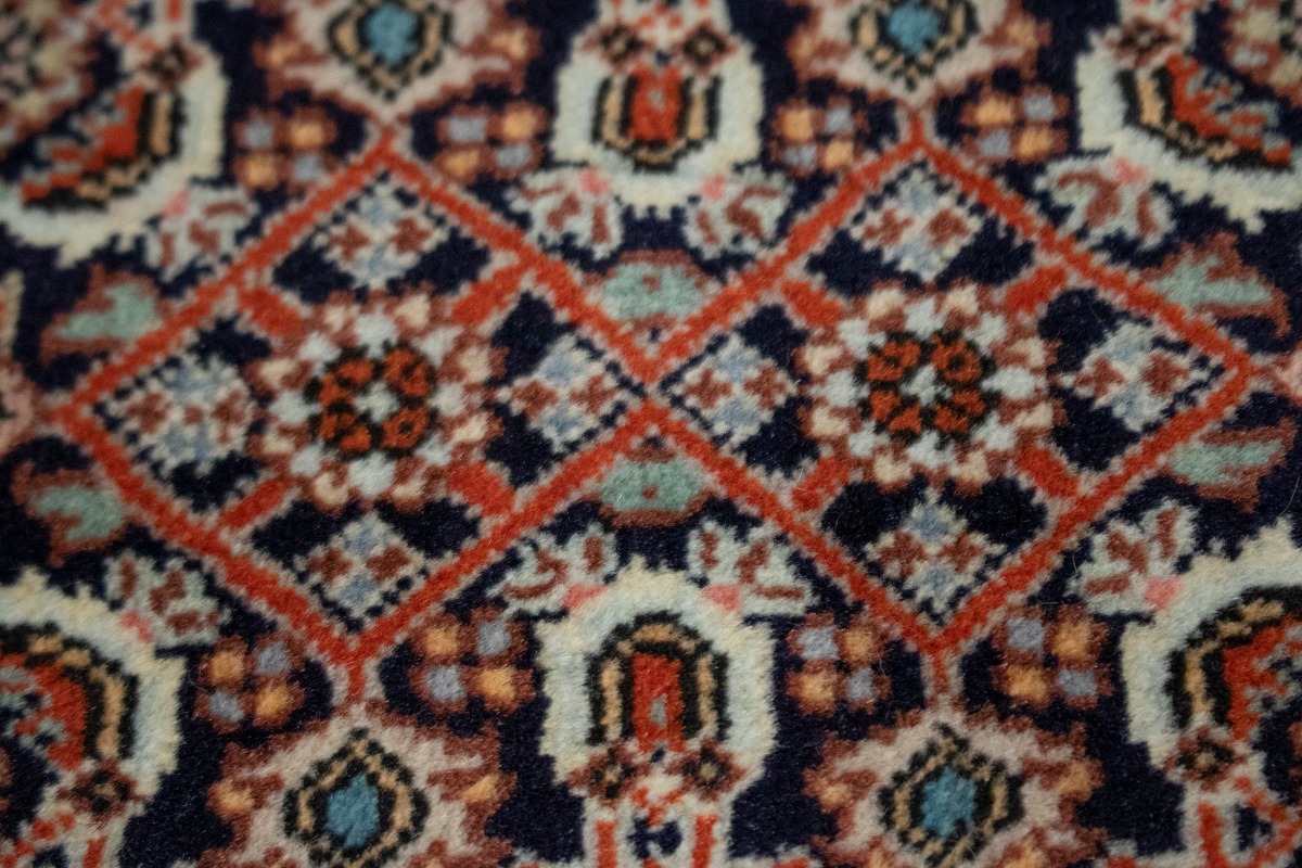 This authentic 1'9X2'2 orange vintage Persian rug was masterly knotted by the hands of weavers inspired by a variety of wonderful artistic designs, to recreate the aged look of the original piece with a richness of color and intricate patterned background field. What set this geometric Oriental area rug from the others are the material and dye used (wool pile and cotton foundation), knot count, antique designs, fantastic grades, and its regional historical connection: it has deep roots, from the story of the people who produced it to the meaning of the symbols and colors displayed across its canvas that have been praised for centuries. This home décor carpet will be completely cozy and inviting that never will go out of style! Also, this Oriental rug would be among your most valuable treasures, it is a great investment that accrues value over time, and it will last for generations because was woven with high-quality, all-natural wool; it won’t rip, tear, or shed. Environmentally friendly, opulent yet affordable; this Persian rug will give you a thorough amount of character to help define your living space with luxury and warmth that will capture the eyes and attention of your audience (homeowners, designers, decorators, family and friends). EB-4331