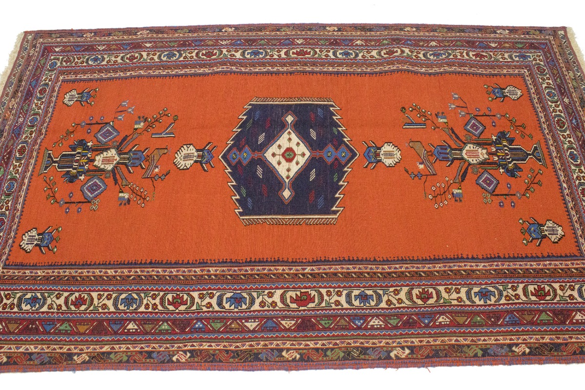 Orange Tribal 4X7 Sumak Persian Rug