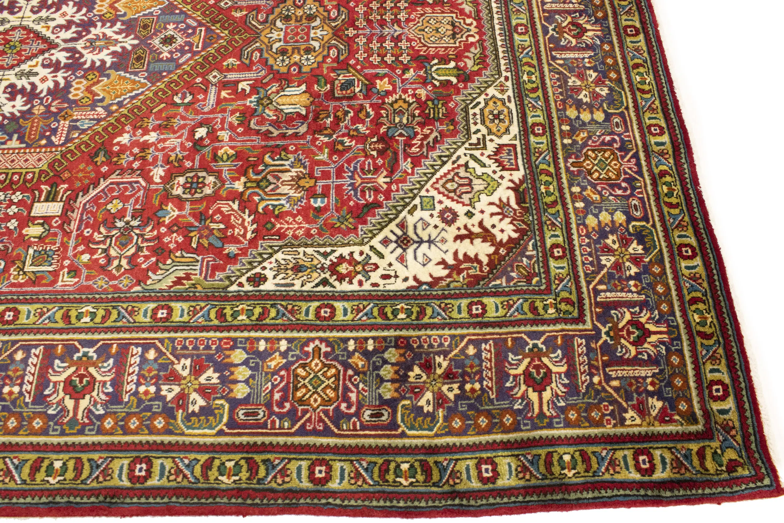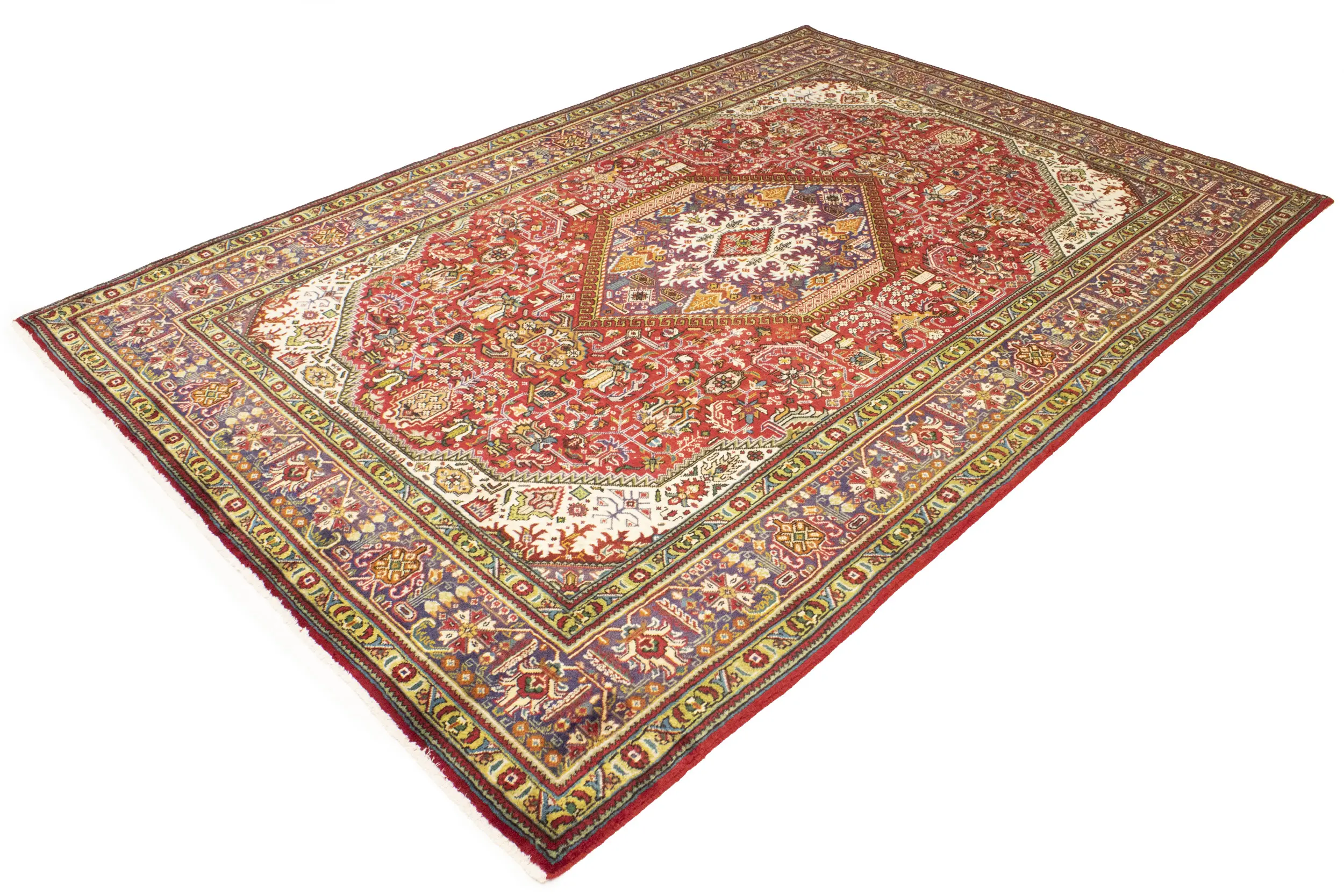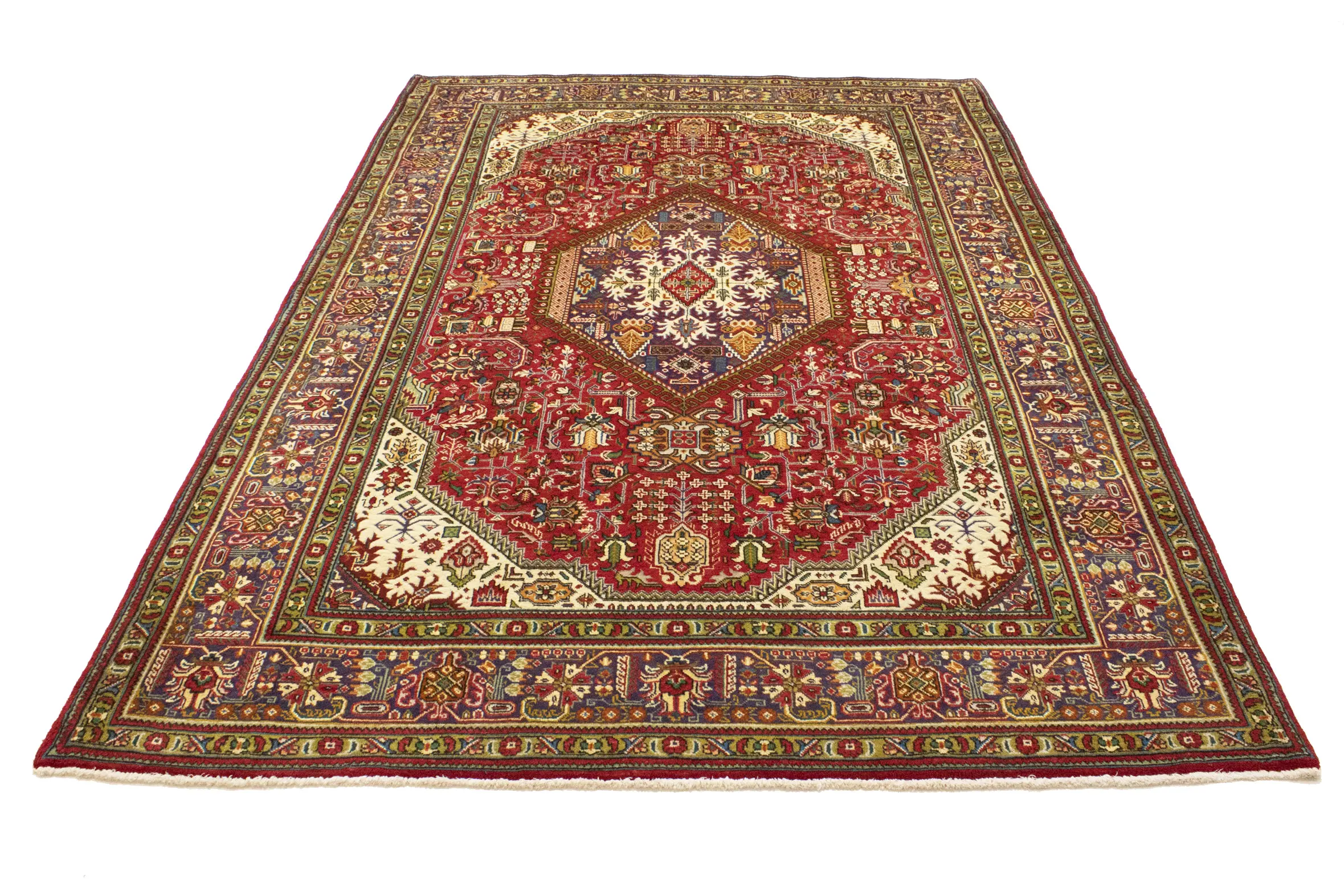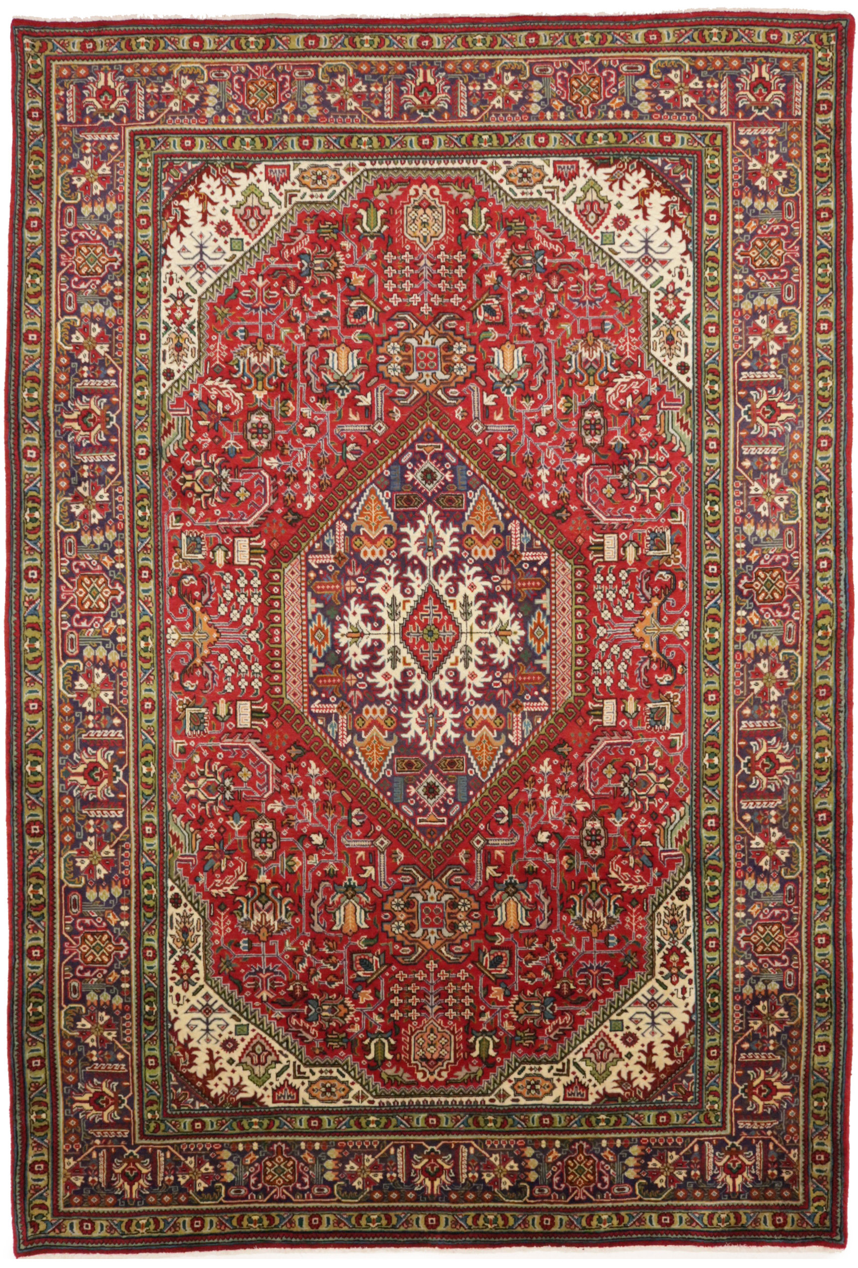 Hand Knotted vintage 6'6X9'8 Red Persian rug made with vegetable dyes (fine wool pile and cotton foundation), exceptional knot count, and alluring ancient designs. This Oriental rug never will go out of style and would be among your most valuable treasures.