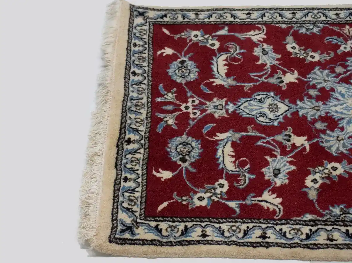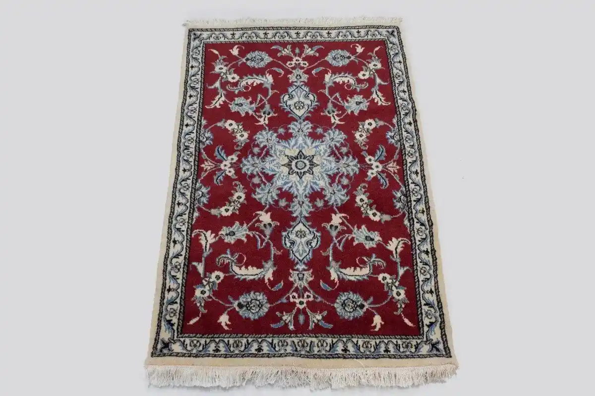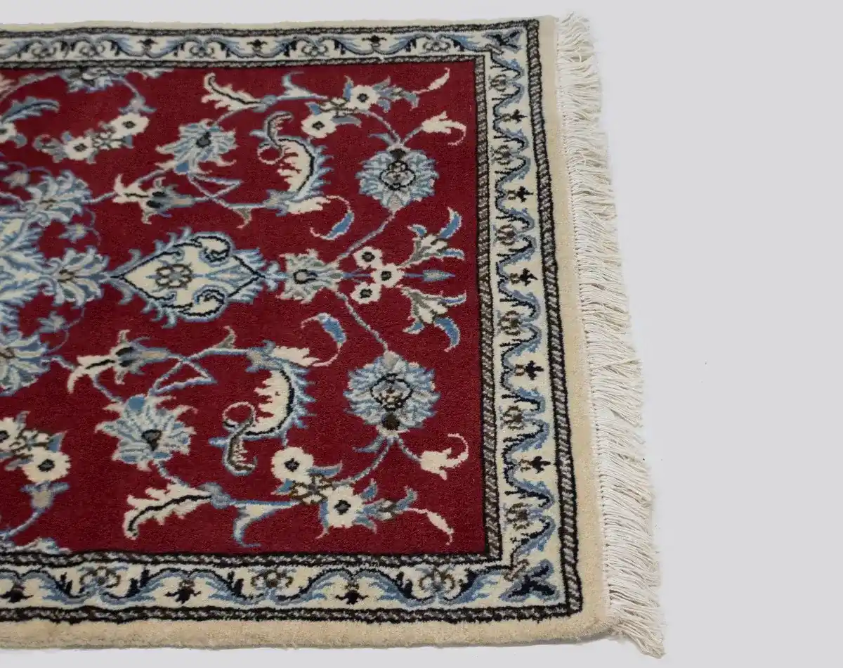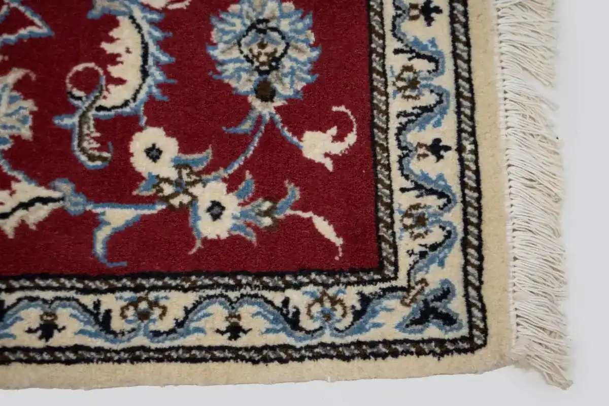 This Red Traditional 3X5 Nain Persian Rug made with natural dyes (fine wool pile and cotton foundation), 130 knot count, and alluring ancient designs will be a great addition to any room.