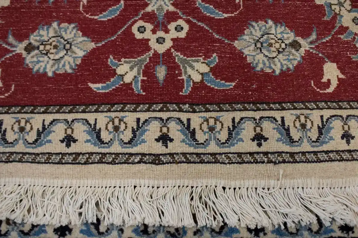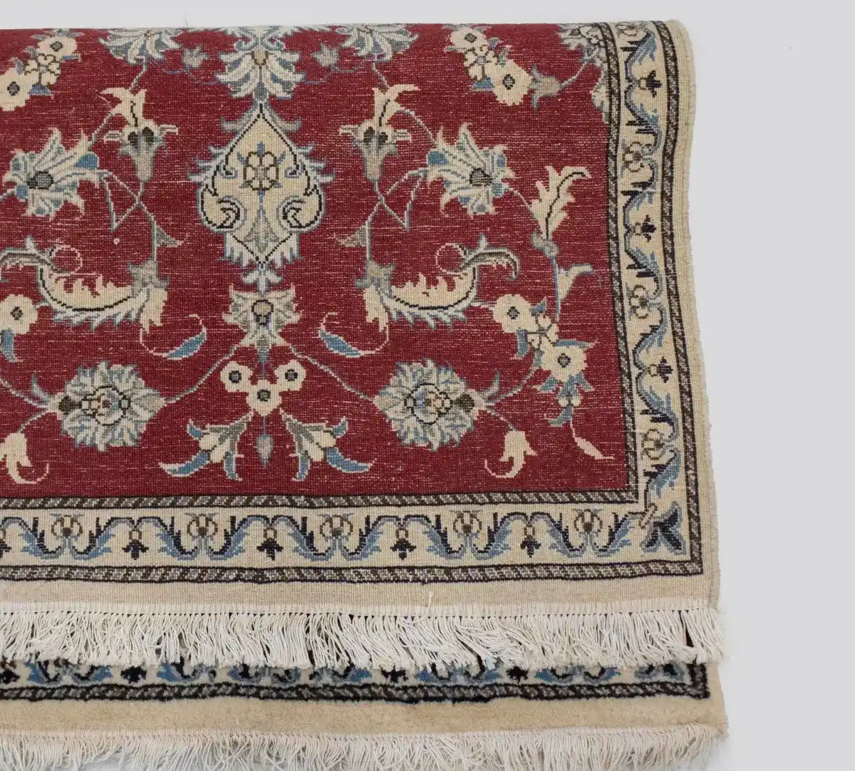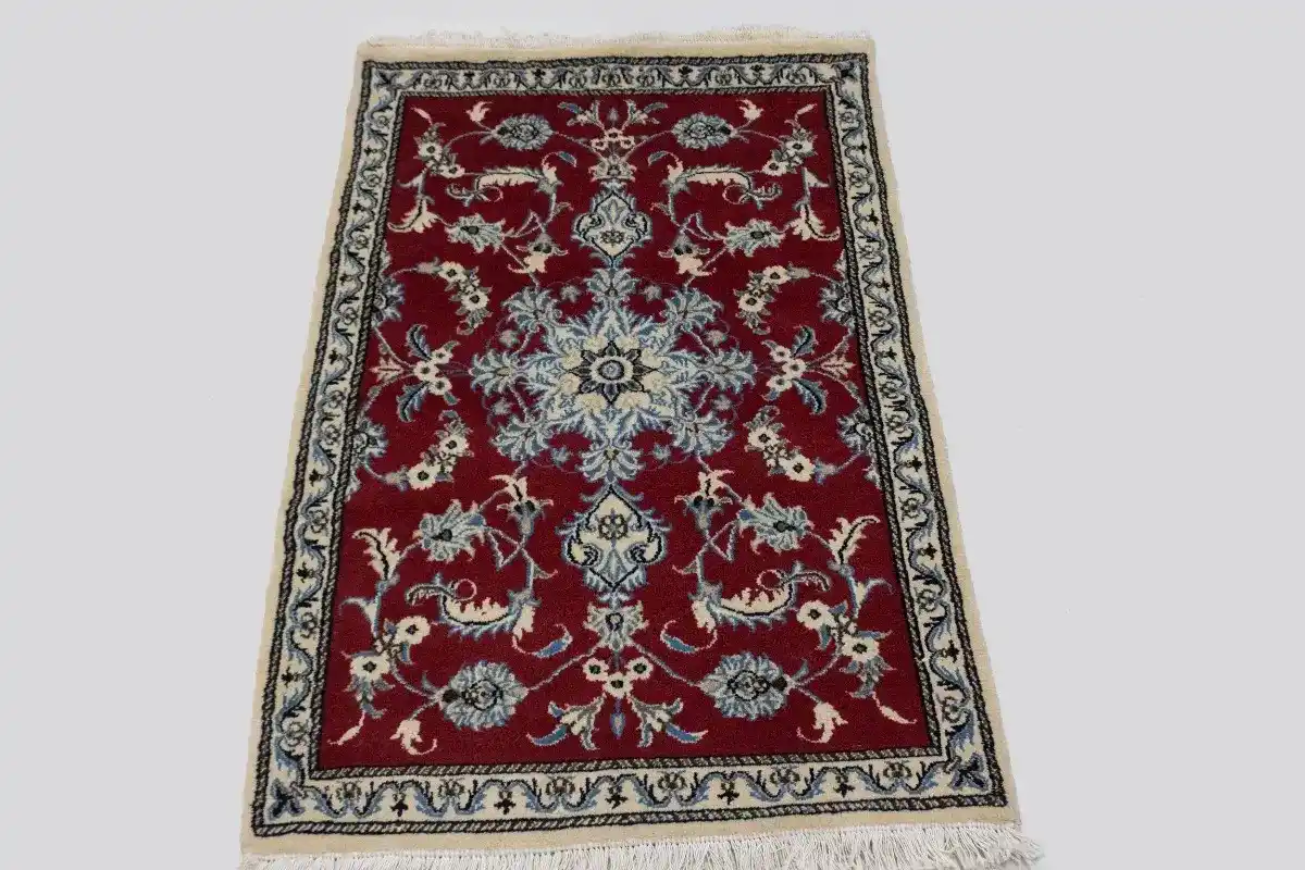 This Red Traditional 3X5 Nain Persian Rug made with natural dyes (fine wool pile and cotton foundation), 130 knot count, and alluring ancient designs will be a great addition to any room.