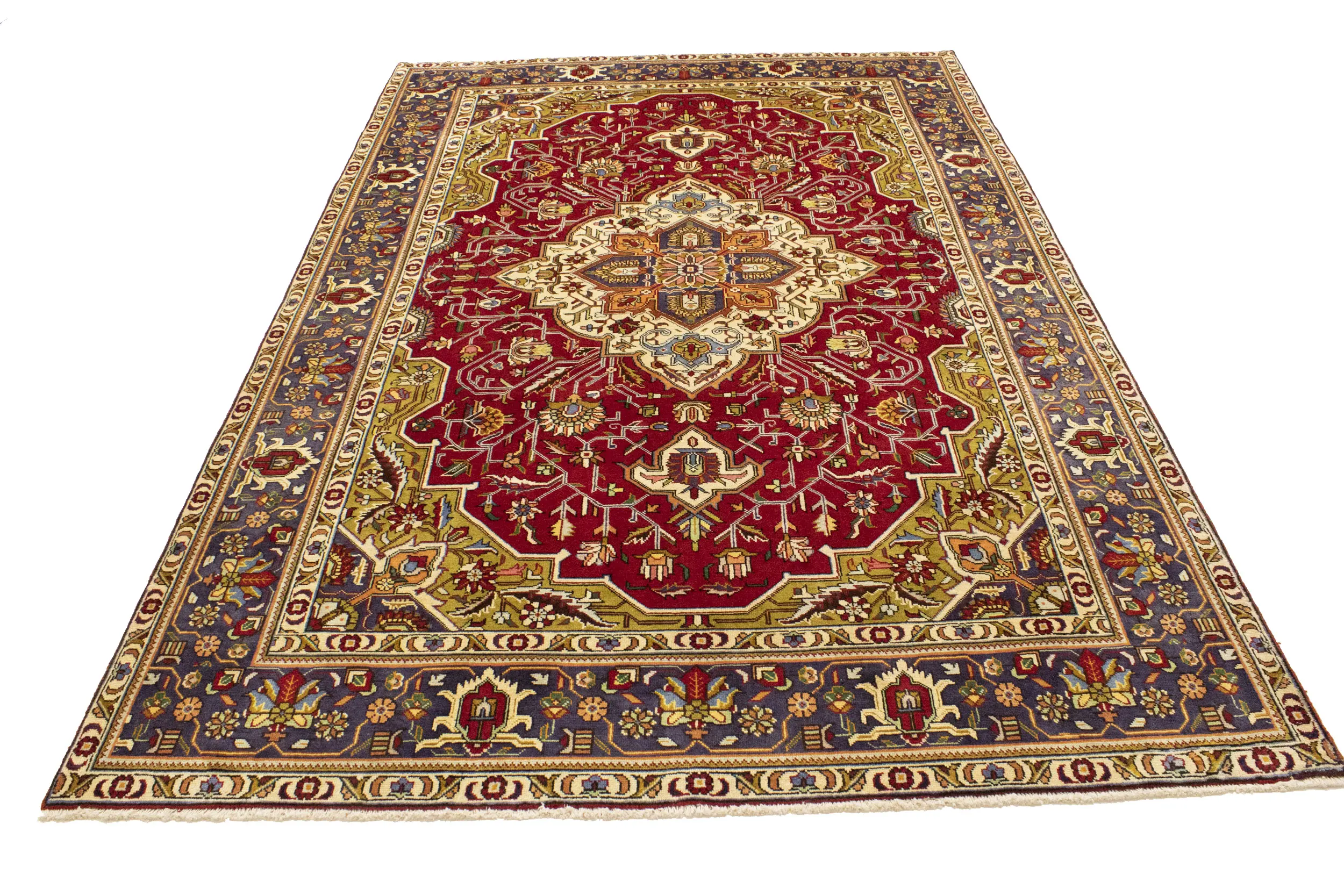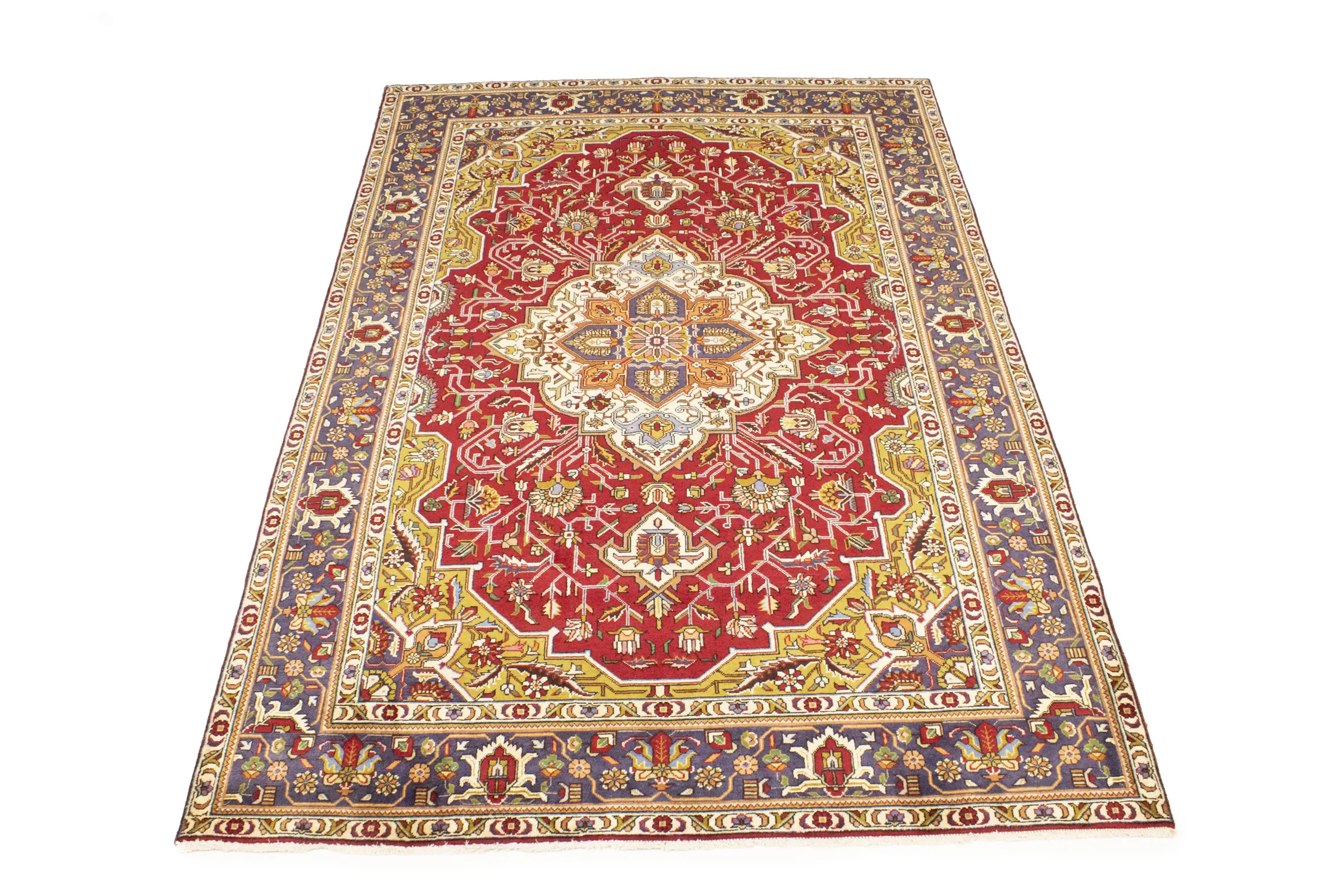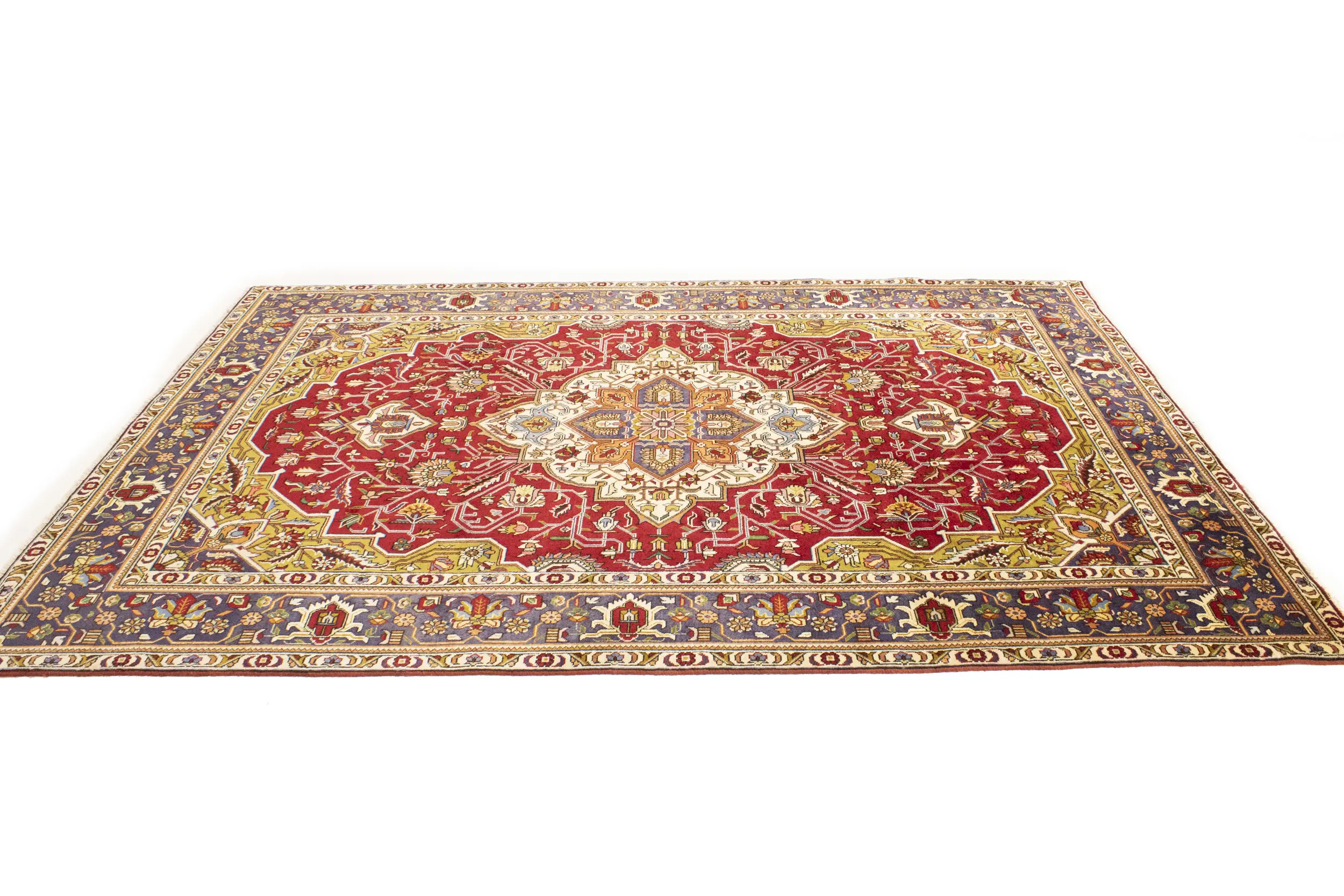 This authentic 6'6X9'7 Red vintage Persian rug was finely knotted by the hands of weavers influenced by a variety of amazing artistic designs, to recreate the aged look of the exceptional piece with a richness of color and embellished floral background field. What set this traditional Oriental area rug from the others are the material and dye used (wool pile and cotton foundation), knot count, antique designs, fantastic grades, and its regional historical connection: it has deep roots, from the story of the people who produced it to the meaning of the symbols and colors displayed across its canvas that have been praised for centuries. This classic home décor carpet will be completely cozy and inviting that never will go out of style! Also, this Oriental rug would be among your most valuable treasures, it is a great investment that increase in value over time, and it will last a lifetime because was woven with high-quality, all-natural wool; it won’t rip, tear, or shed. Eco-friendly, opulent yet affordable; this Persian rug will give you an extra pop of character to help define your home environment with luxury and warmth that will capture the eyes and attention of your audience (homeowners, designers, decorators, family and friends).