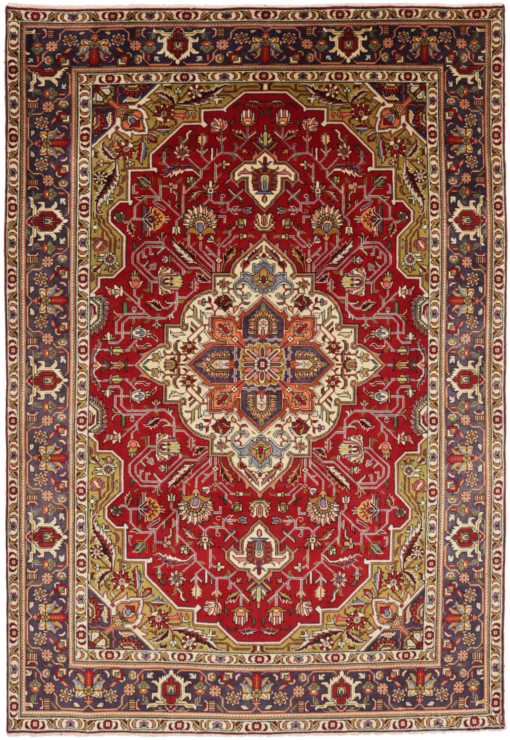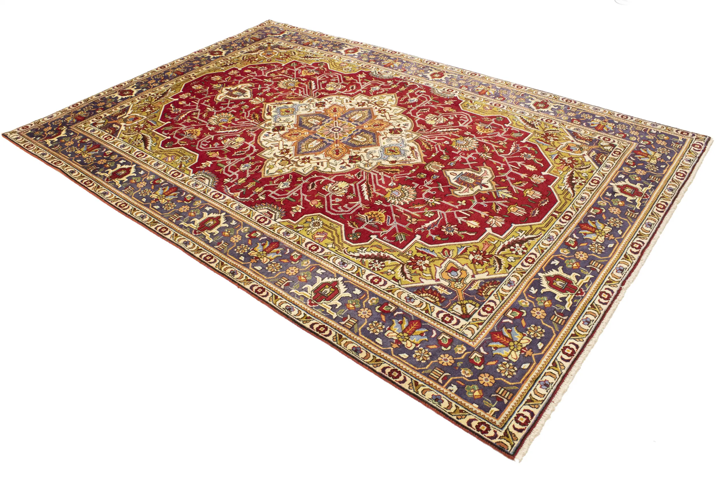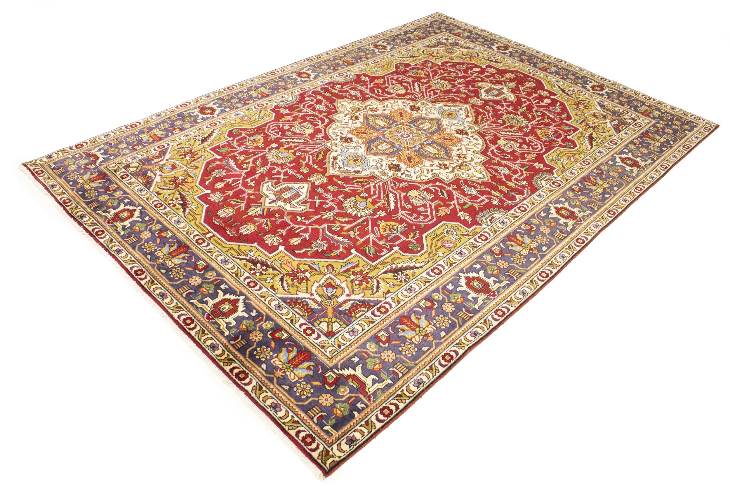 This authentic 6'6X9'7 Red vintage Persian rug was finely knotted by the hands of weavers influenced by a variety of amazing artistic designs, to recreate the aged look of the exceptional piece with a richness of color and embellished floral background field. What set this traditional Oriental area rug from the others are the material and dye used (wool pile and cotton foundation), knot count, antique designs, fantastic grades, and its regional historical connection: it has deep roots, from the story of the people who produced it to the meaning of the symbols and colors displayed across its canvas that have been praised for centuries. This classic home décor carpet will be completely cozy and inviting that never will go out of style! Also, this Oriental rug would be among your most valuable treasures, it is a great investment that increase in value over time, and it will last a lifetime because was woven with high-quality, all-natural wool; it won’t rip, tear, or shed. Eco-friendly, opulent yet affordable; this Persian rug will give you an extra pop of character to help define your home environment with luxury and warmth that will capture the eyes and attention of your audience (homeowners, designers, decorators, family and friends).