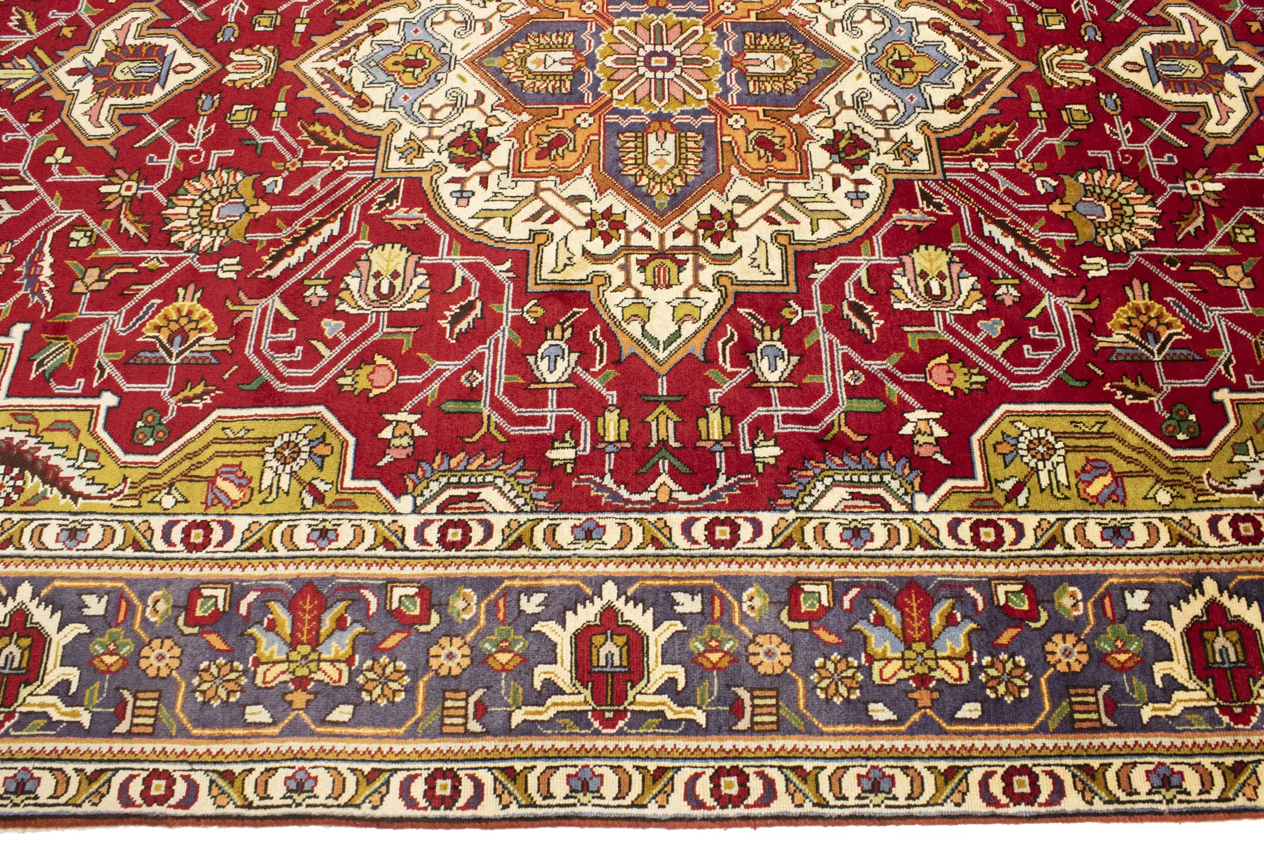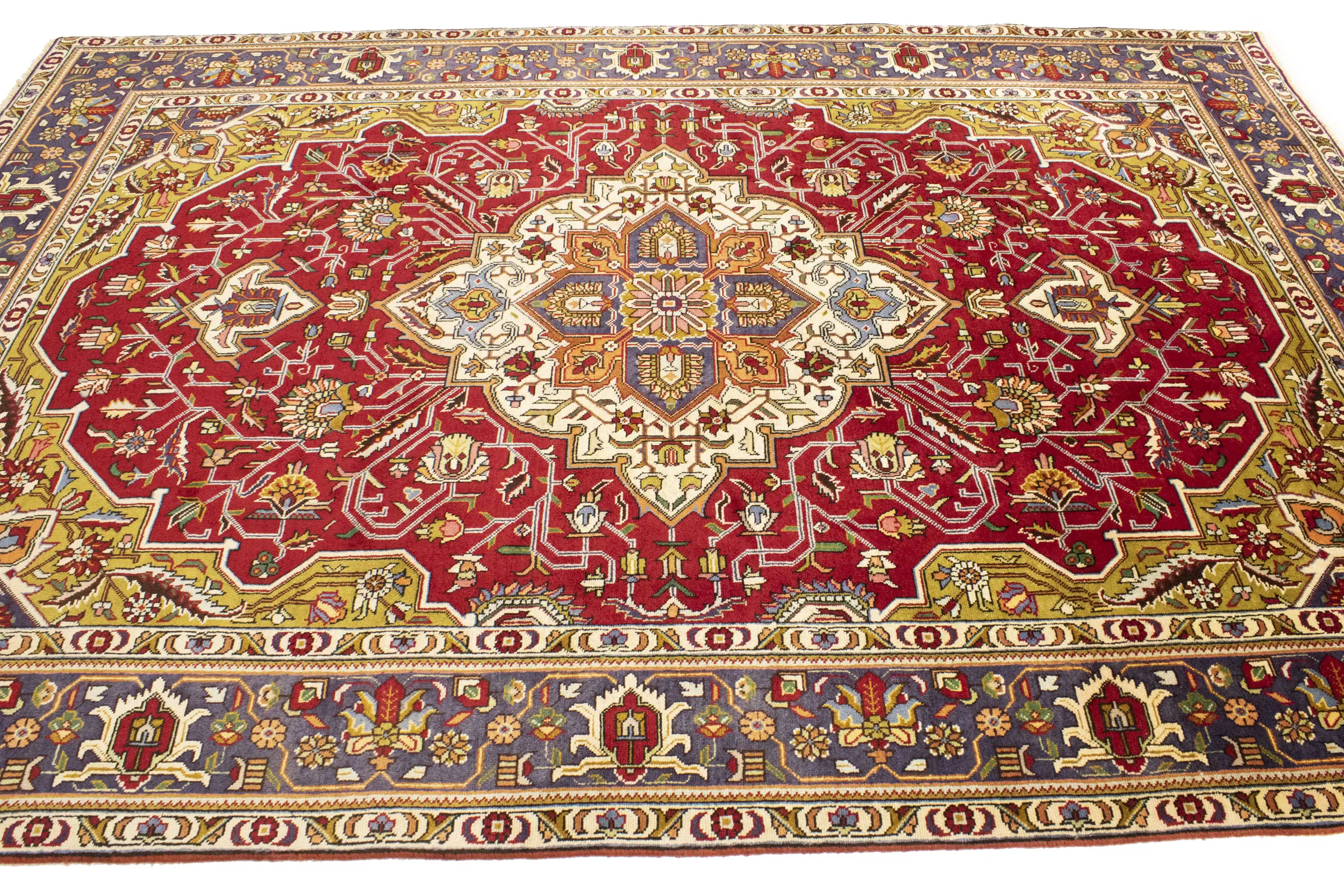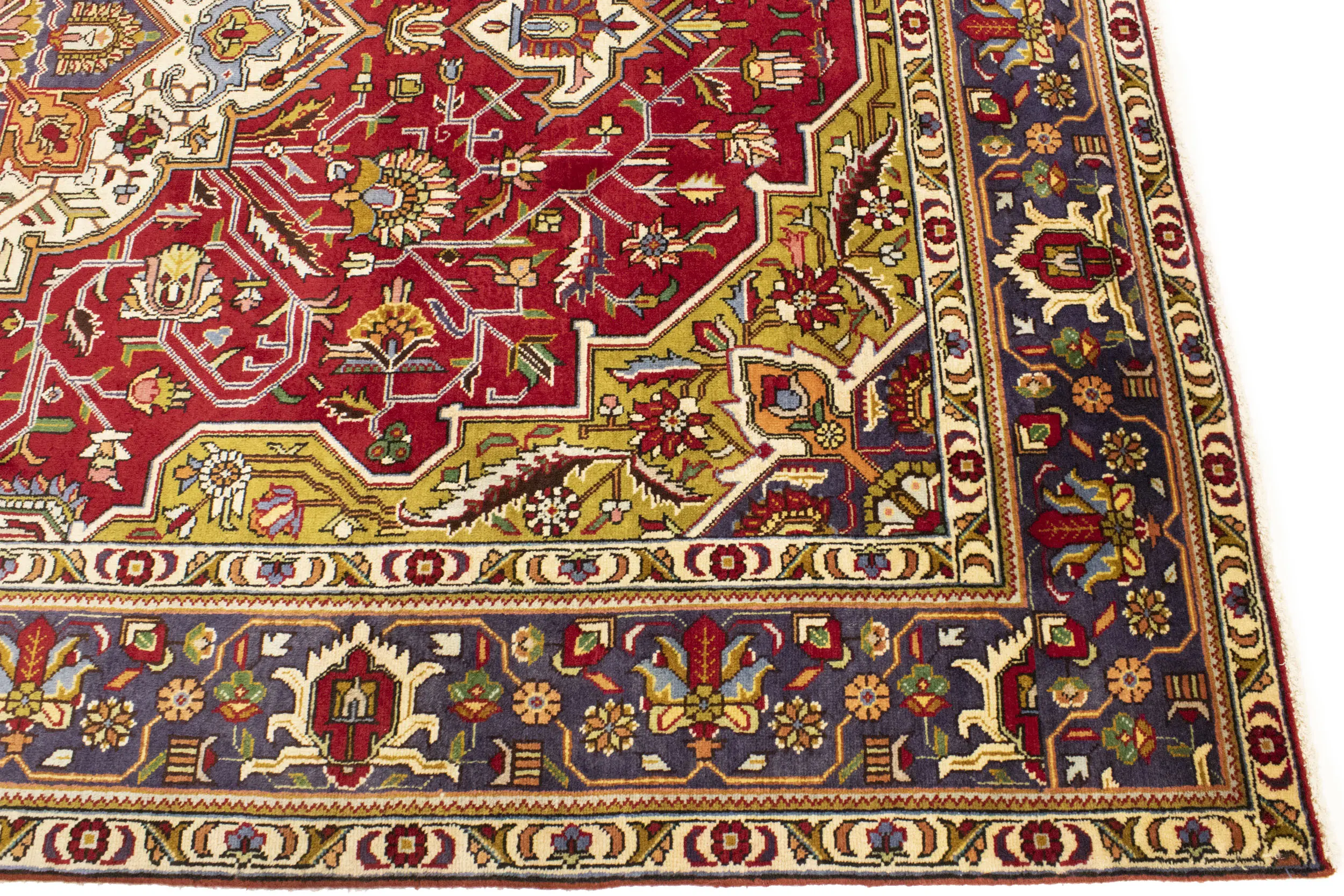 Handmade vintage 6'6X9'7 Red Persian rug made with vegetable dyes (fine wool pile and cotton foundation), superior knot count, and alluring ancient designs. This Oriental rug never will go out of style and would be among your most valuable treasures.