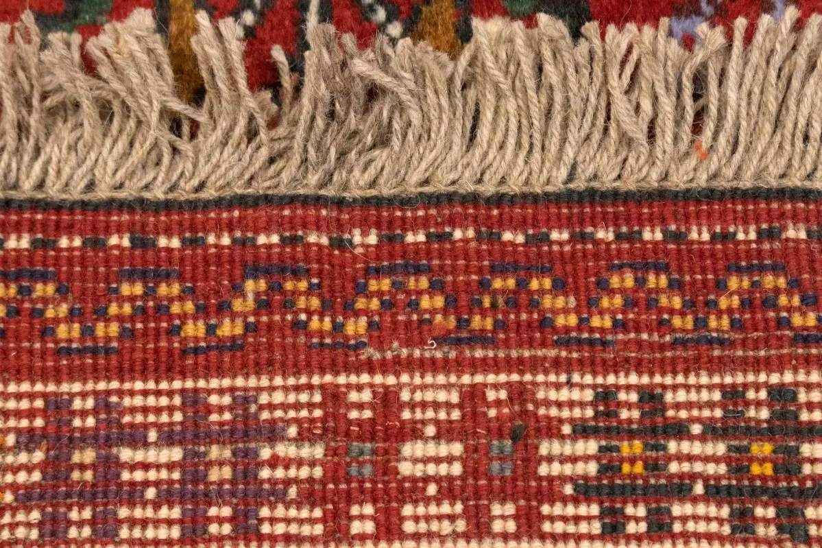 This genuine 3'4X4'7 red vintage Persian rug was made by the hands of talented weavers influenced by a variety of gorgeous symmetrical artistic designs, to recreate the aged look of the unique piece with a richness of color and very balanced background field. What set this tribal Oriental area rug from the others are the material and dye used (wool pile and cotton foundation), knot count, antique designs, fantastic grades, and its regional historical connection: it has deep roots, from the story of the people who produced it to the meaning of the symbols and colors displayed across its canvas that have been praised for centuries. This home décor carpet will be completely cozy and inviting that never will go out of style! Also, this Oriental rug would be among your most valuable treasures, it is a great investment that accrues value over time, and it will last a lifetime because was woven with high-quality, all-natural wool; it won’t rip, tear, or shed. Eco-friendly, opulent yet affordable; this Persian rug will give you an extra pop of character to help define your home environment with sophistication and warmth that will capture the eyes and attention of your audience (homeowners, designers, decorators, family and friends). EB-5792